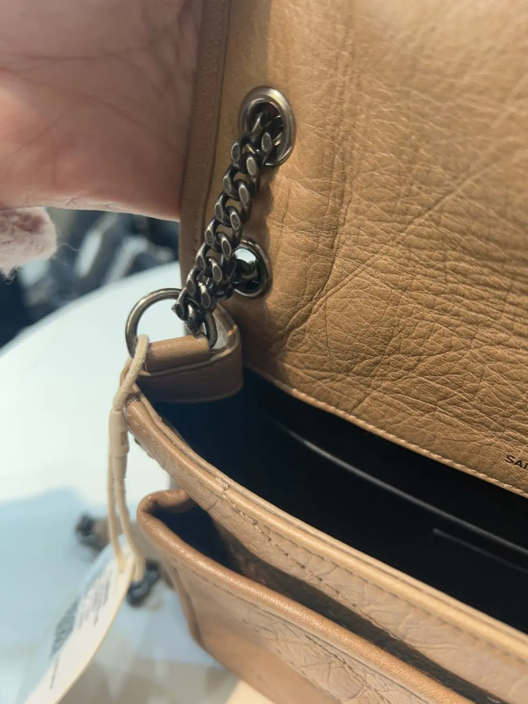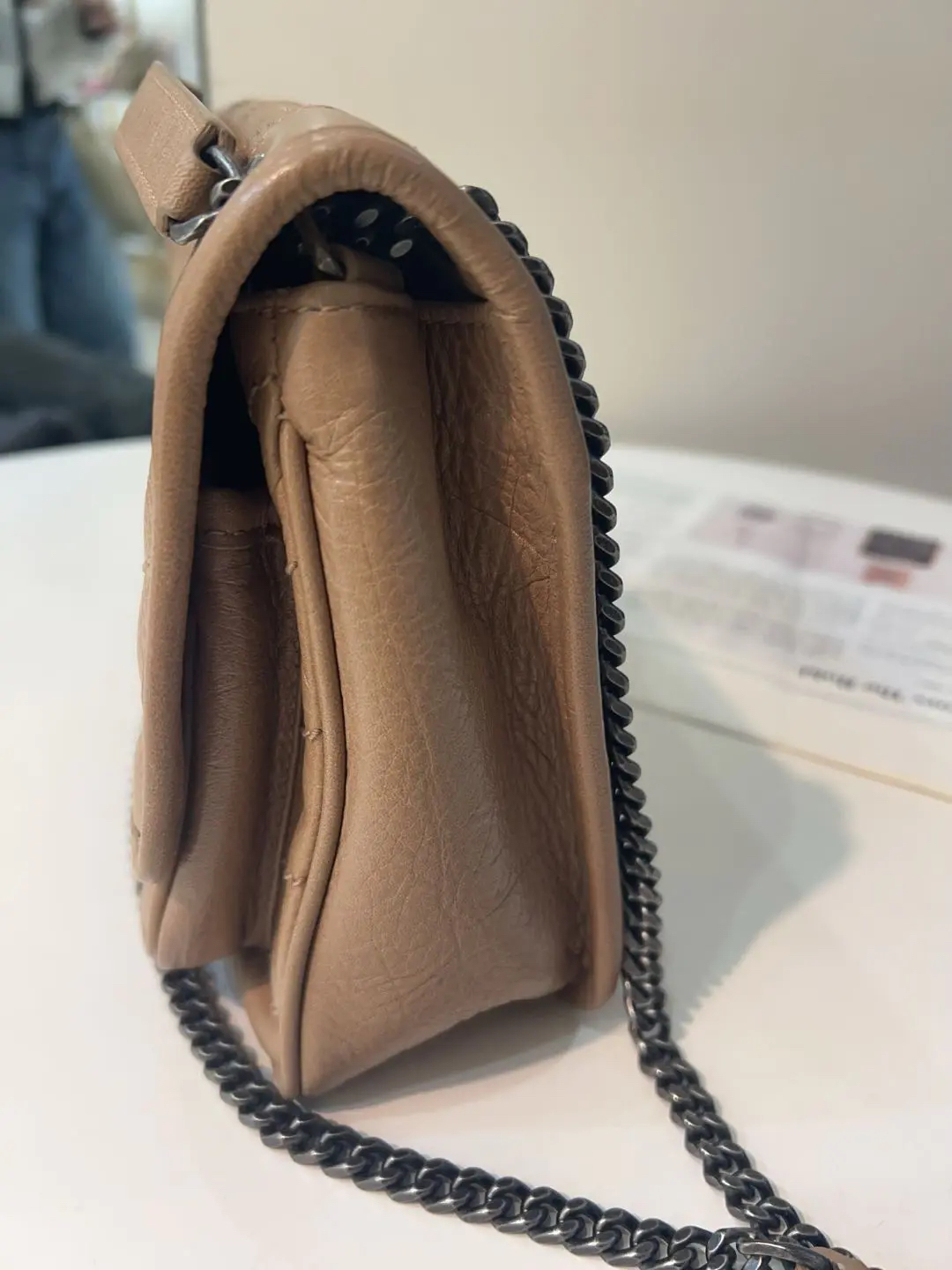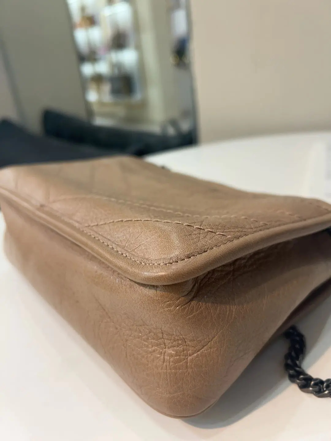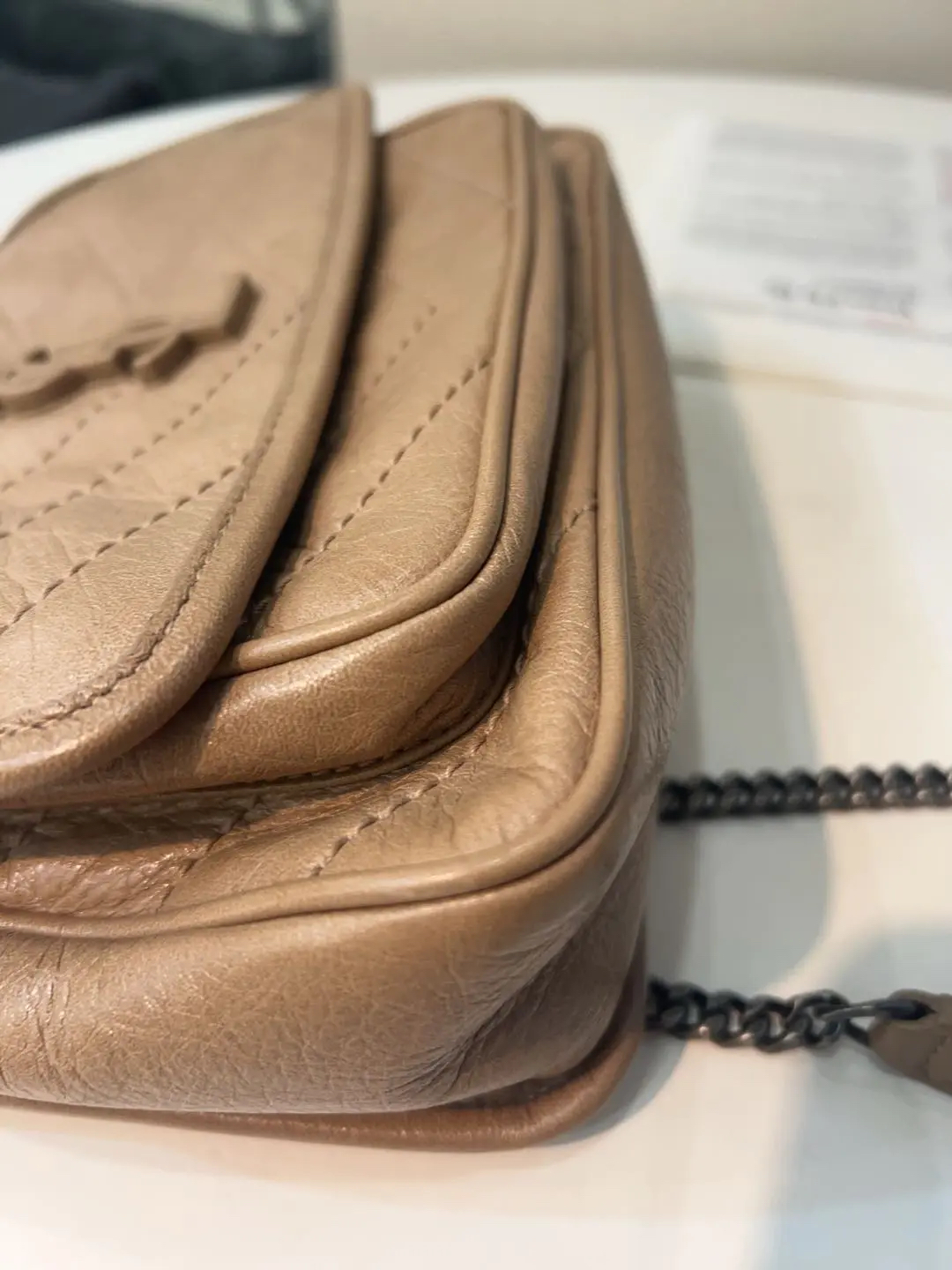 【商品详情】正品二手 YSL niki 小号 奶茶色 d扣 油蜡牛皮 斜挎包🤎 98新 22×16 。温柔奶茶色自带氛围感