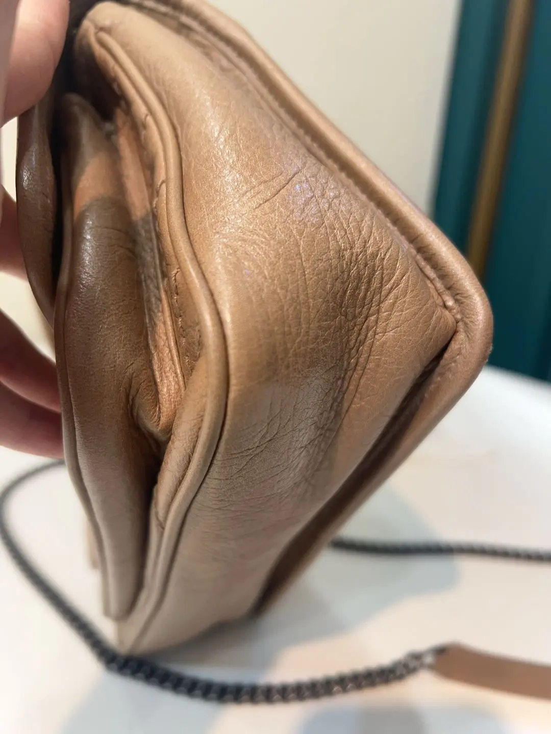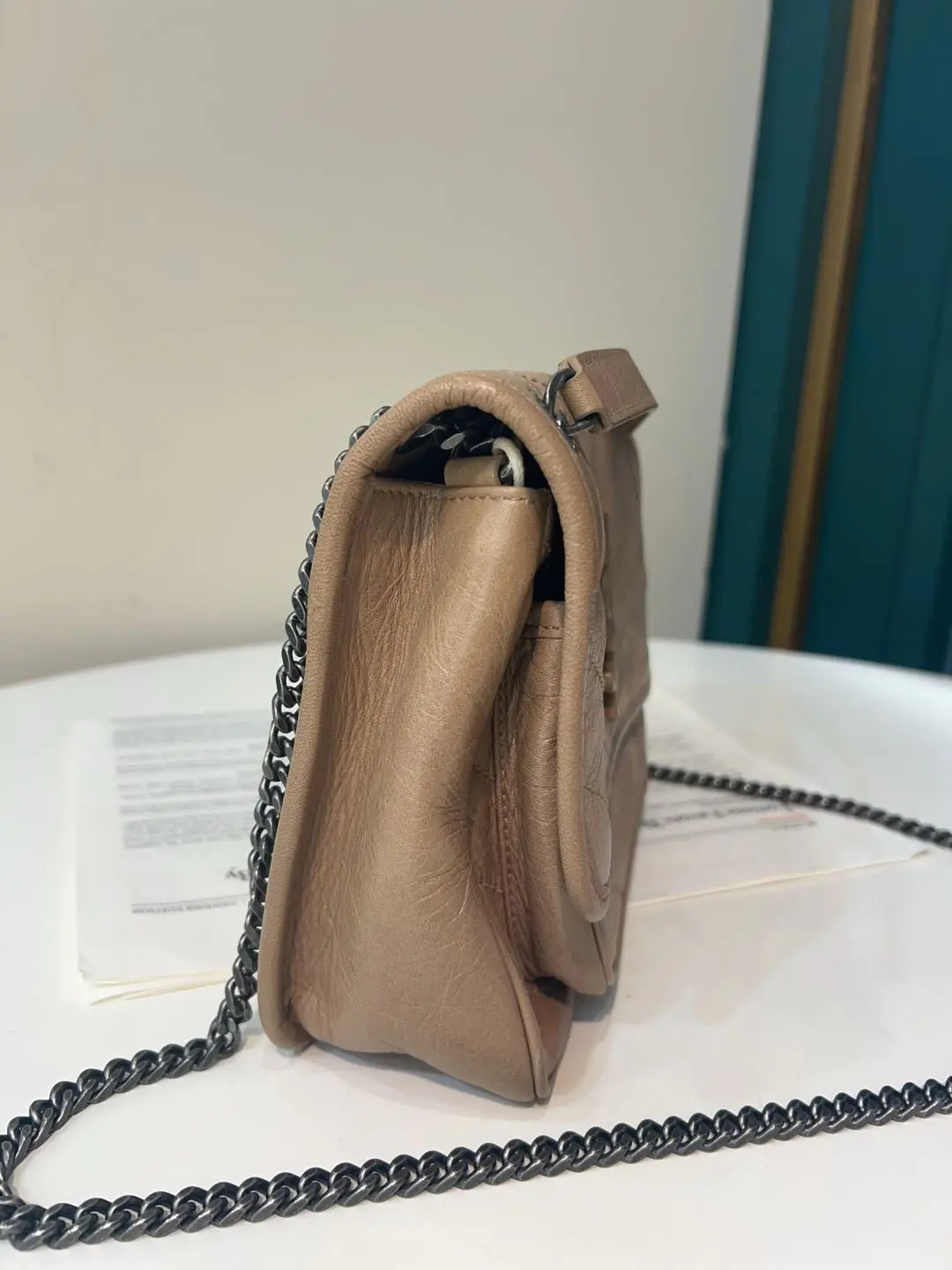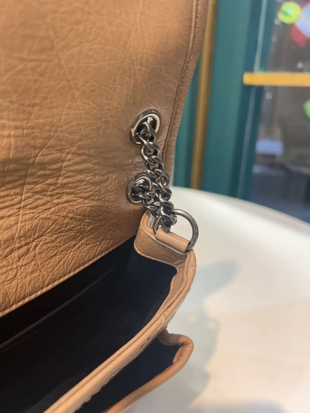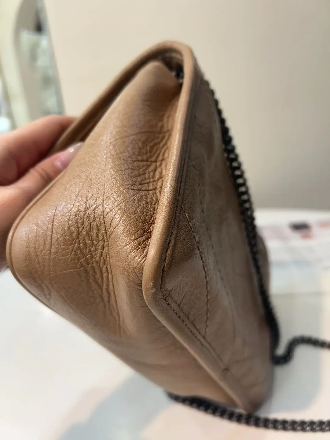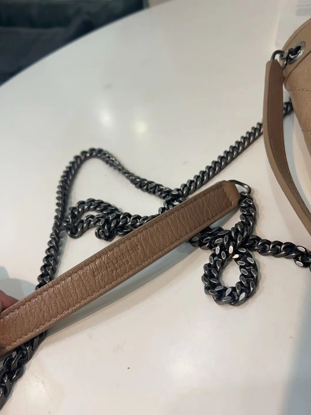 【商品详情】正品二手 YSL niki 小号 奶茶色 d扣 油蜡牛皮 斜挎包🤎 98新 22×16 。温柔奶茶色自带氛围感
