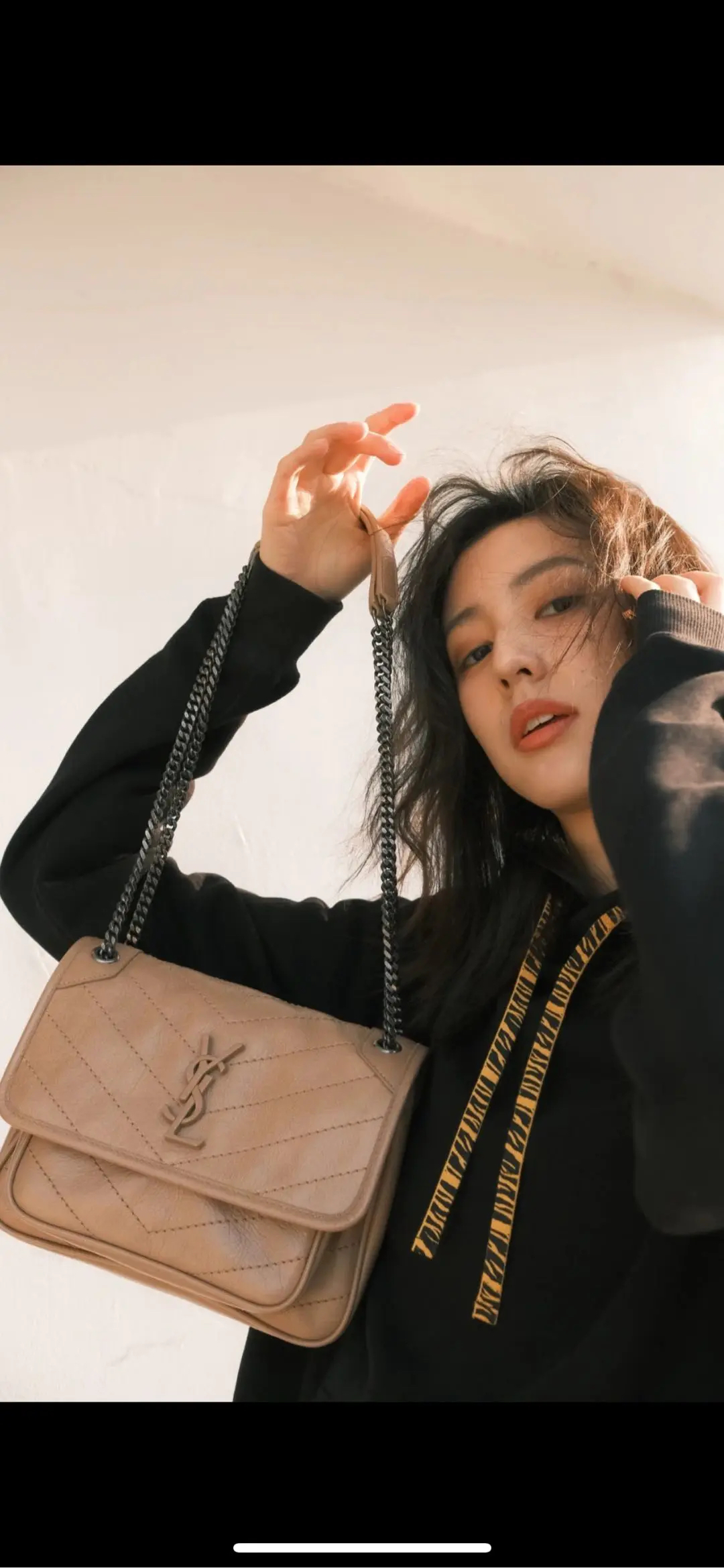 YSL niki 小号 奶茶色 d扣 油蜡牛皮 斜挎包
