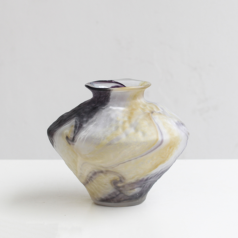 创意粉色絮状星空大理石磁粉花瓶中古风鲜花餐桌台面客厅花瓶