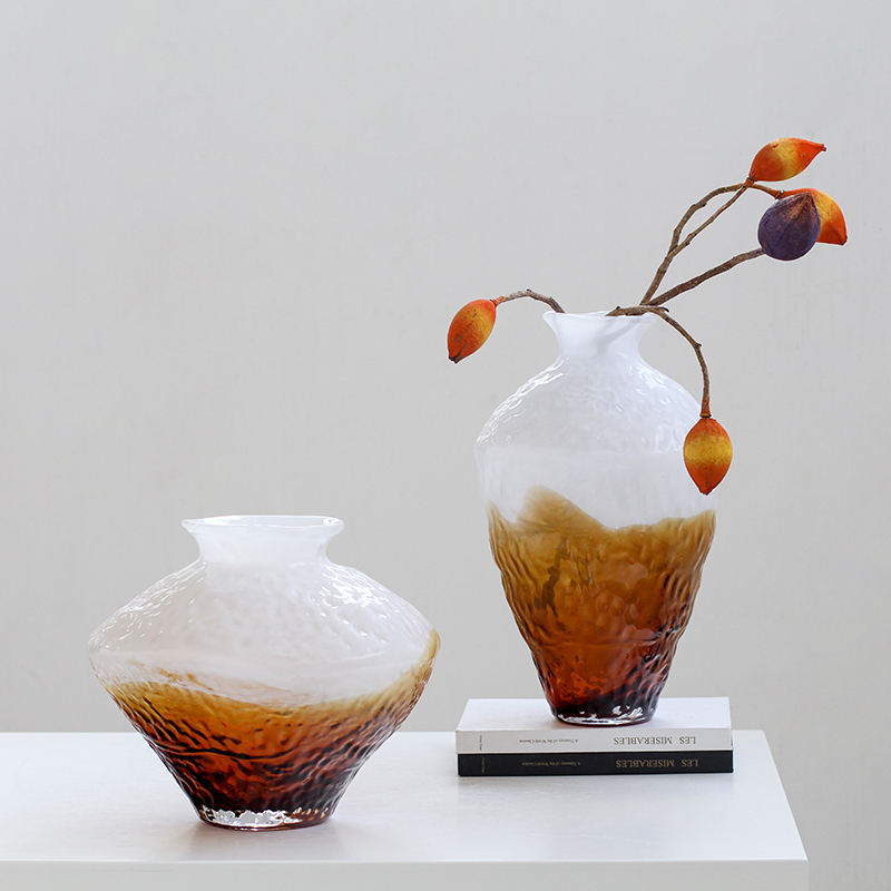 轻奢美式简约渐变磨砂玻璃花瓶北欧摆件客厅餐桌样板间酒店装饰品