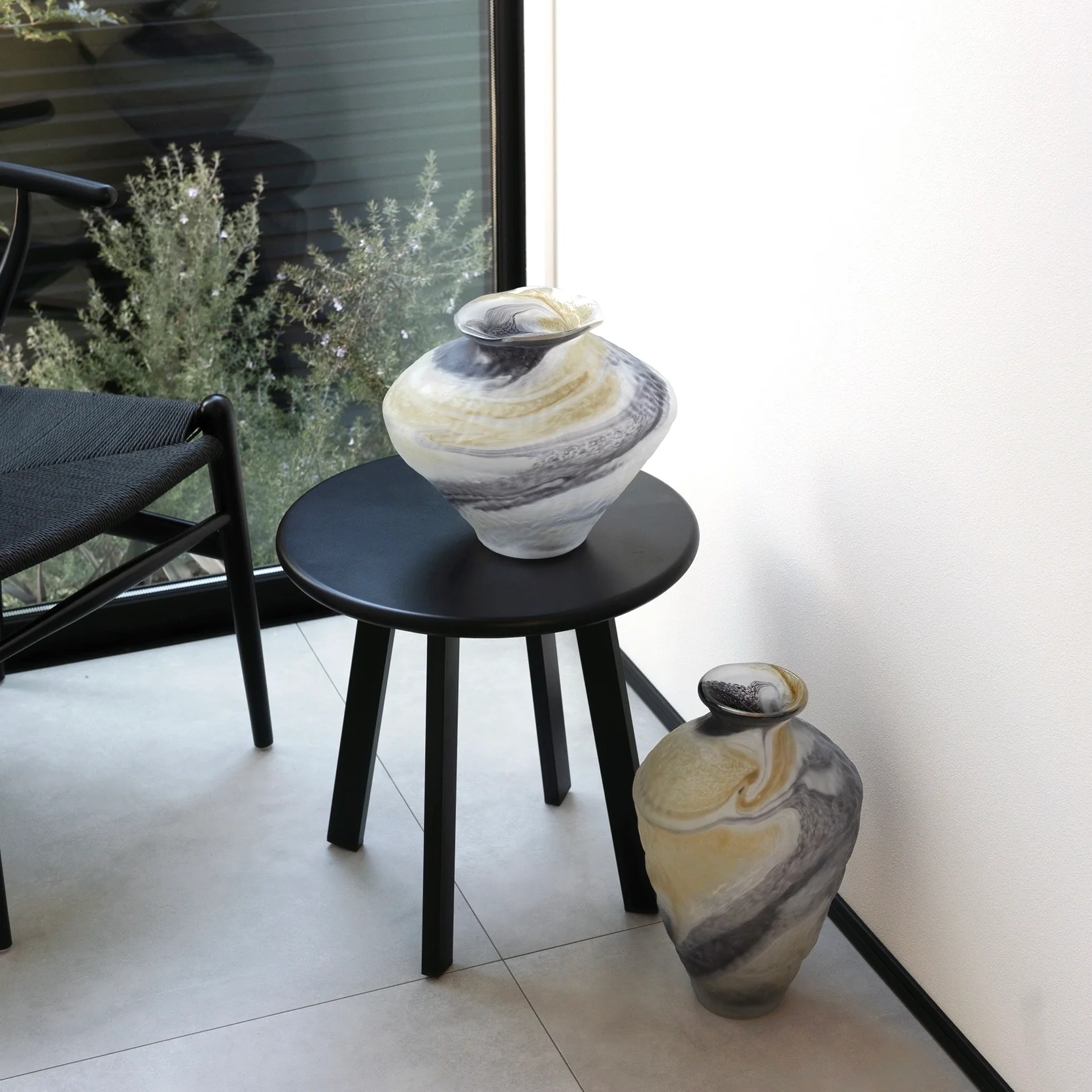 碧轩简约中古风渐变高脚烛台手工风灯花瓶软装酒店客厅家居玻璃瓶