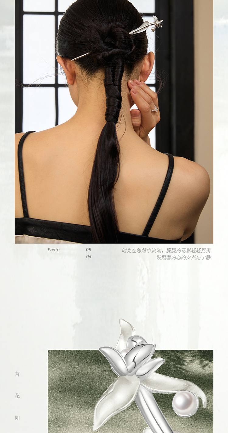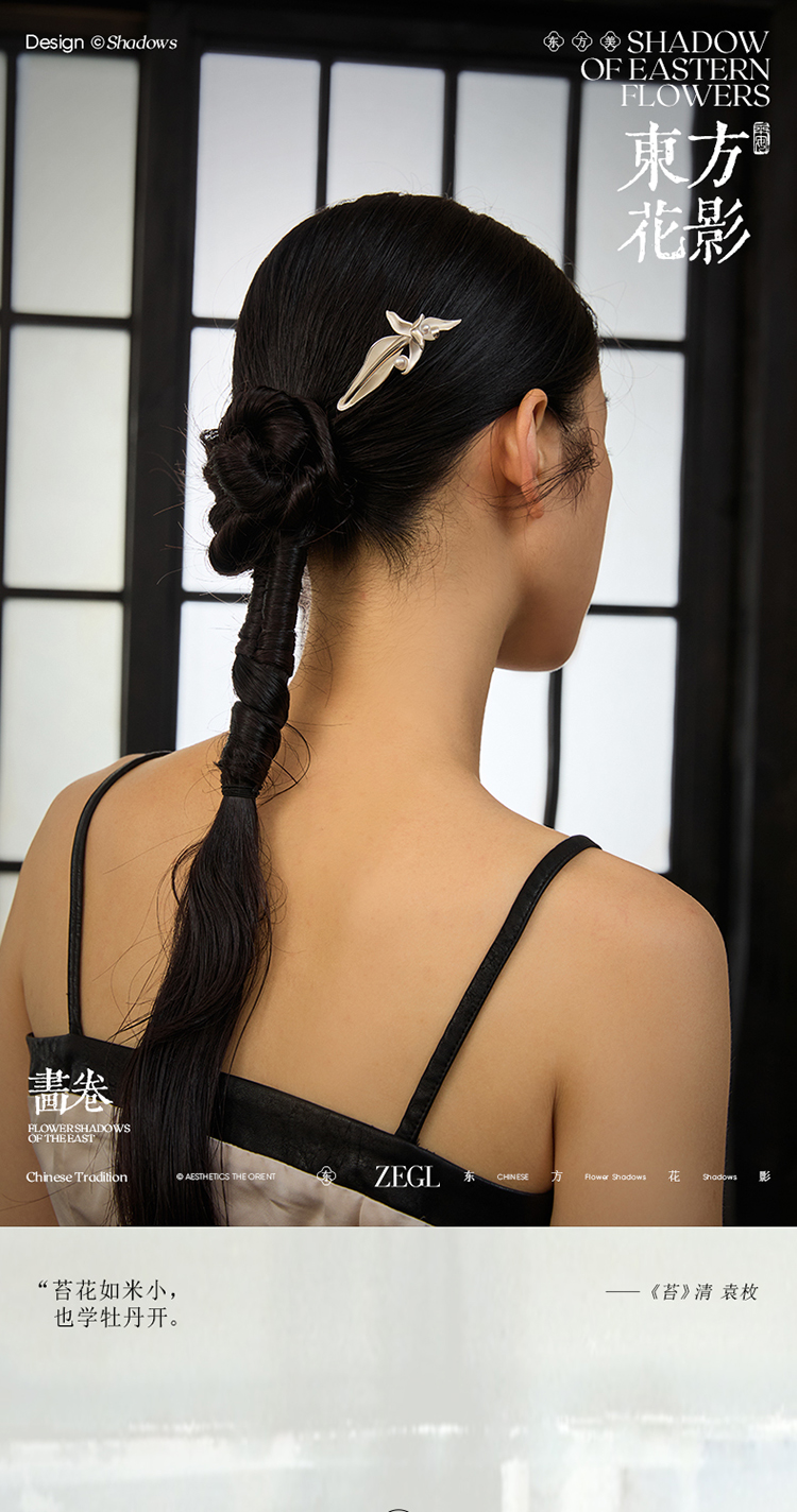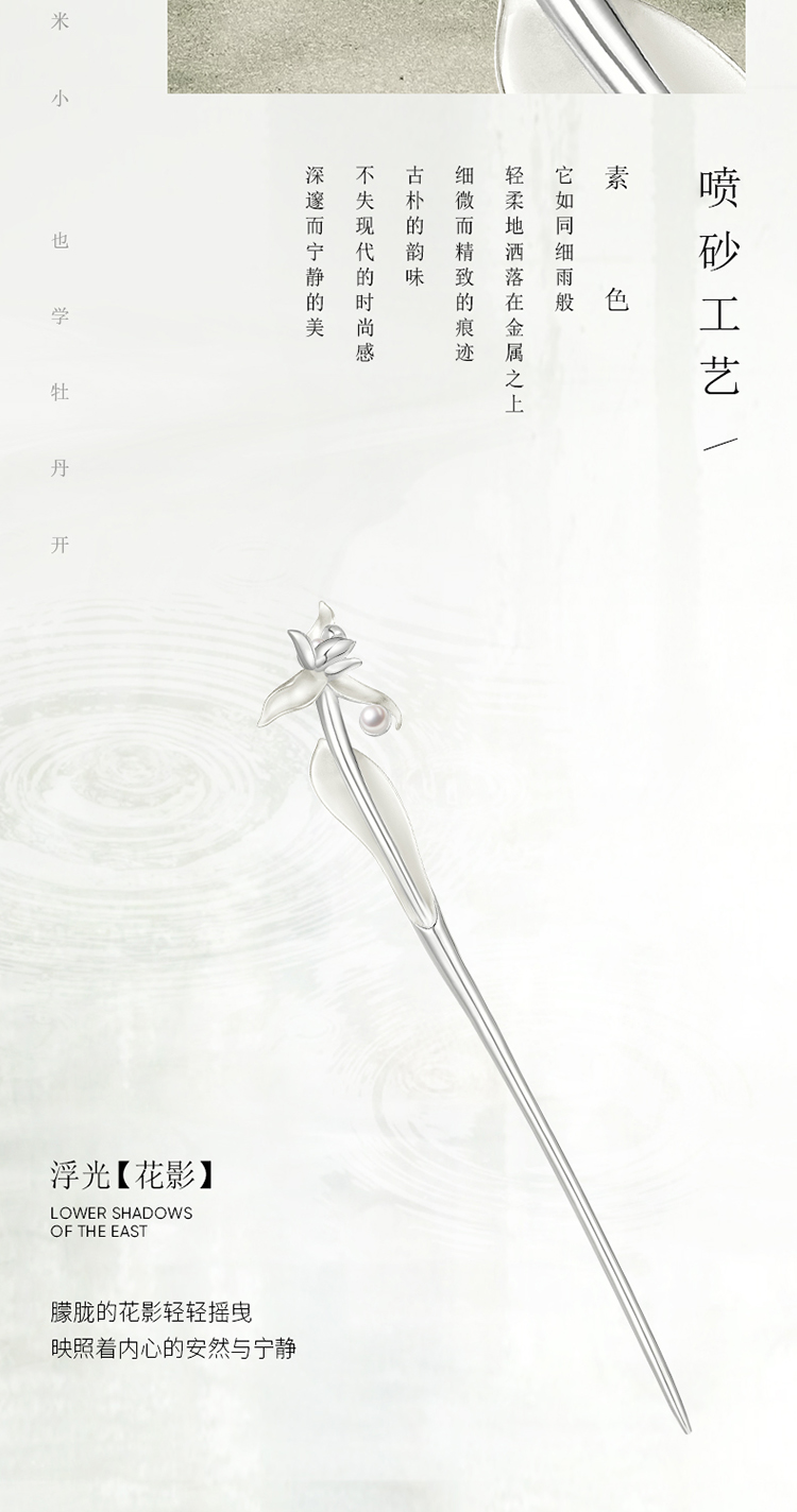 ZEGL设计师东方花影花朵发簪子新中式古风女高级感人造珍珠中国风
