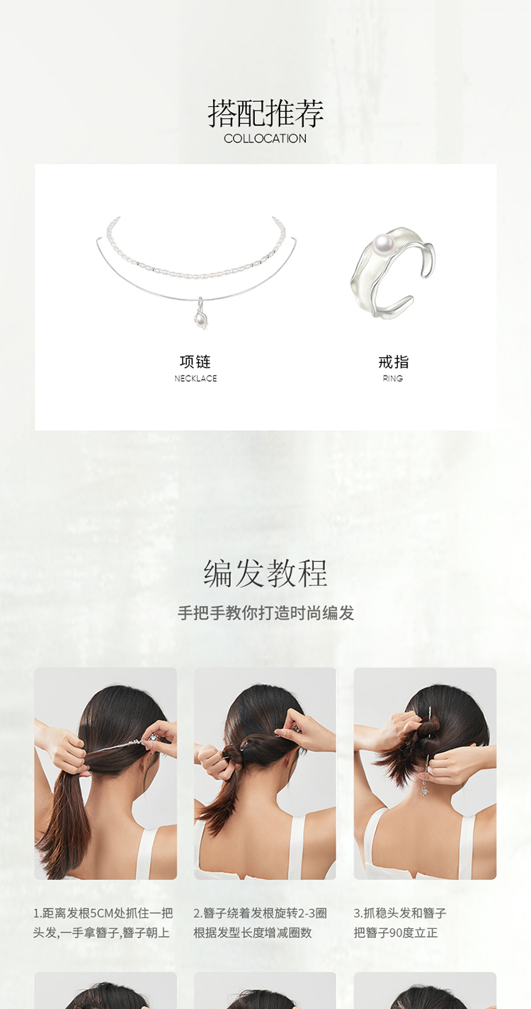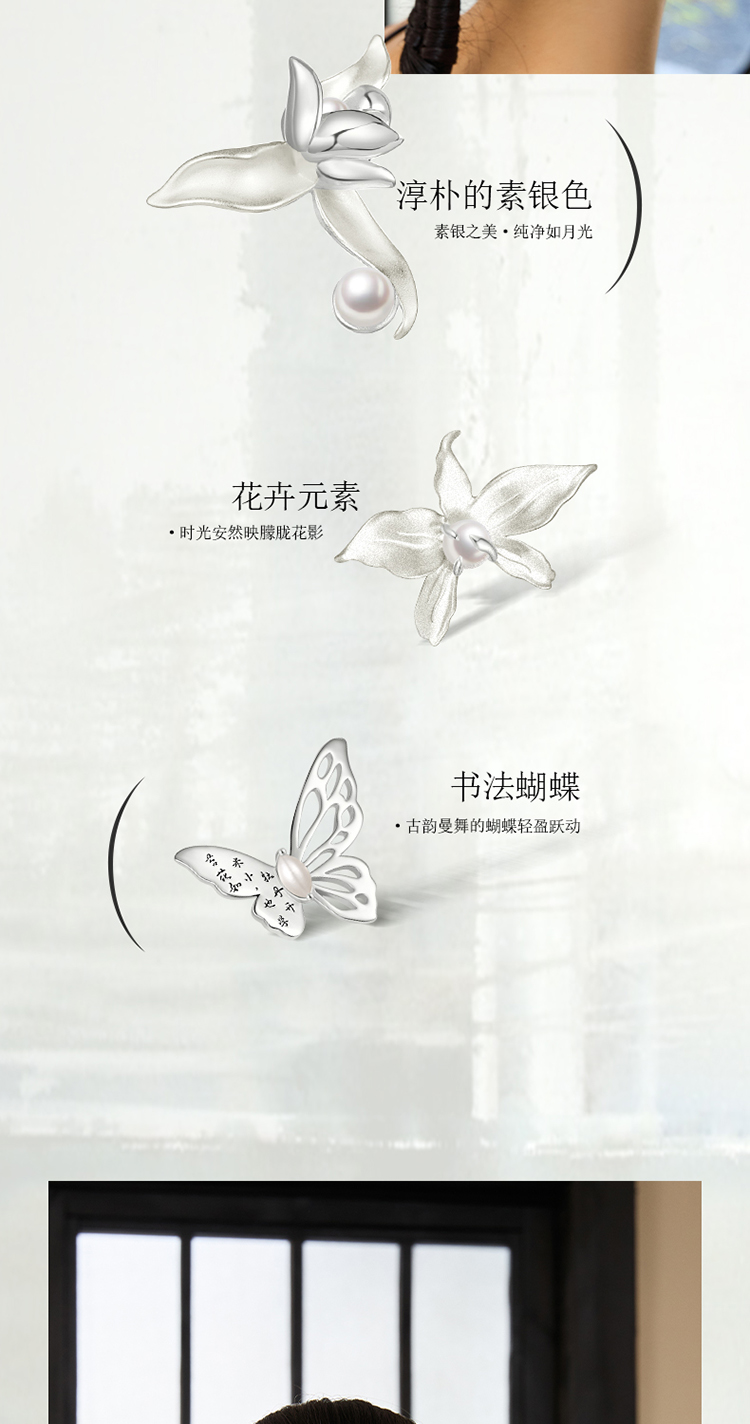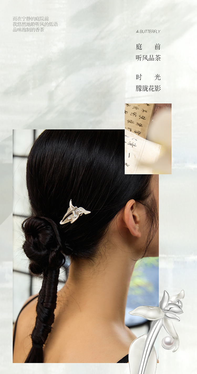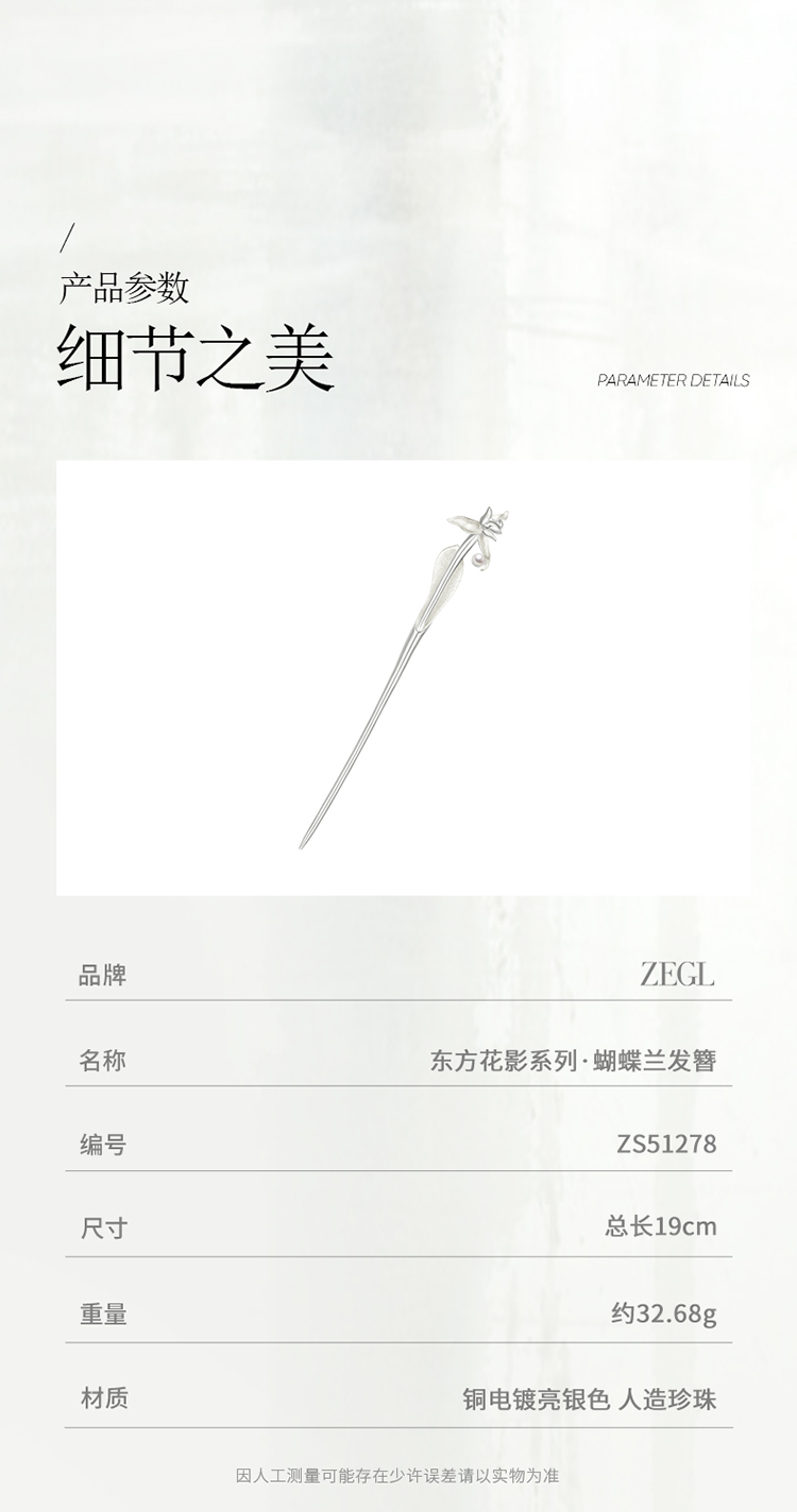 ZEGL设计师东方花影花朵发簪子新中式古风女高级感人造珍珠中国风