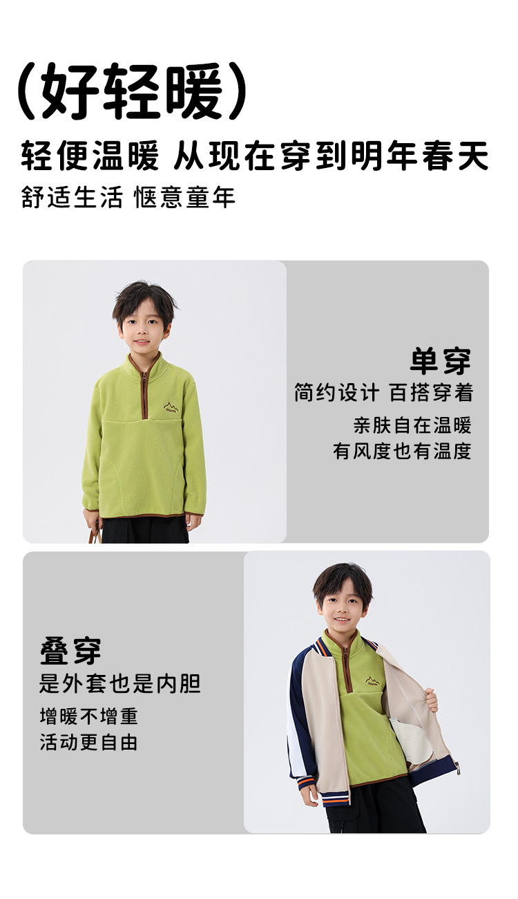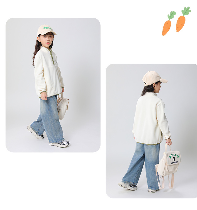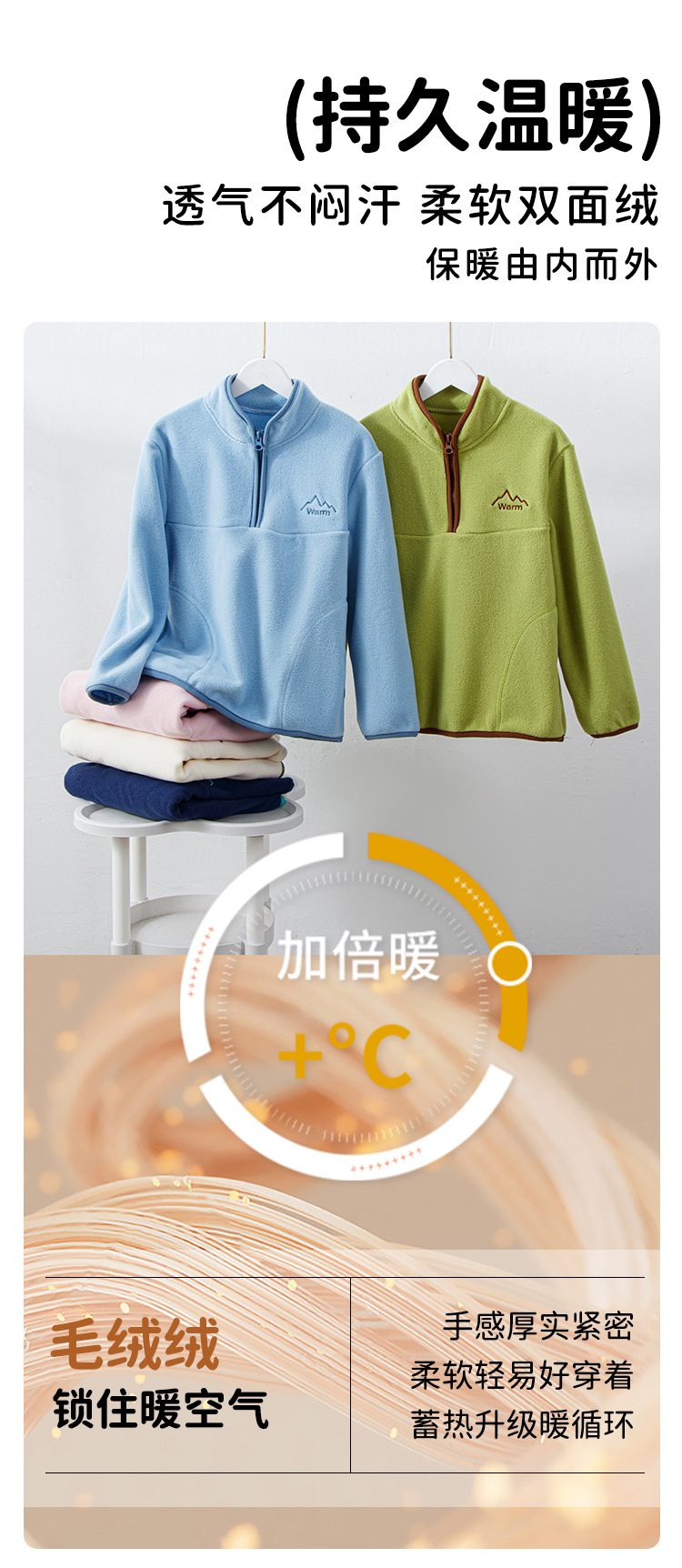 【39.9元/件】儿童套头摇粒绒外套男童女童洋气半拉链上衣秋冬季【2511“羊毛”服装】