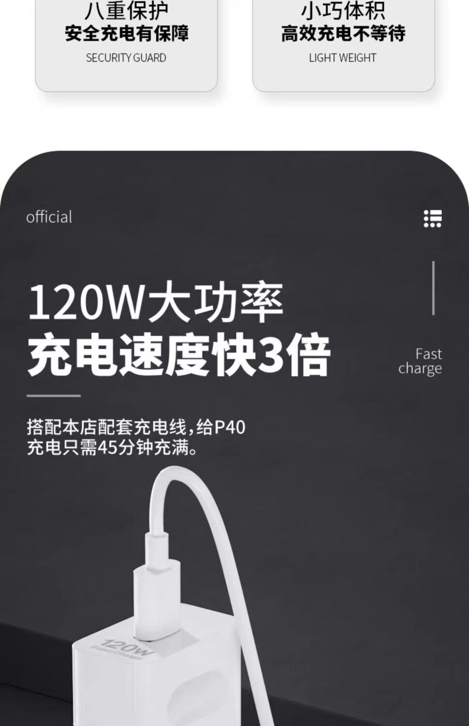 适用华为66W充电器120瓦超级快充充电头安卓荣耀typec手机充电套
