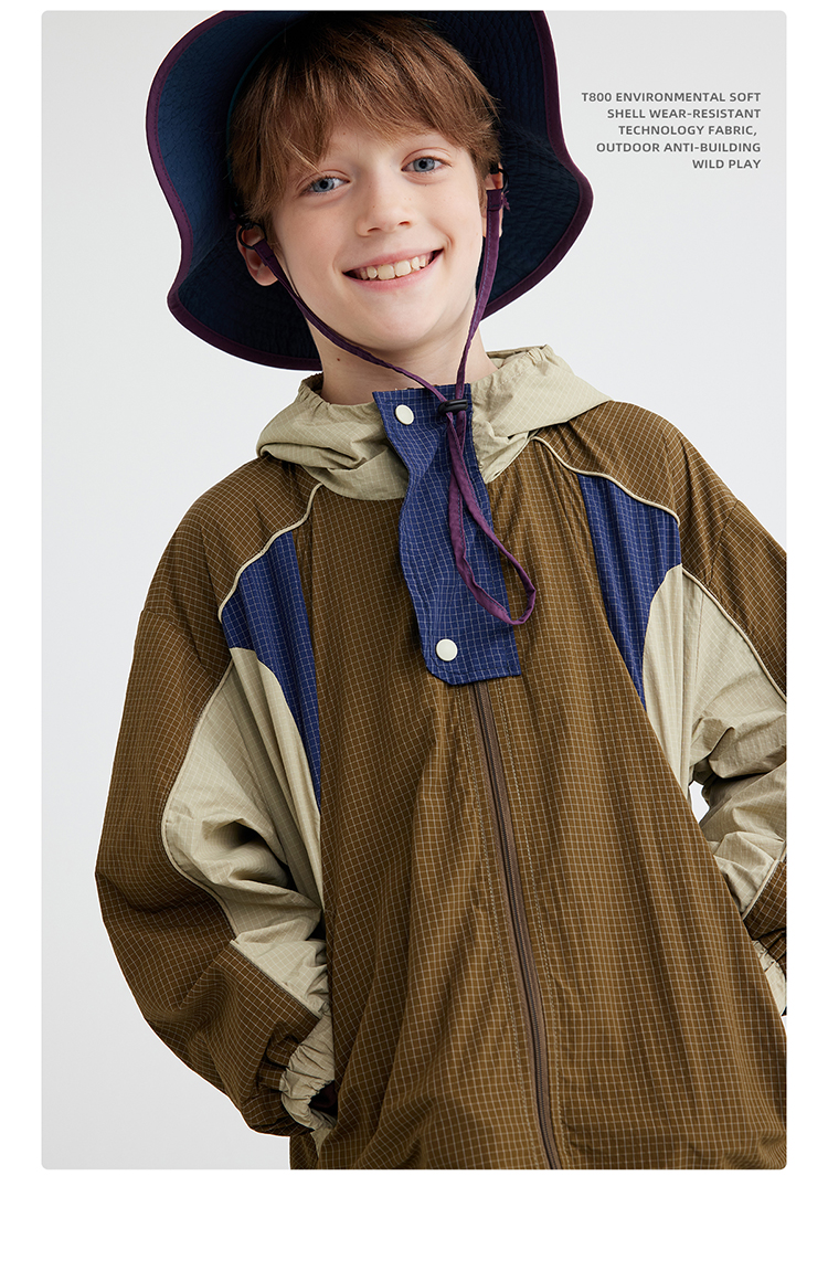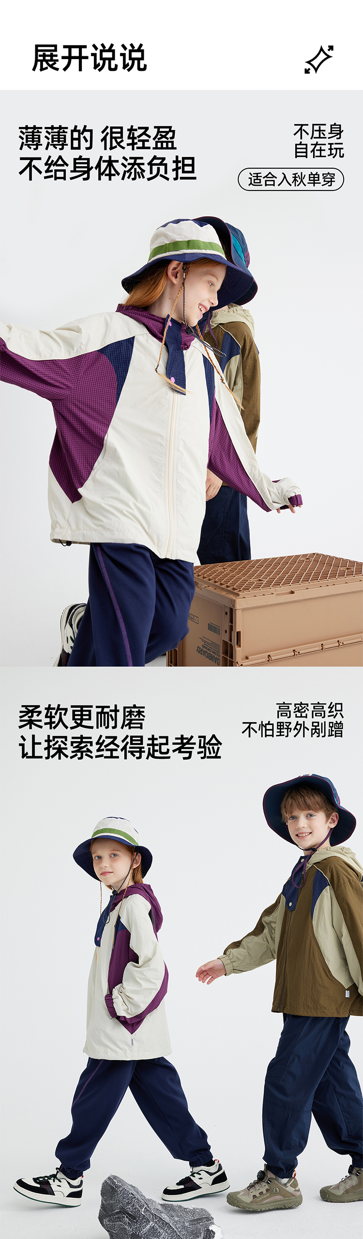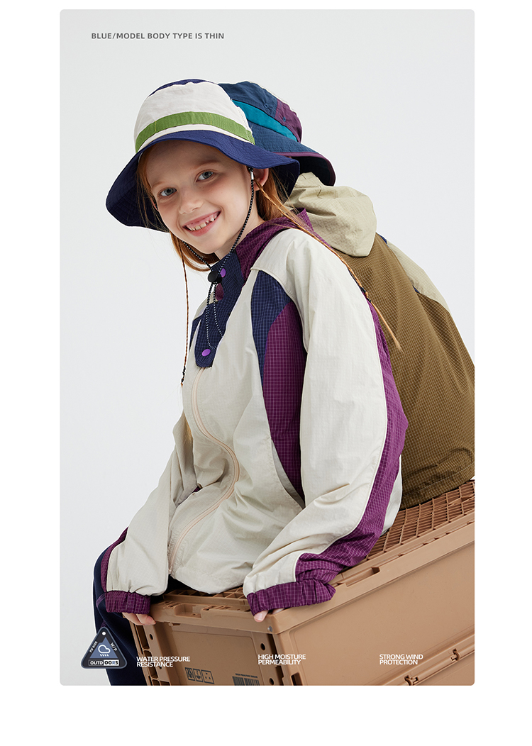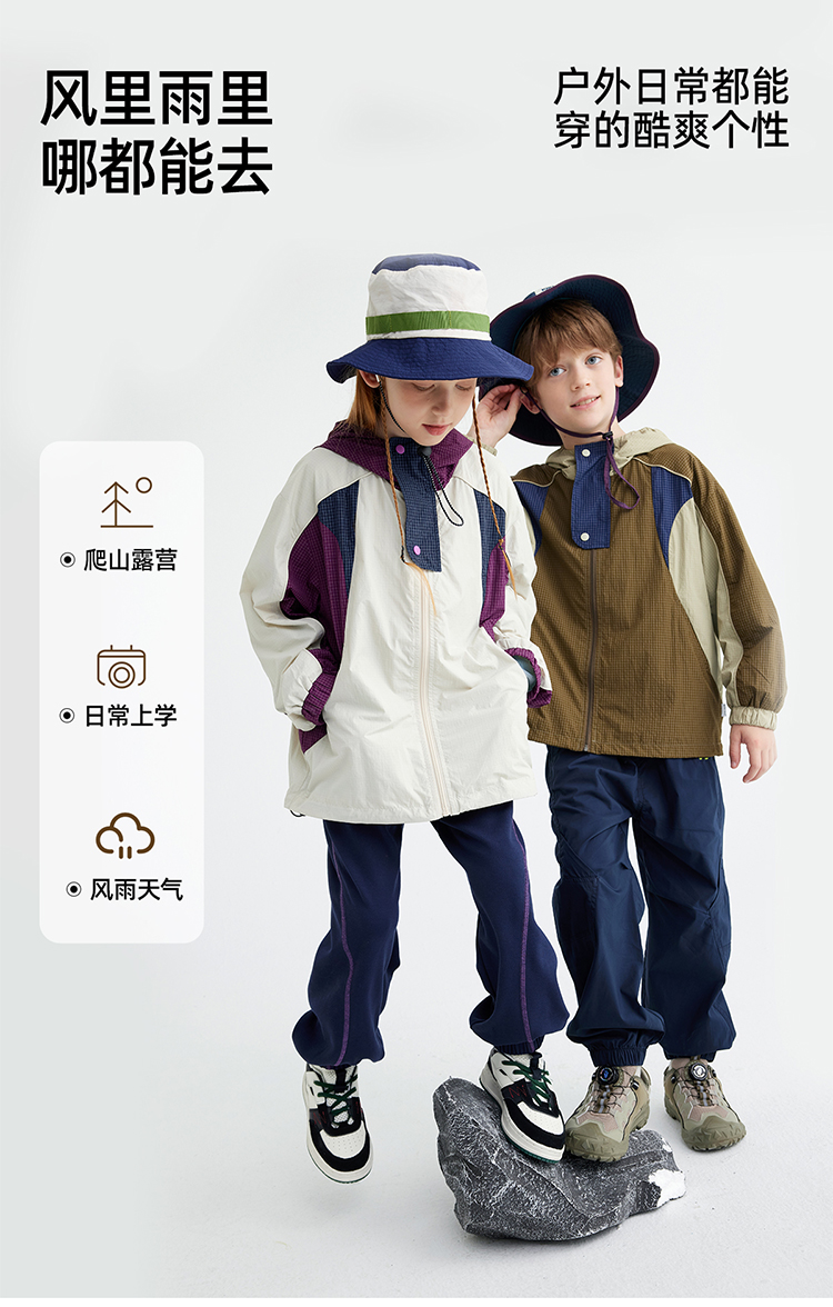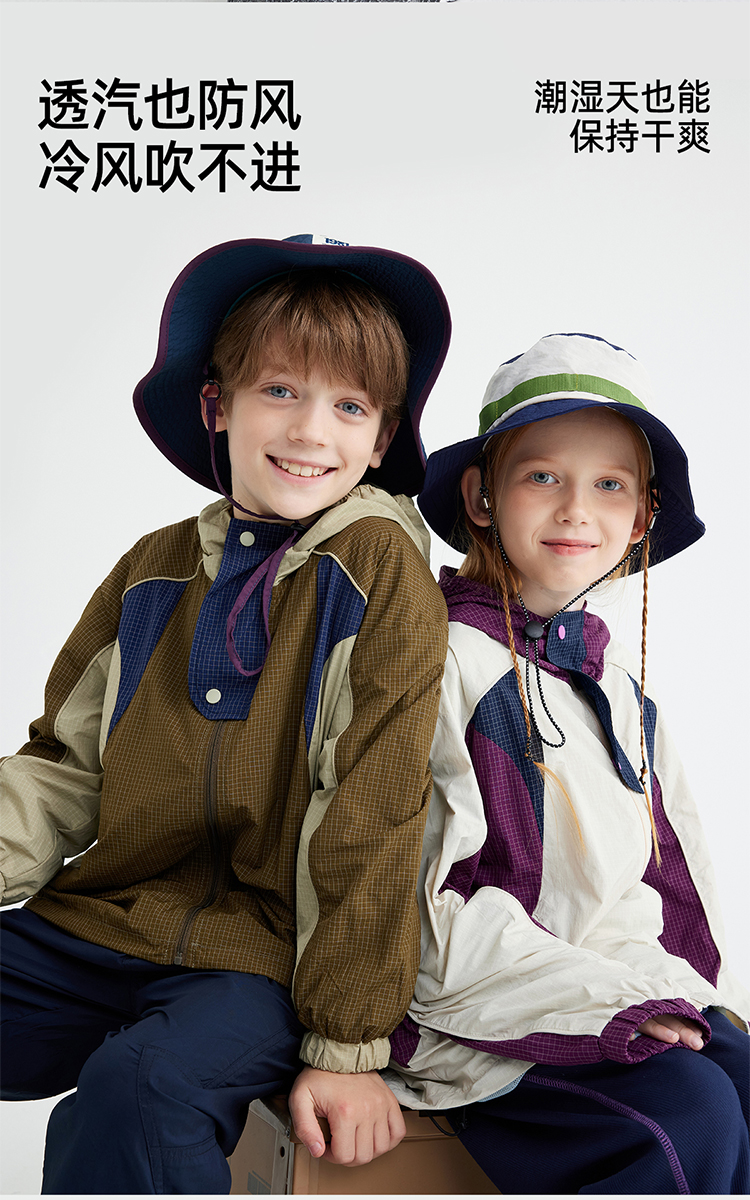 *【专业级四级防泼水】儿童户外轻量夹克连帽撞色外套 PQWT2401-PQWT2533-PQWT2534