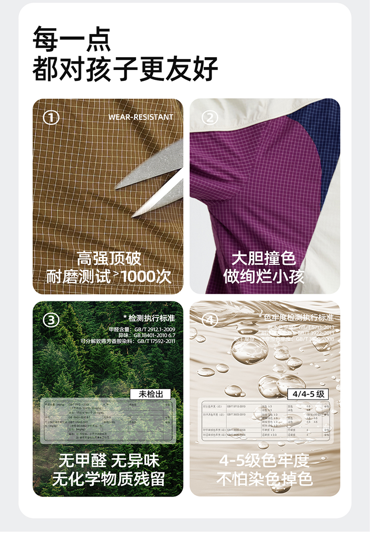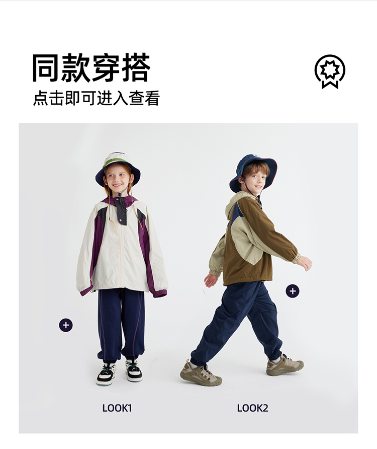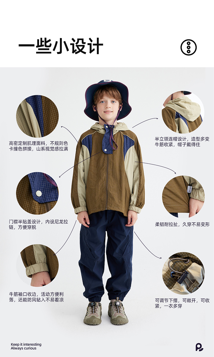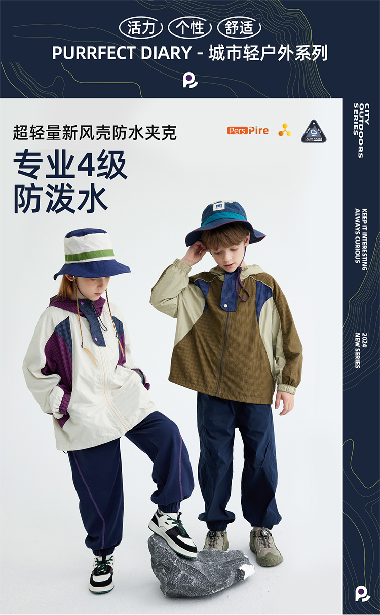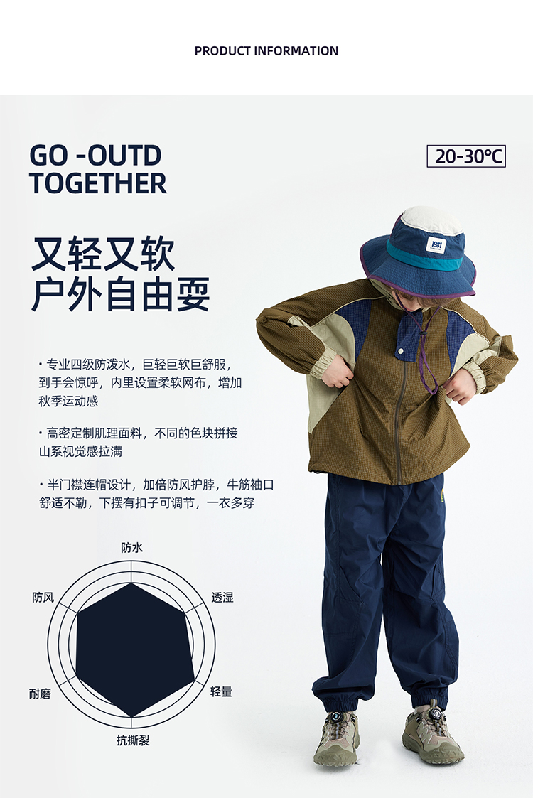 *【专业级四级防泼水】儿童户外轻量夹克连帽撞色外套 PQWT2401-PQWT2533-PQWT2534