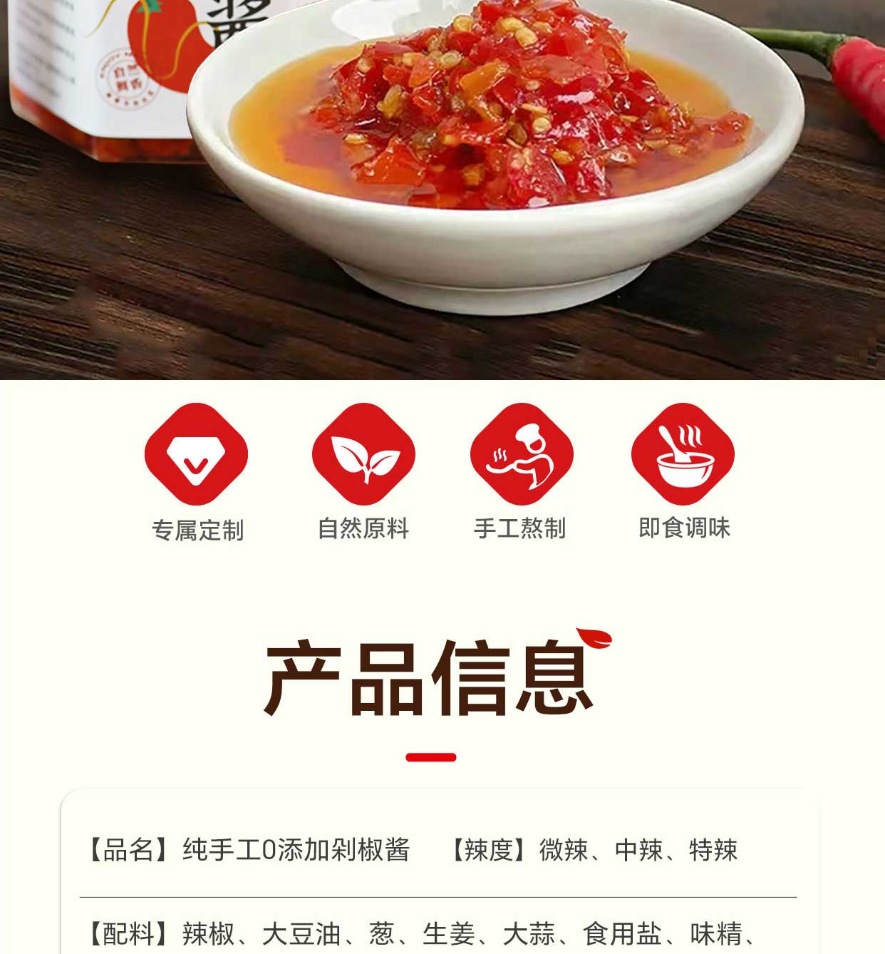 0添加,0防腐,拒绝辣椒精等化工成分,不含有任何“工业色彩”的剁椒酱