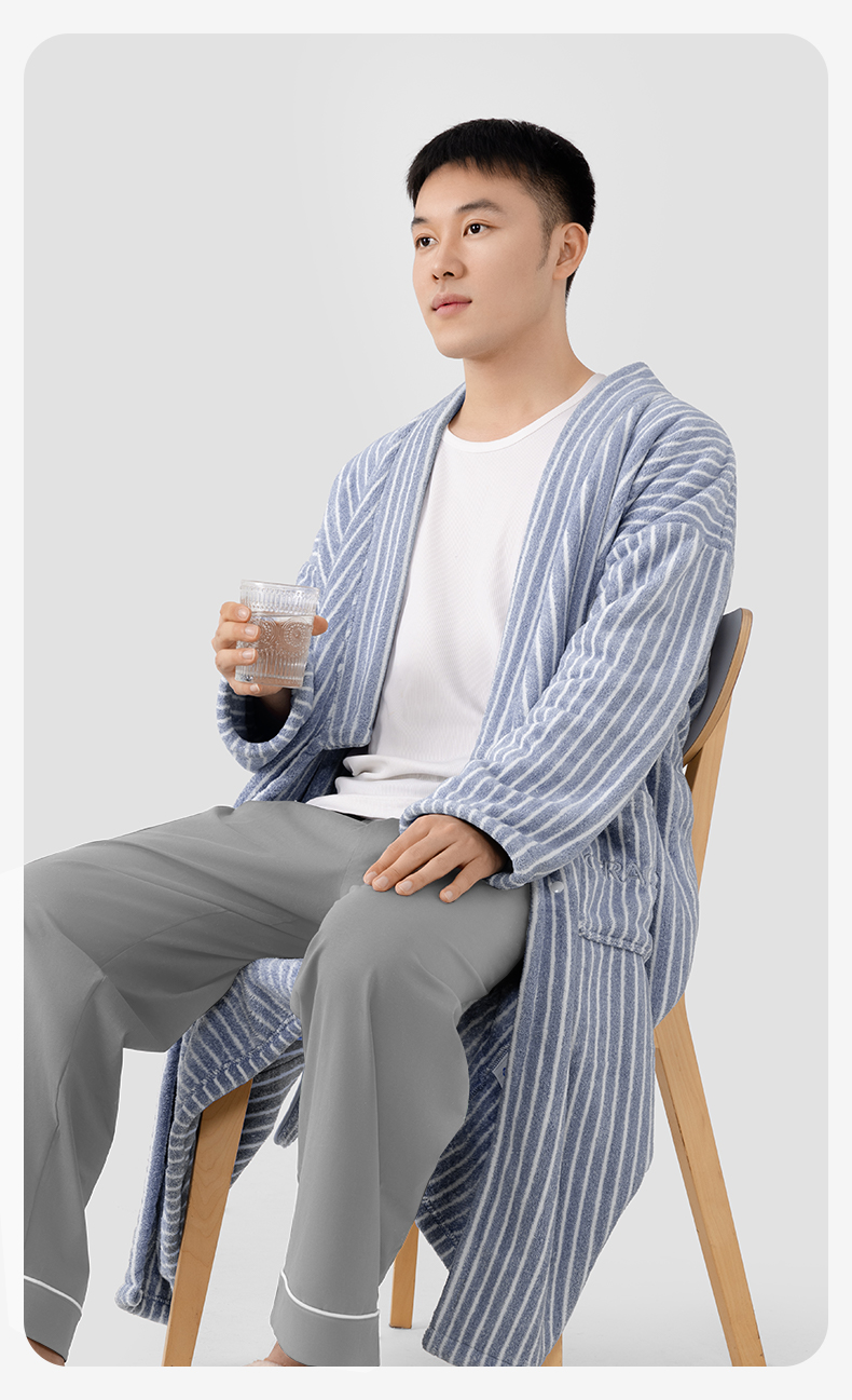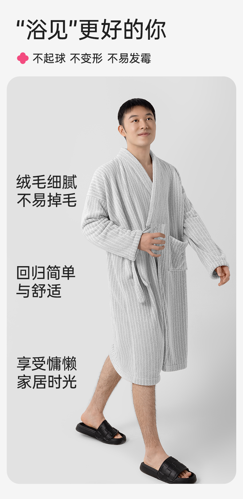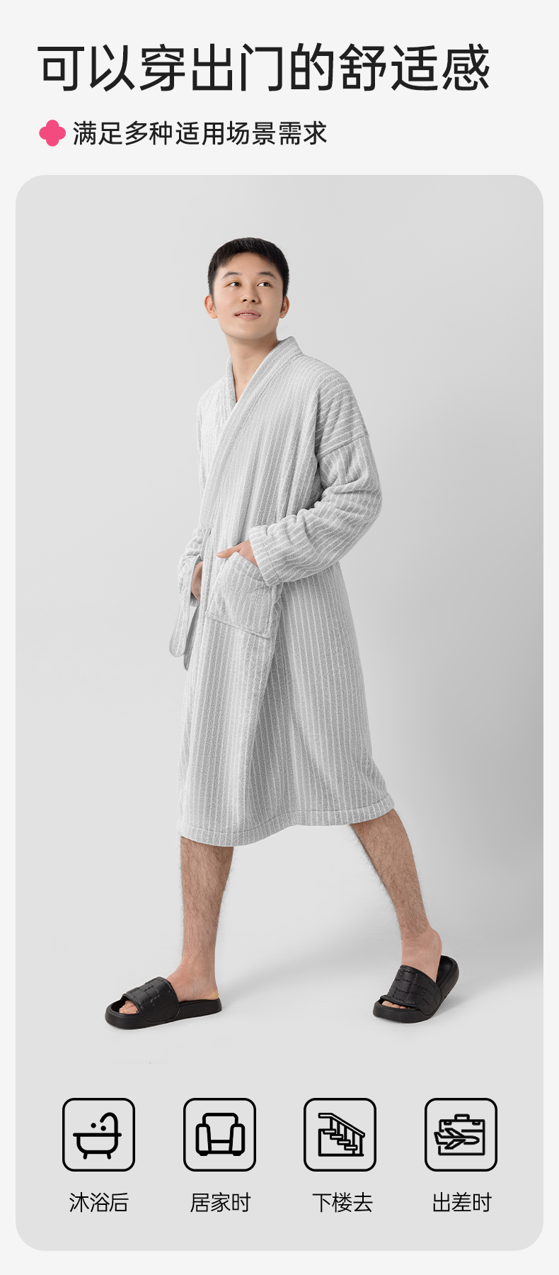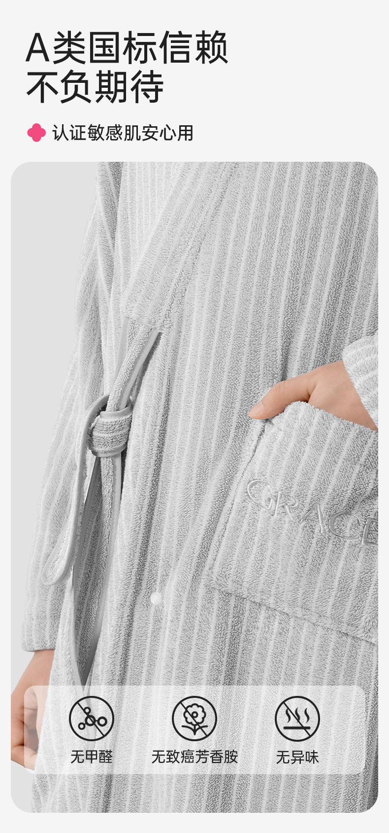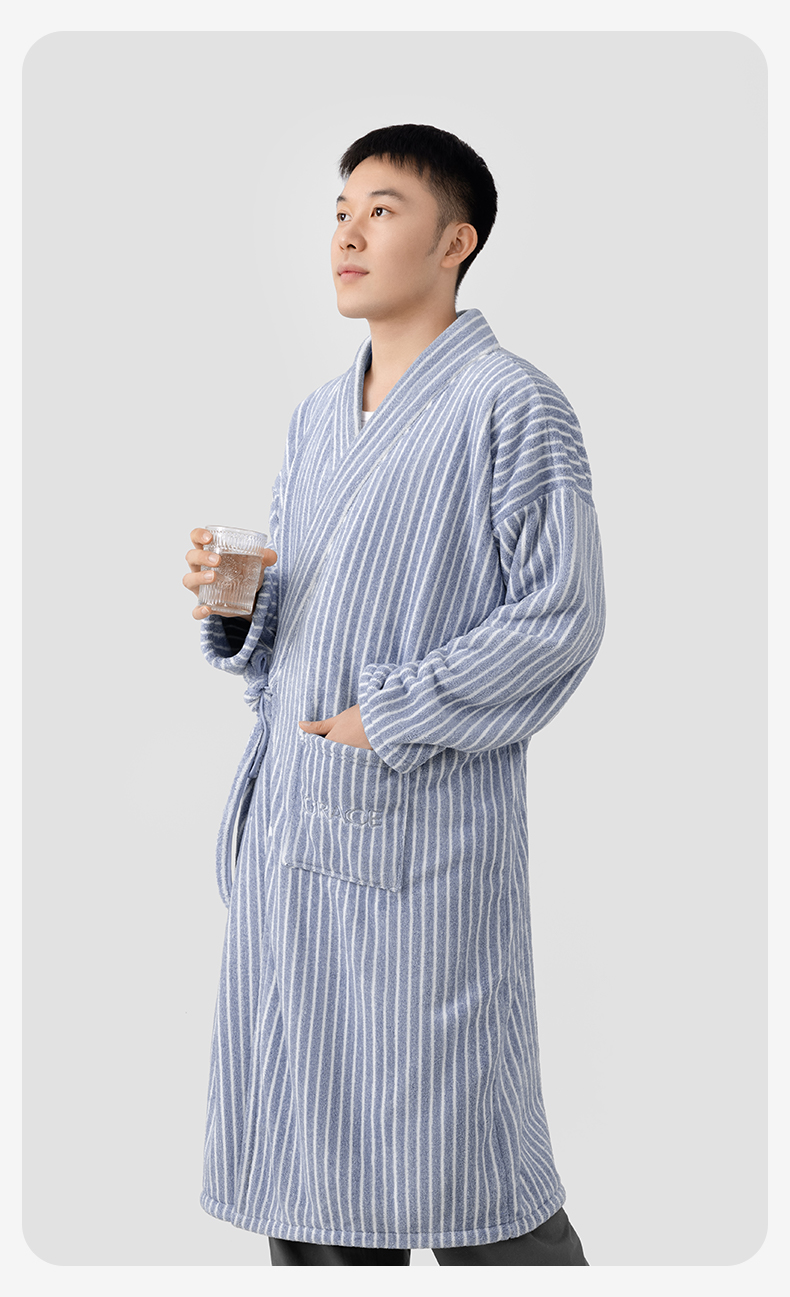 洁丽雅条纹浴袍加厚珊瑚绒男女吸水成人家用情侣浴衣保暖家居服