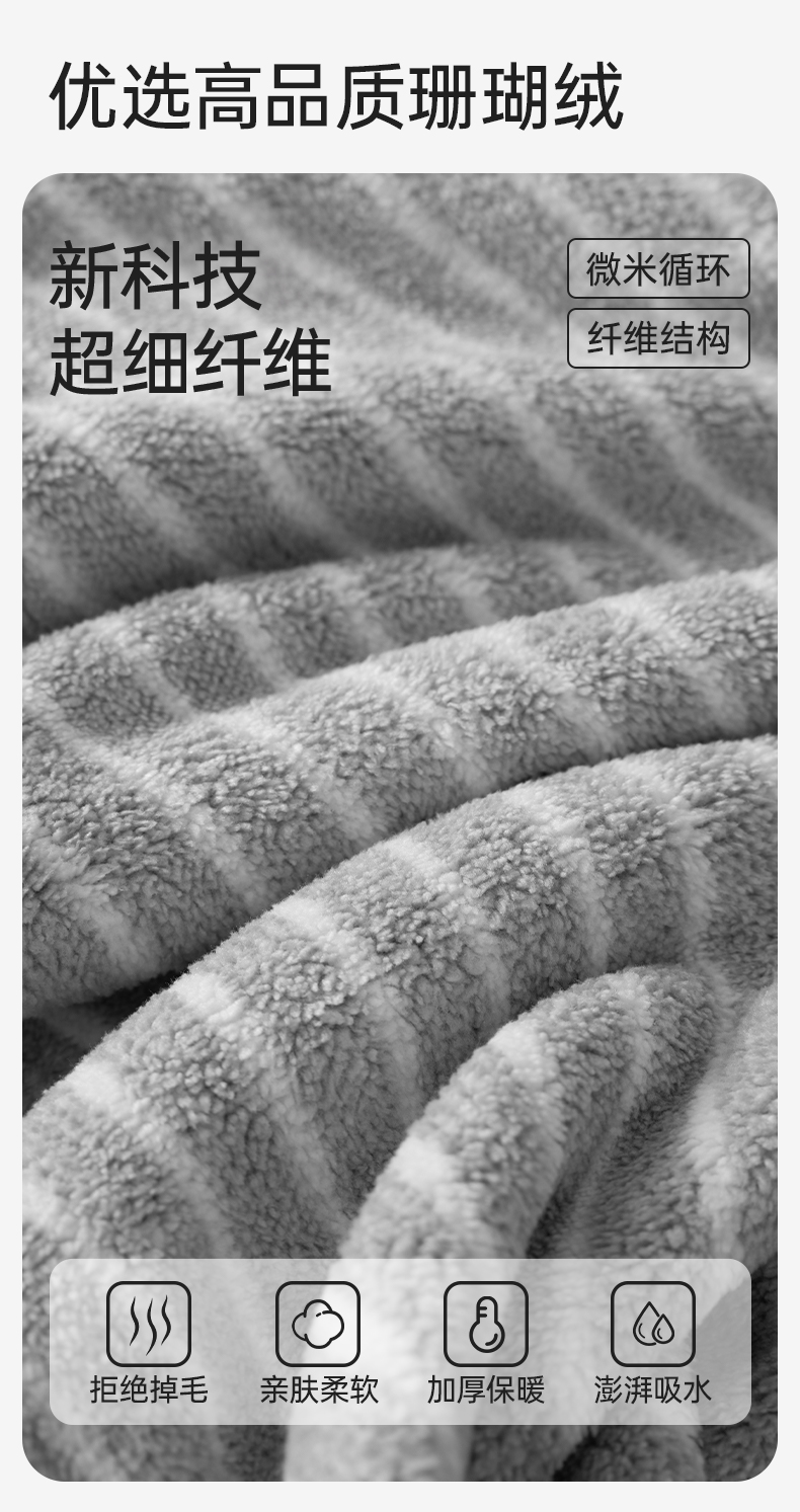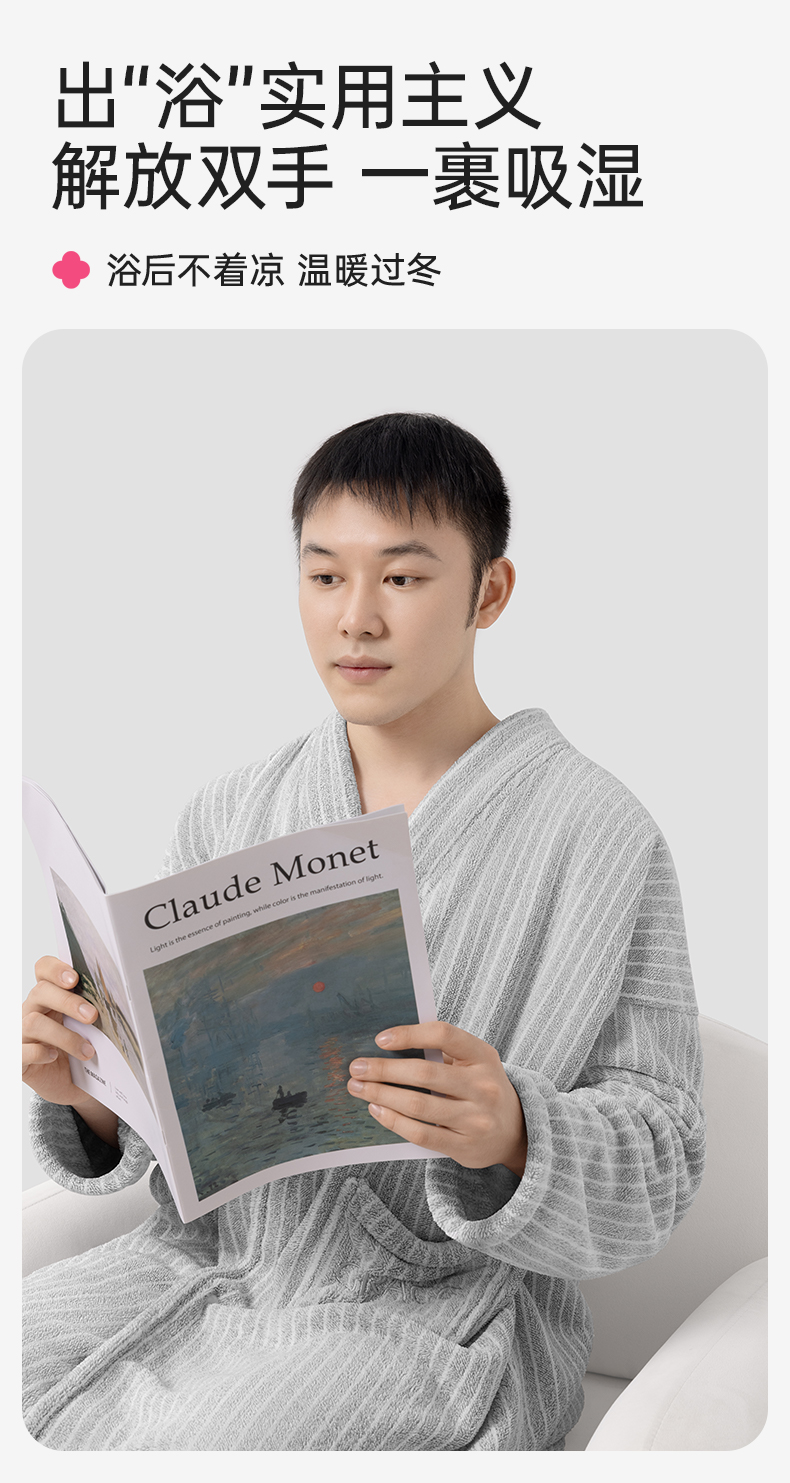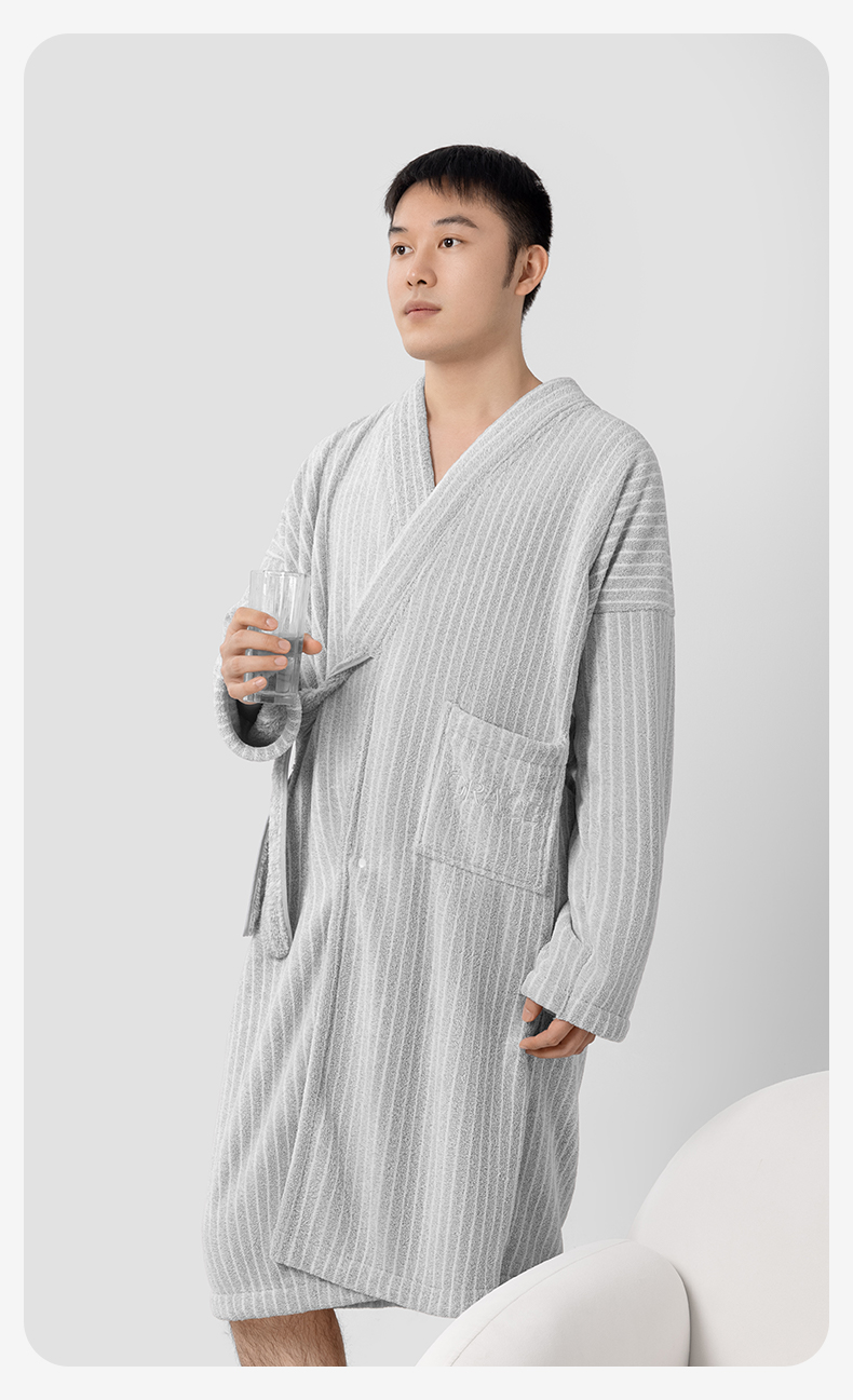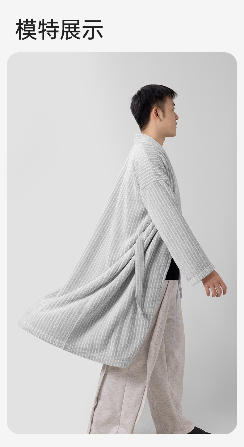 洁丽雅条纹浴袍加厚珊瑚绒男女吸水成人家用情侣浴衣保暖家居服