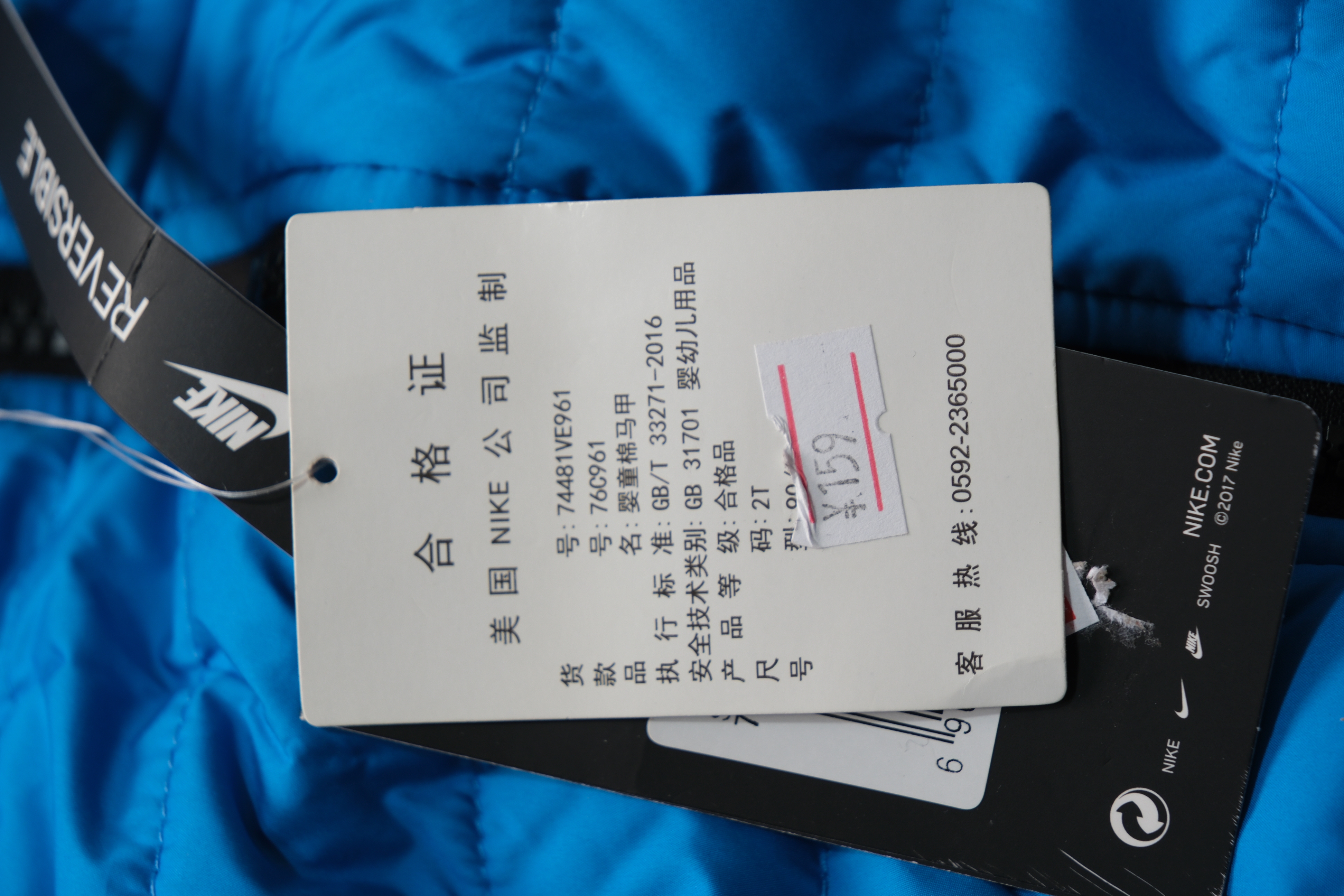 耐克-童衣类(冬)A7NIKE YA4男婴童棉马甲浅照片蓝