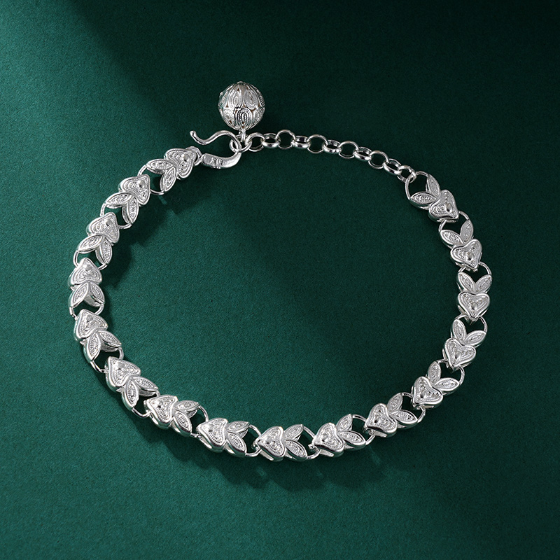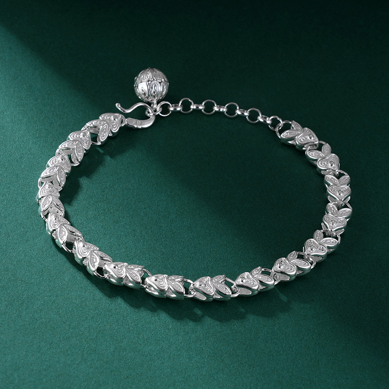 子佩集S990银【芳原浅步】手链【QLSL001】纯银花丝麦穗金鱼兔子2405