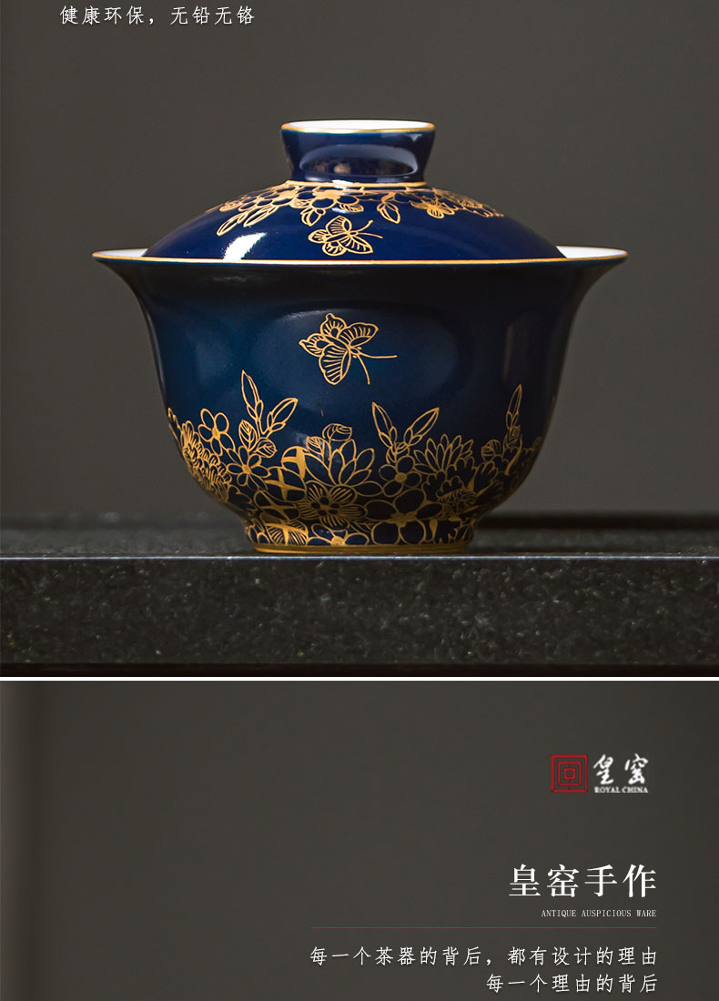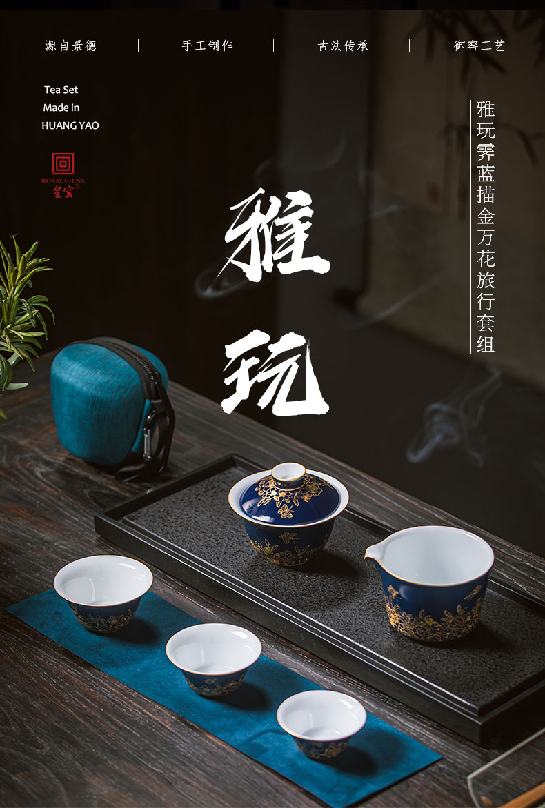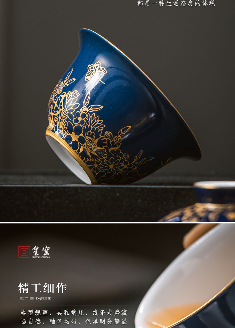 【皇窑】雅玩 手绘祭兰描金万花茶具