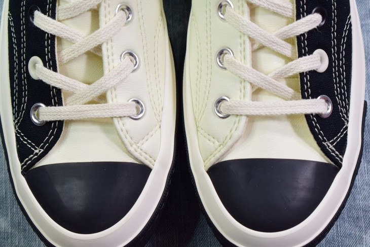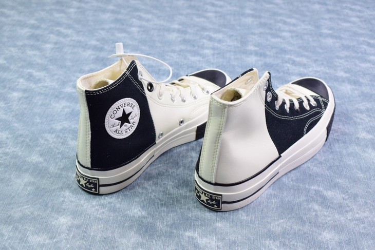 全新拼接设计 精致手工硫化组合,正确发售版本,硅蓝PU中底制双拼补丁,头层皮和帆布解构重组效果,匡威Converse Restructured Chuck 1970 High“White”