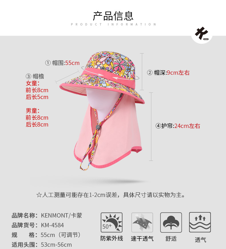 【云优选】卡蒙印花后颈布可收纳儿童防晒帽KM-4584