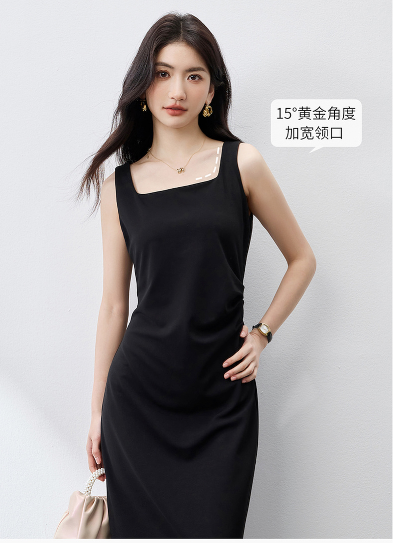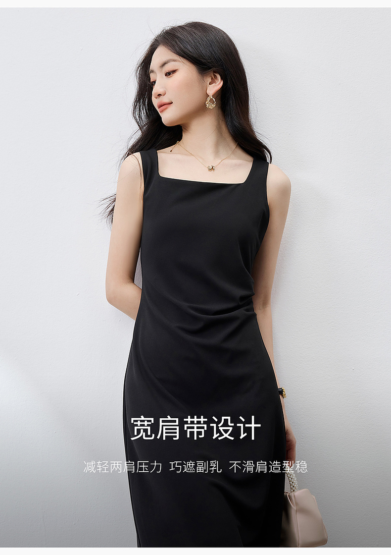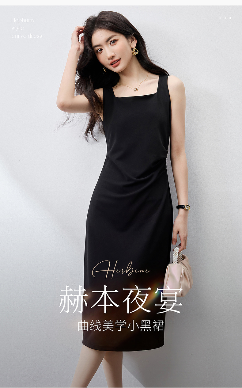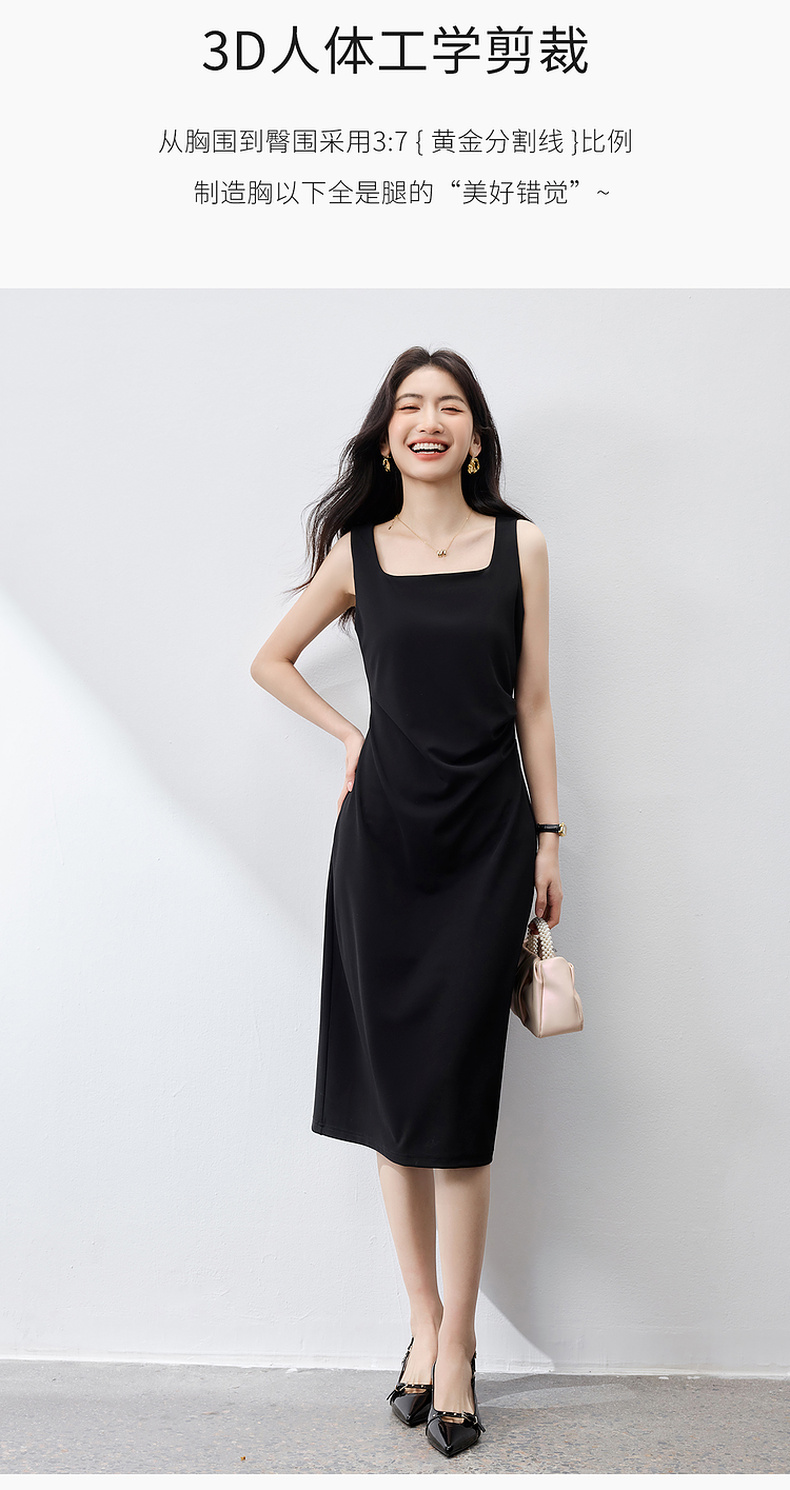 【内购】气质优雅知性名媛风温柔性感轻熟风无袖背心方领法式连衣裙-153LP3722X