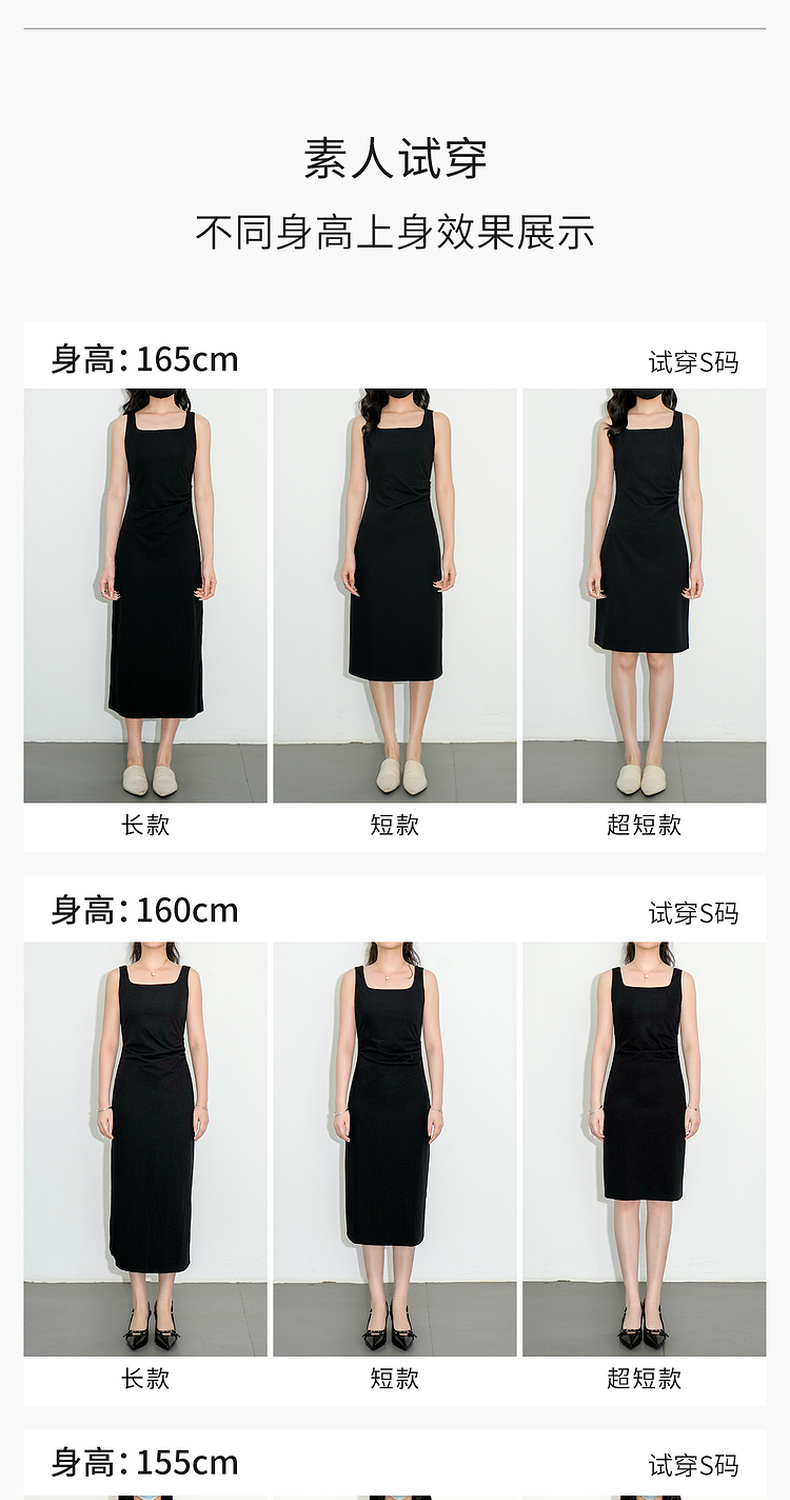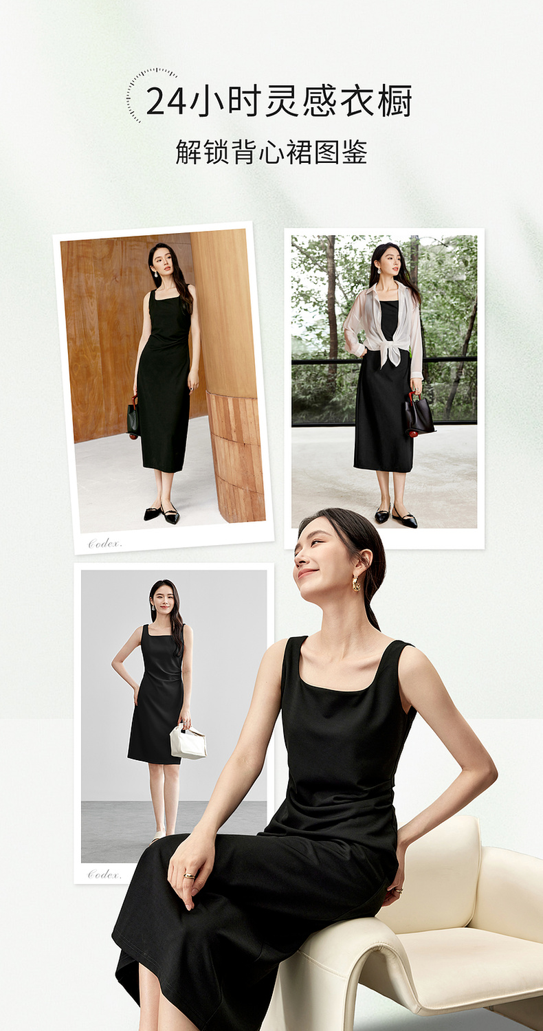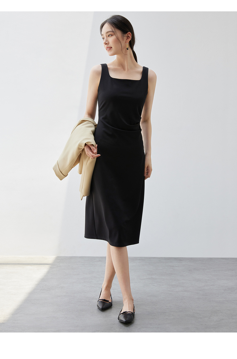 【内购】气质优雅知性名媛风温柔性感轻熟风无袖背心方领法式连衣裙-153LP3722X