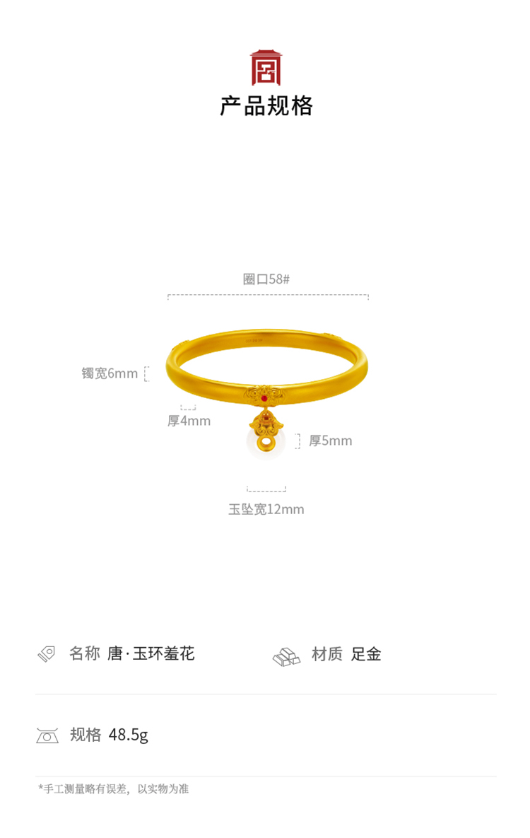 宫匠造办 十朝十美宫镯 唐·玉环羞花黄金手镯