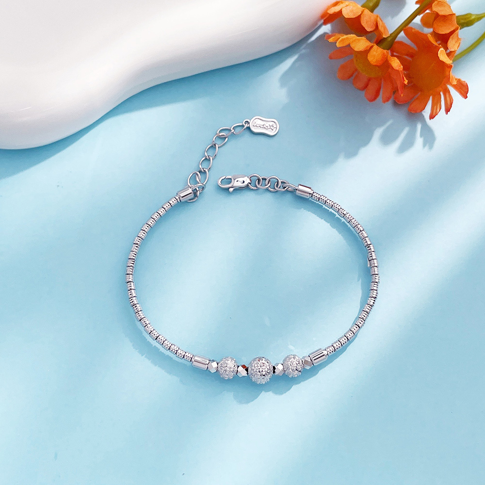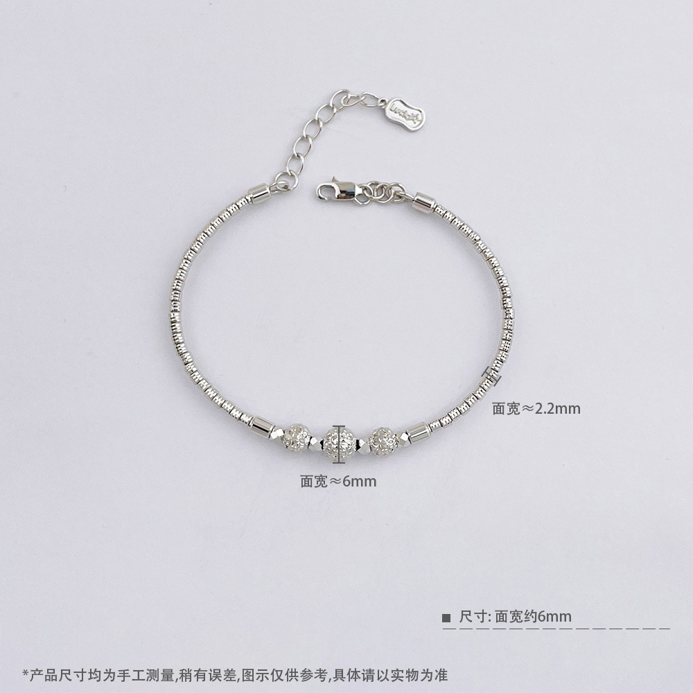 【限时8.8折】【线上铂金馆】PT950 【国际铂金协会】铂金空心串珠蹦迪珠开口调节手镯(面宽约5.8-6.2mm)(BSZ00172)(预售4-7天发货,一经下单不支持退款)