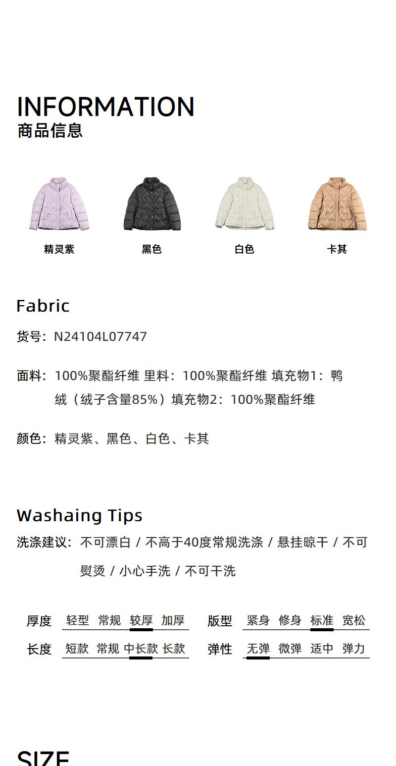 NEELLY纳俪商场同款冬季新款通勤百搭立领保暖羽绒服轻薄外套女N24104L07747