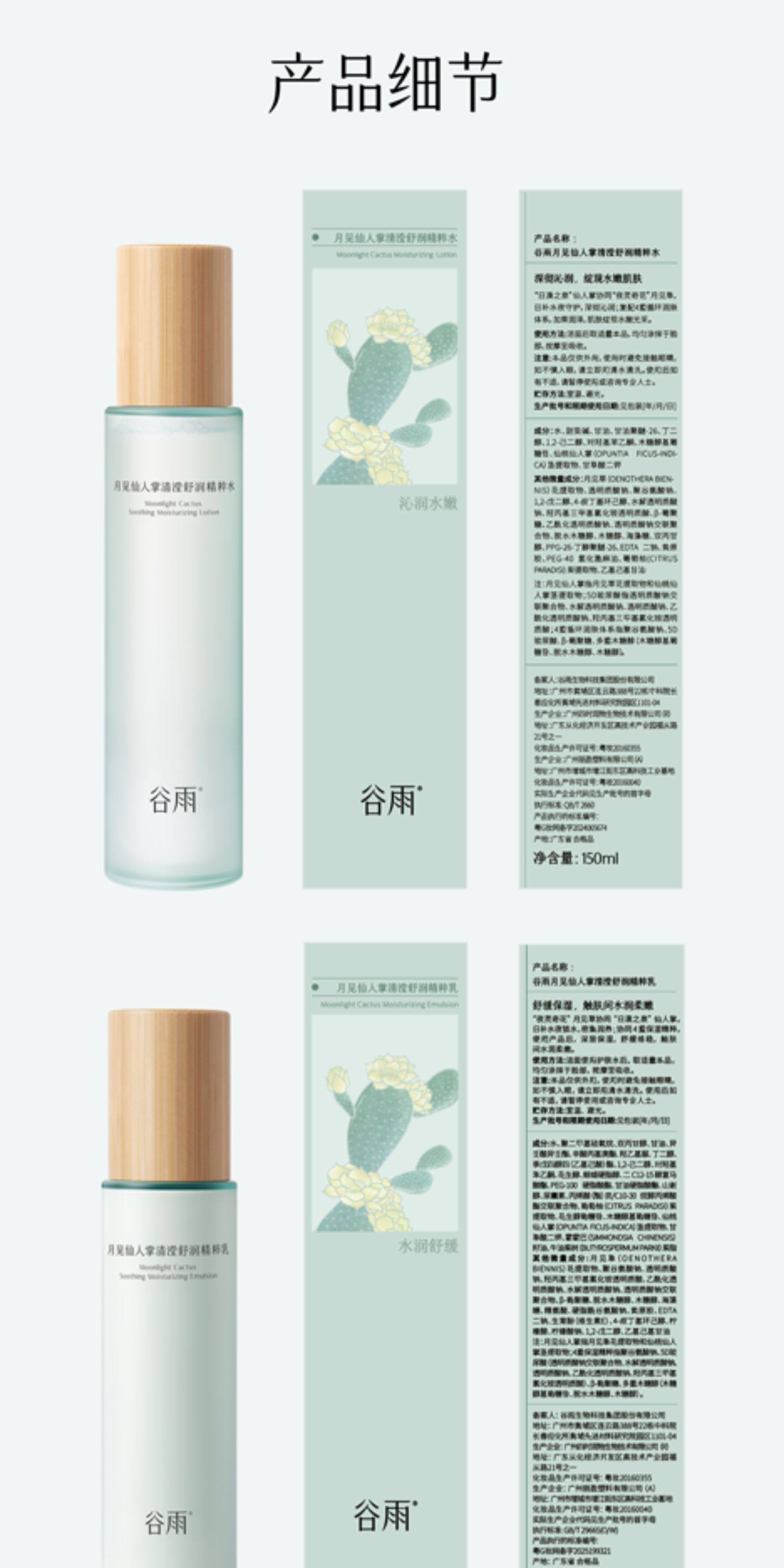 【补水王】谷雨仙人掌清滢舒润水乳套装 补水保湿干皮舒缓滋润