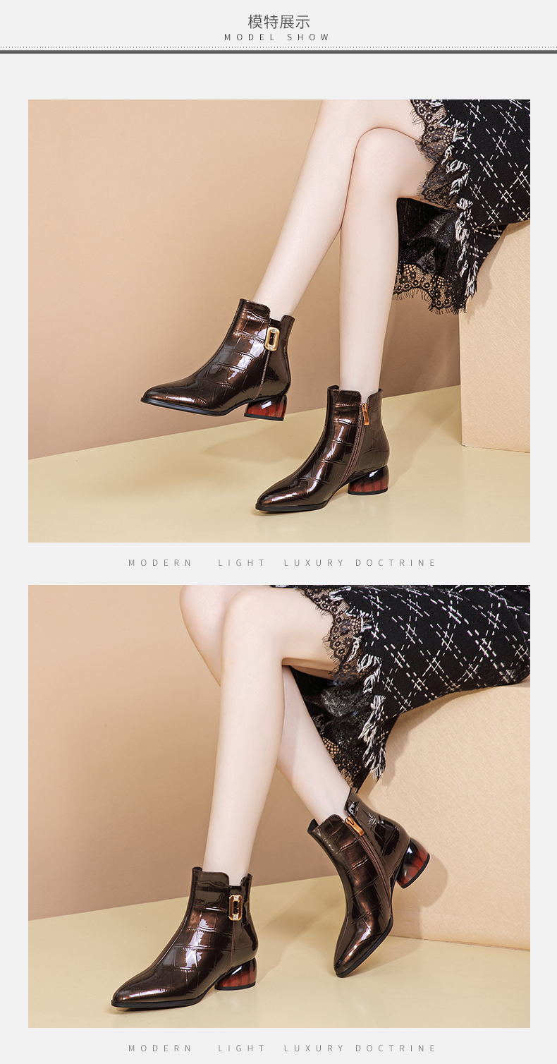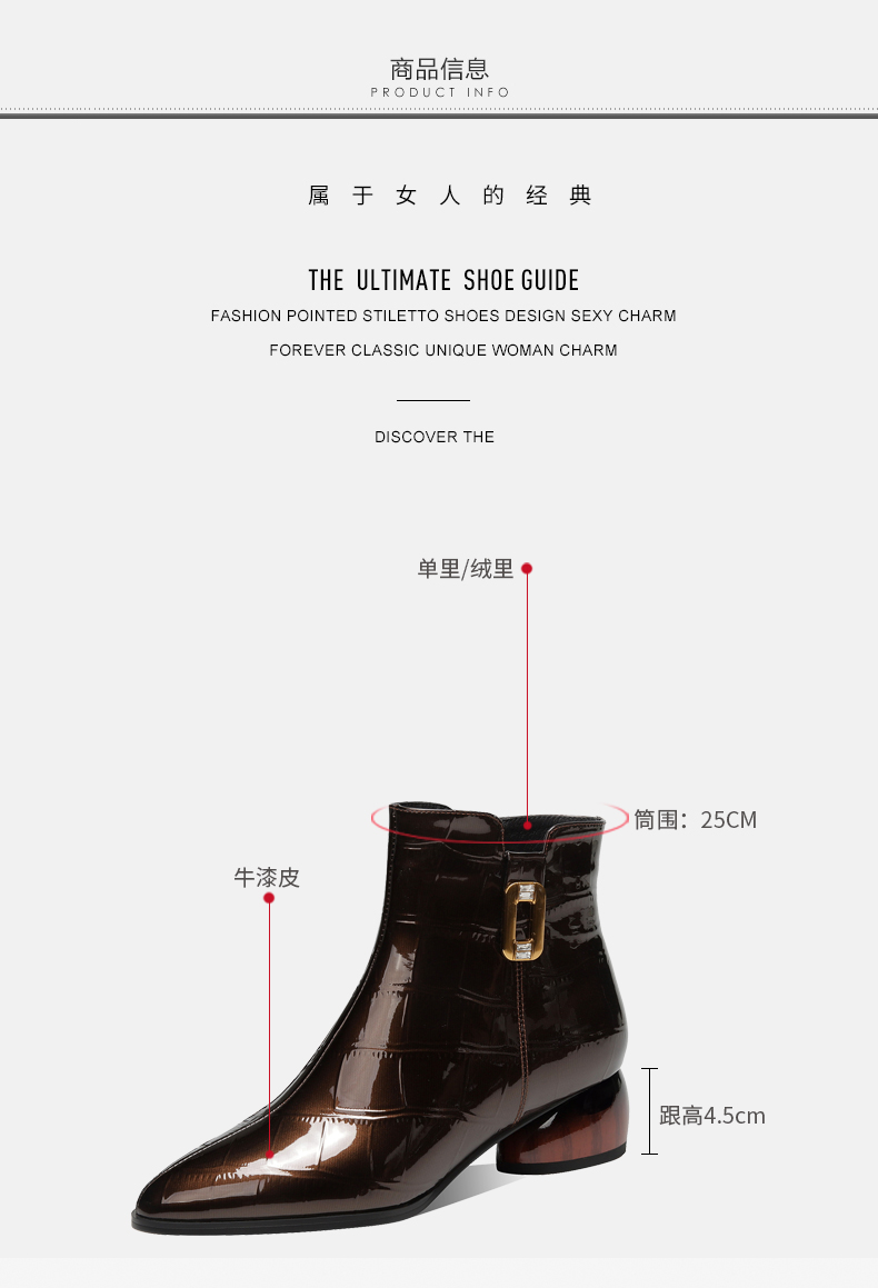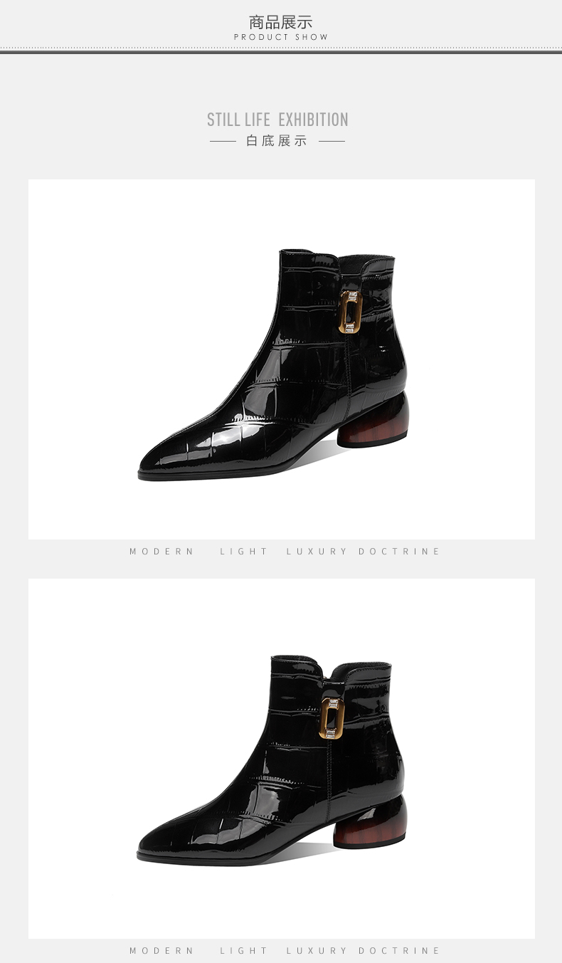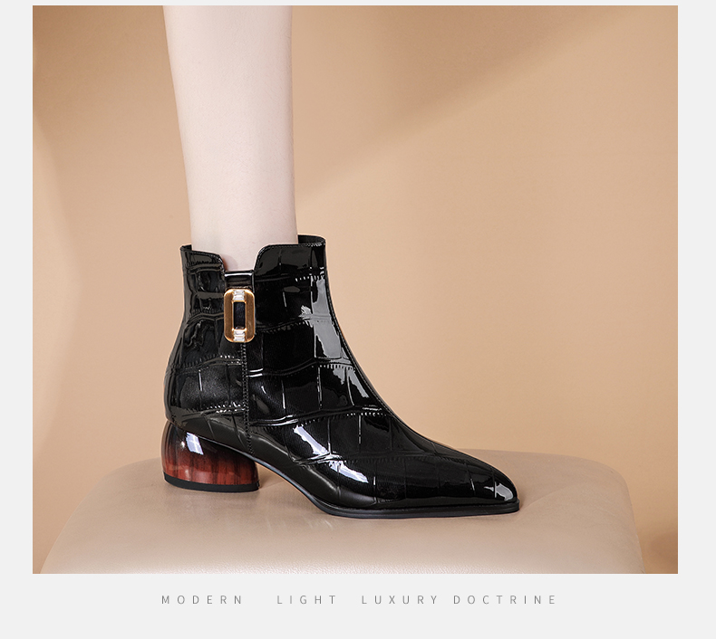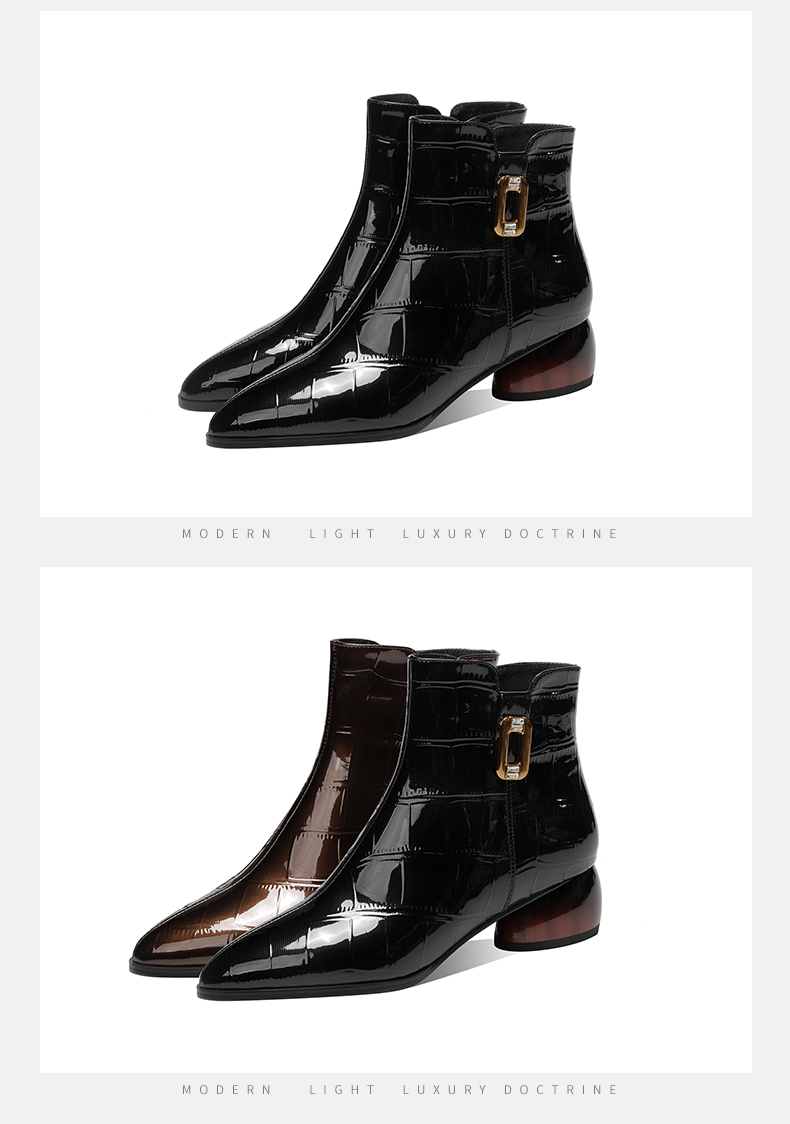 时尚百搭,亮面真皮粗跟短靴DP-6263