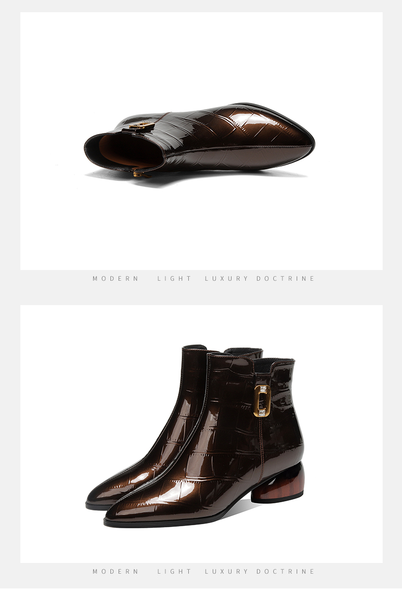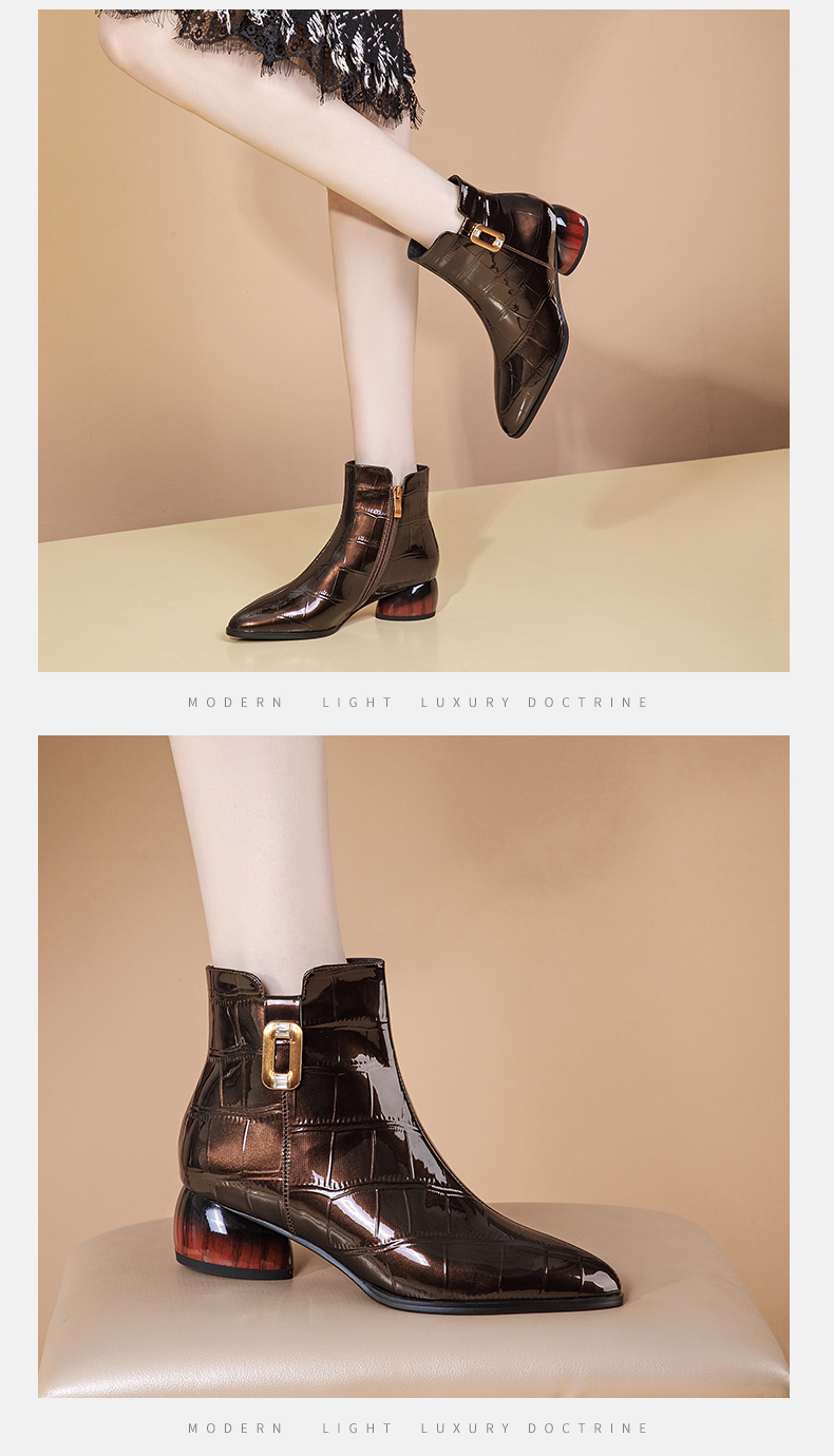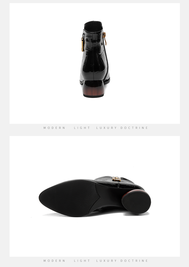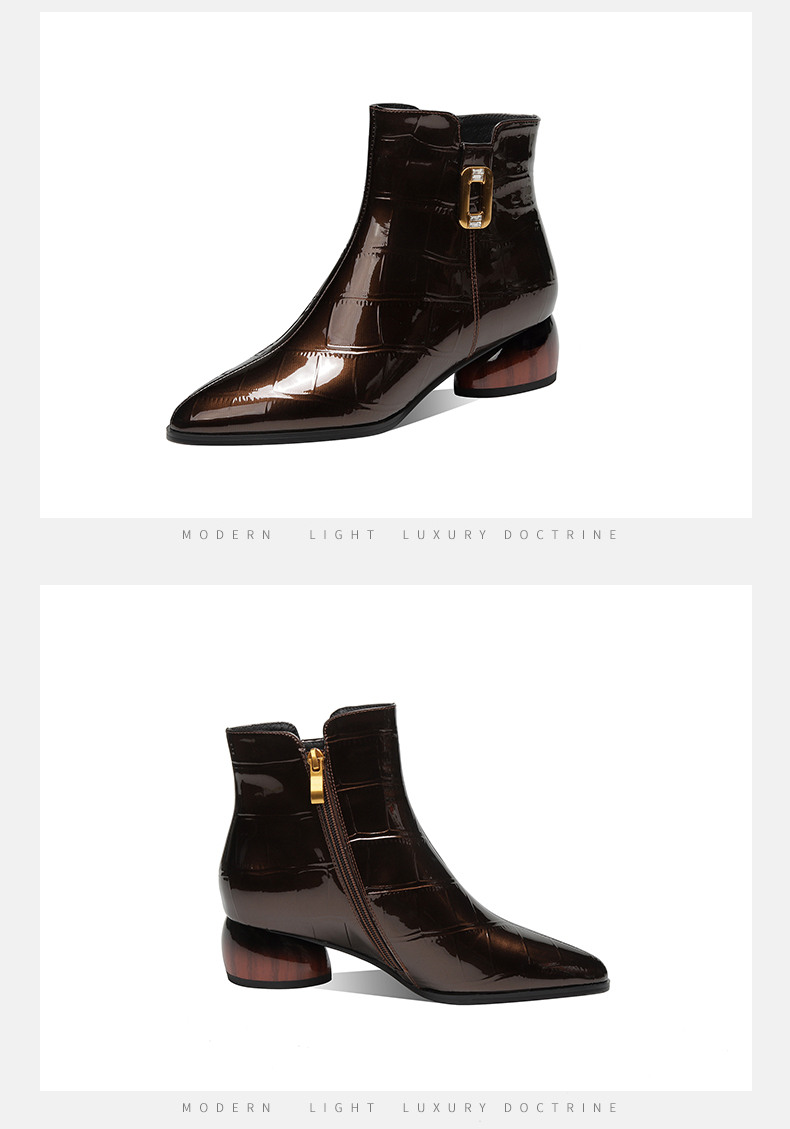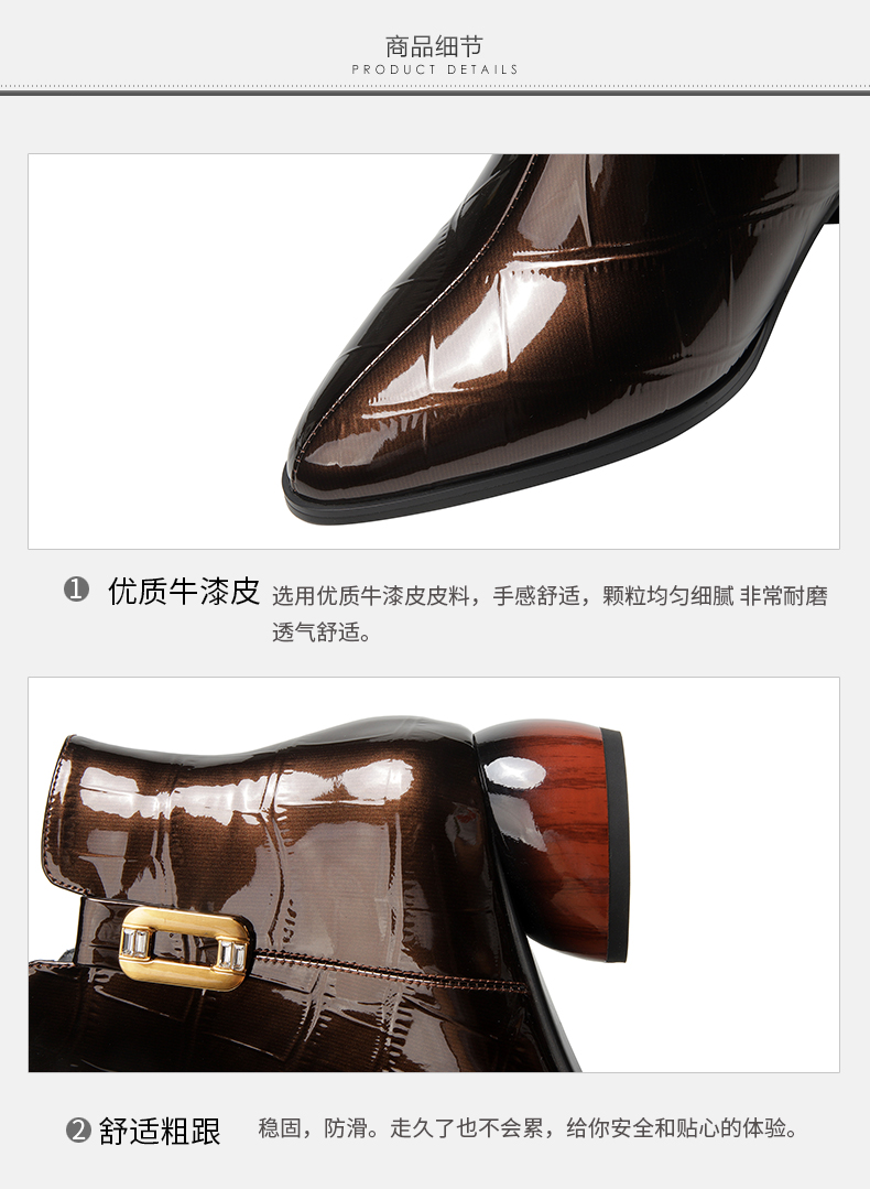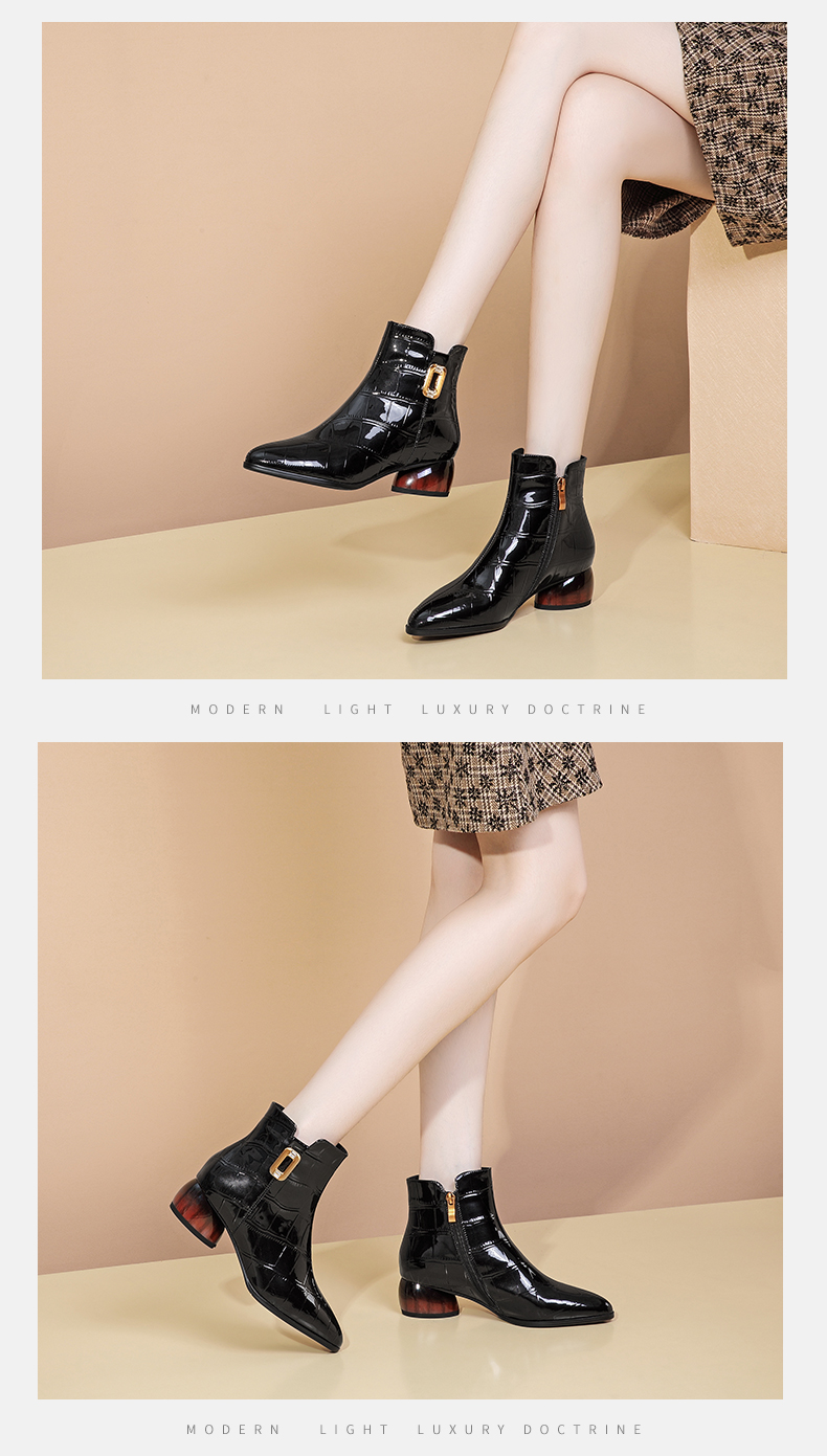 时尚百搭,亮面真皮粗跟短靴DP-6263