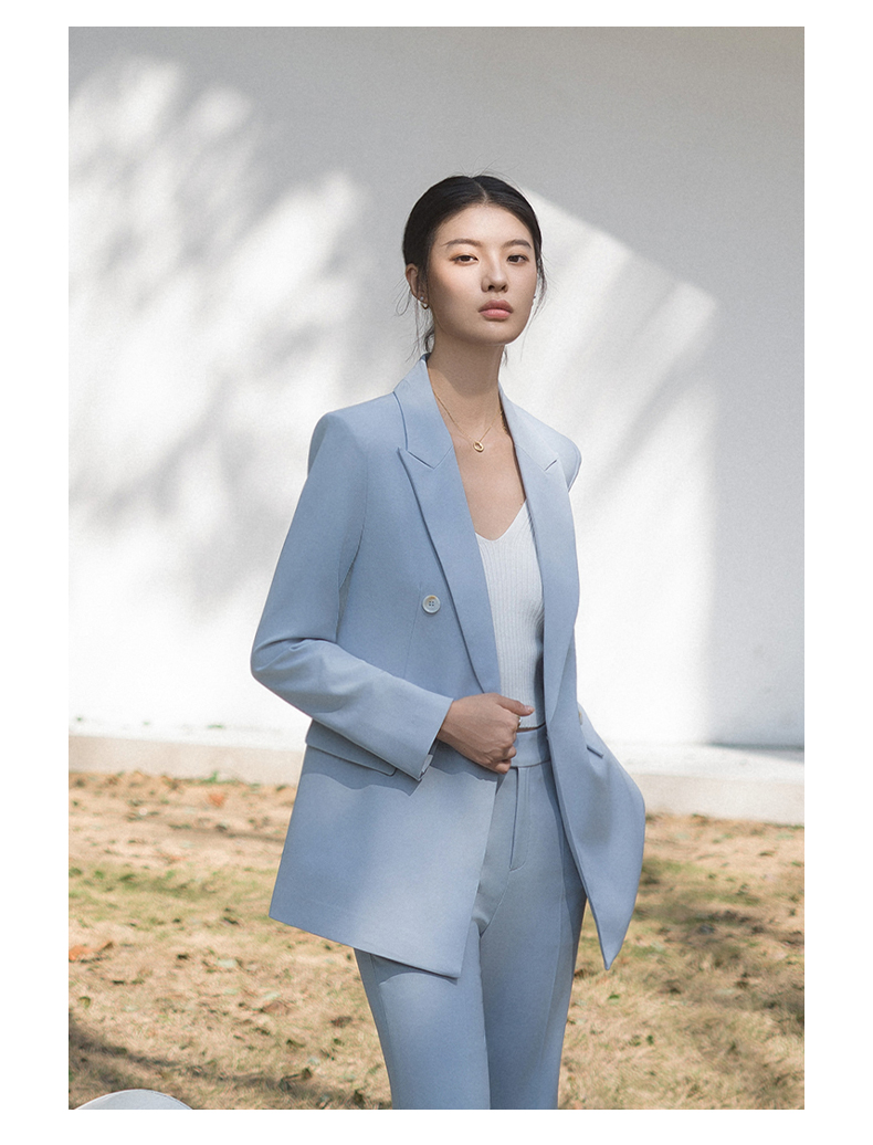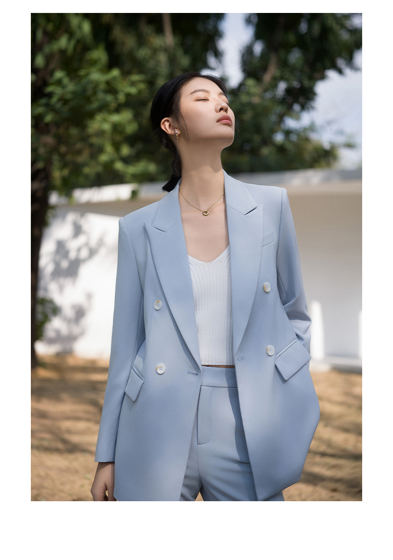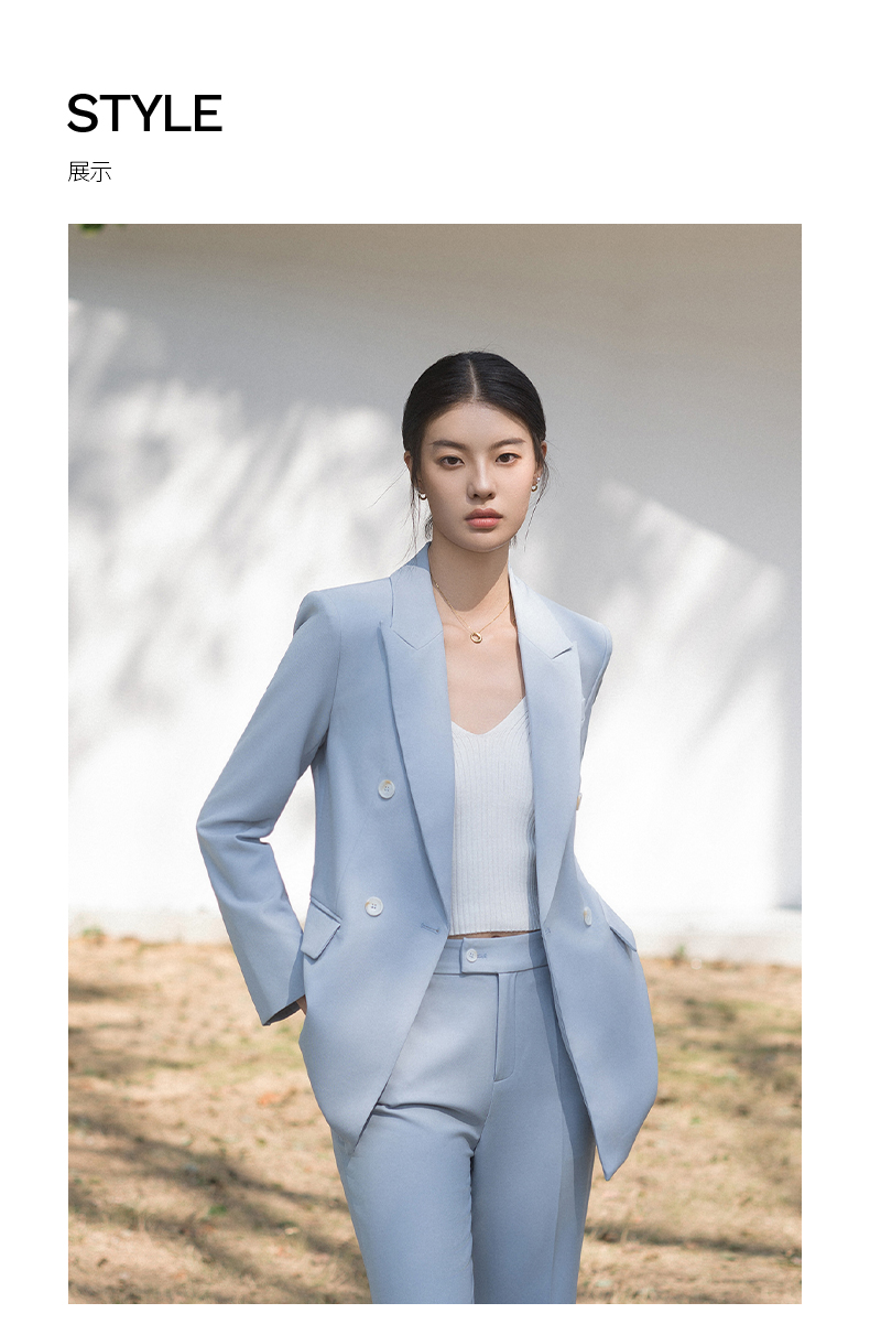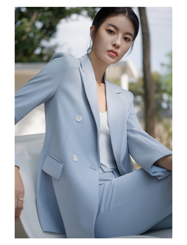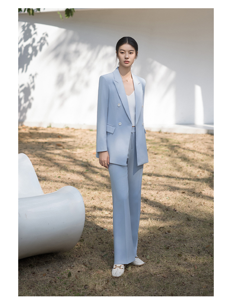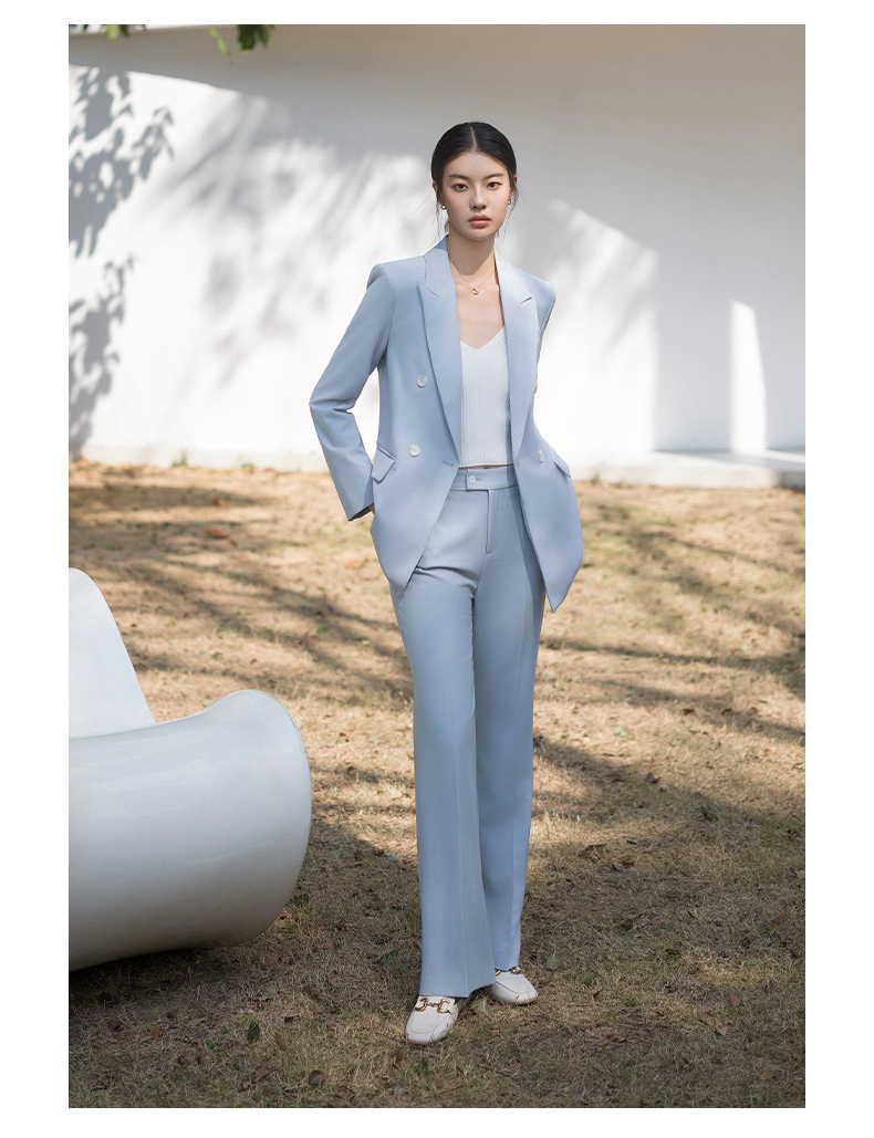 IWY/清新蓝色宽松西装套装春高级感设计感主持人阔腿裤装职场西服C13312+P33312
