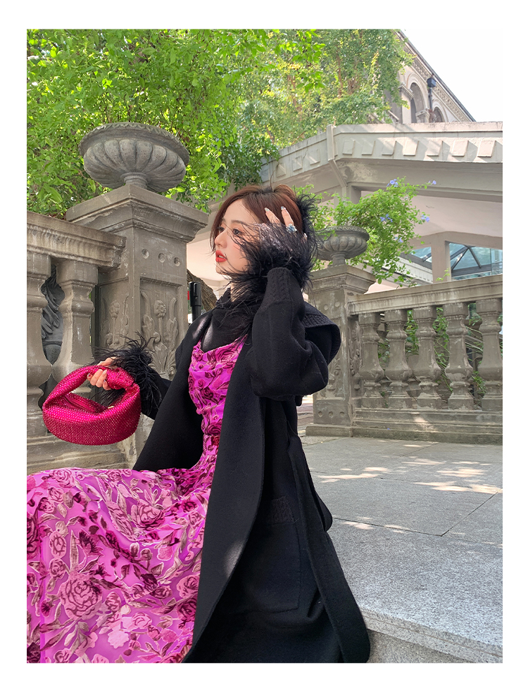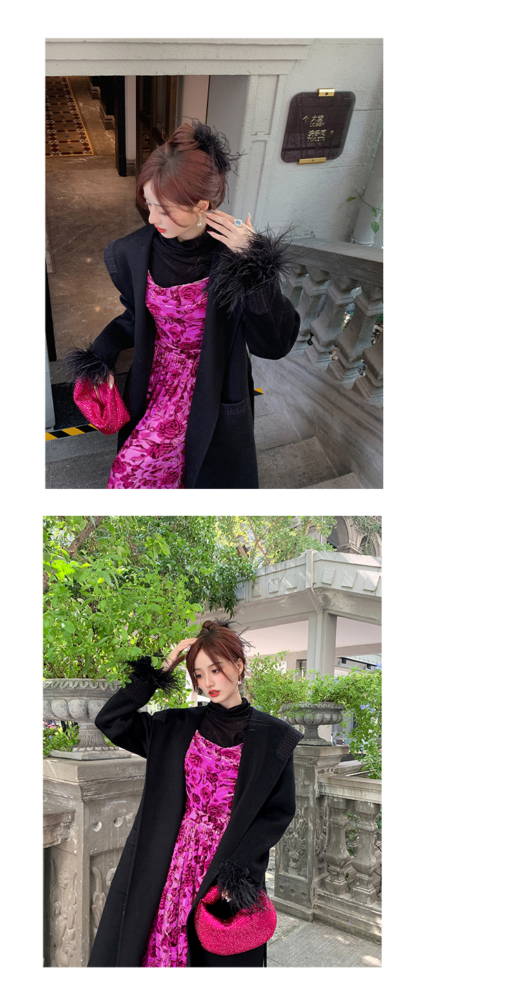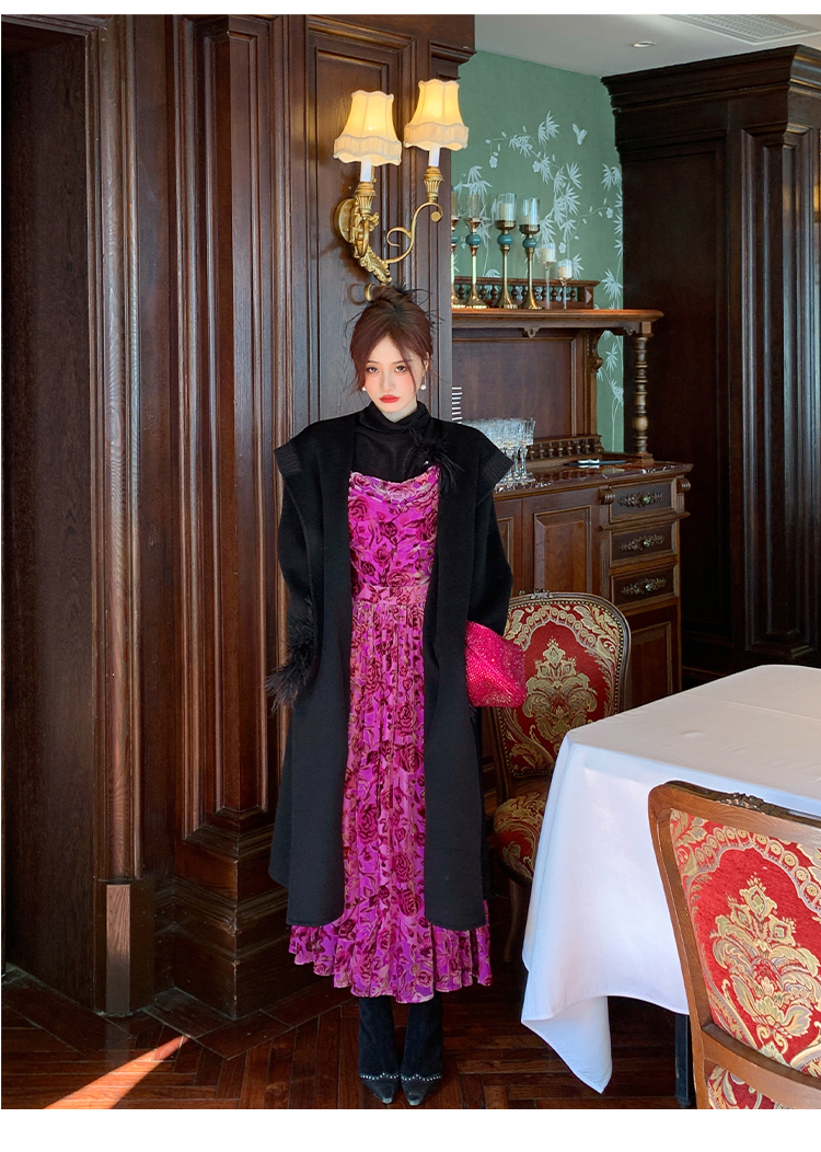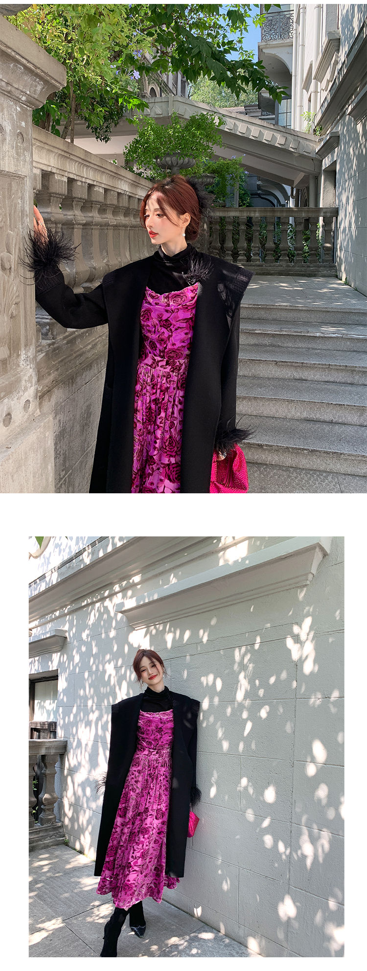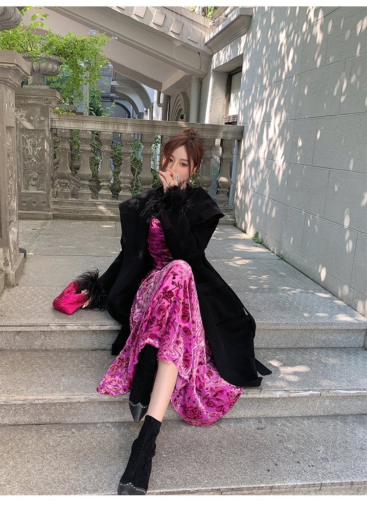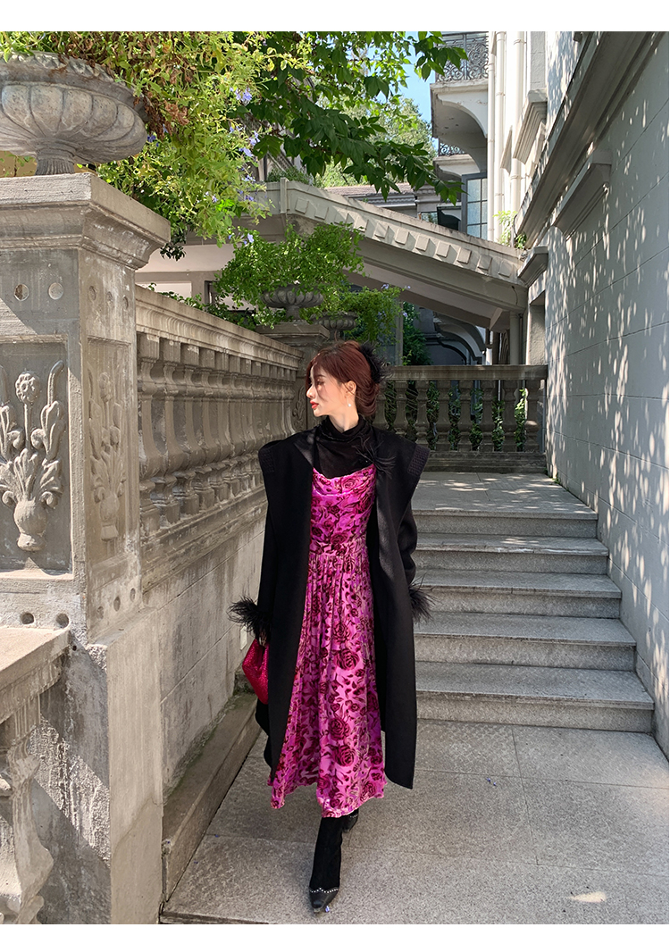 BeQueenStory 【漫舞玫瑰】修身吊带玫瑰印花丝绒连衣裙