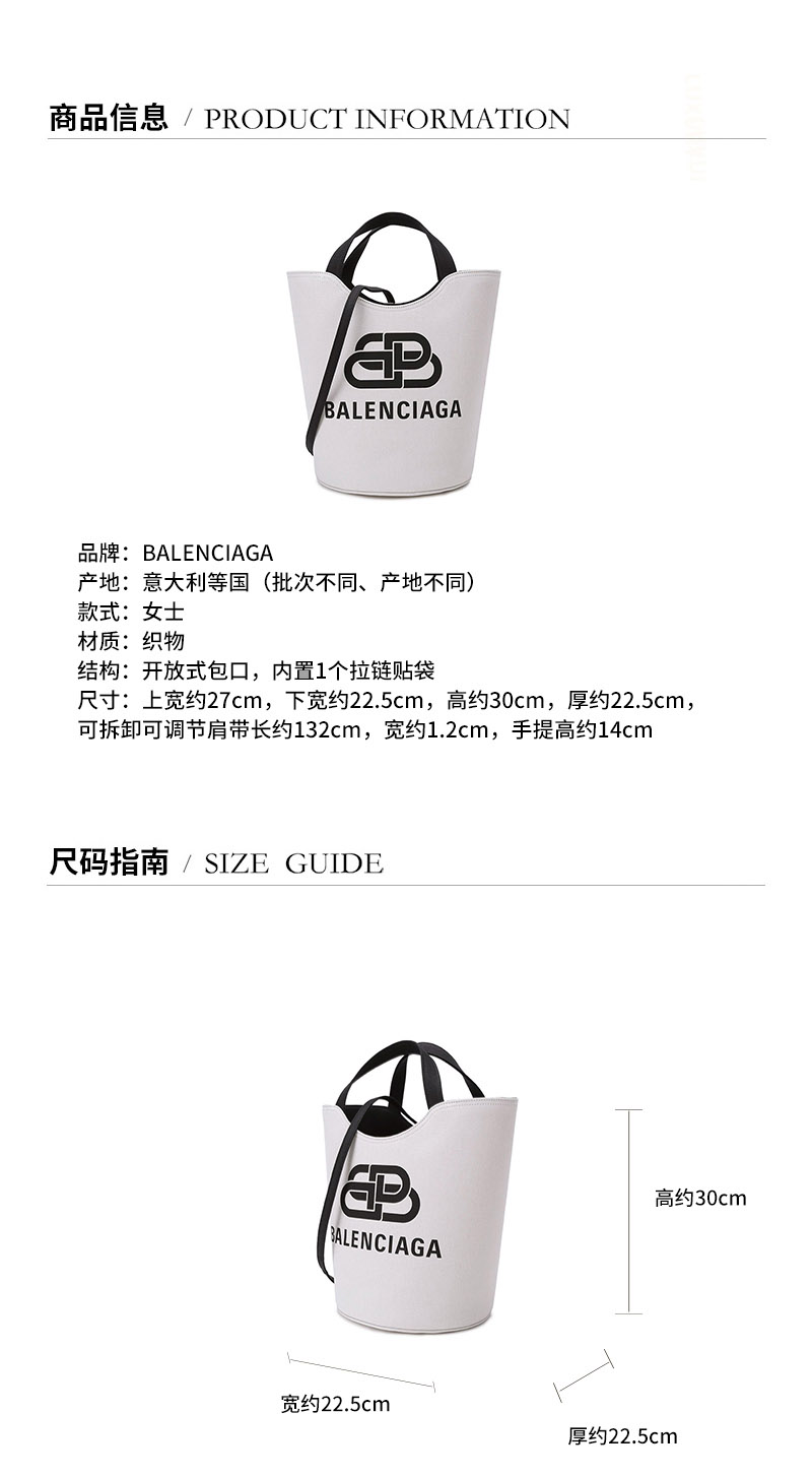 Balenciaga/巴黎世家【21秋冬新款】 女士织物手提单肩斜挎包水桶包托特包M码 599332 2HH13