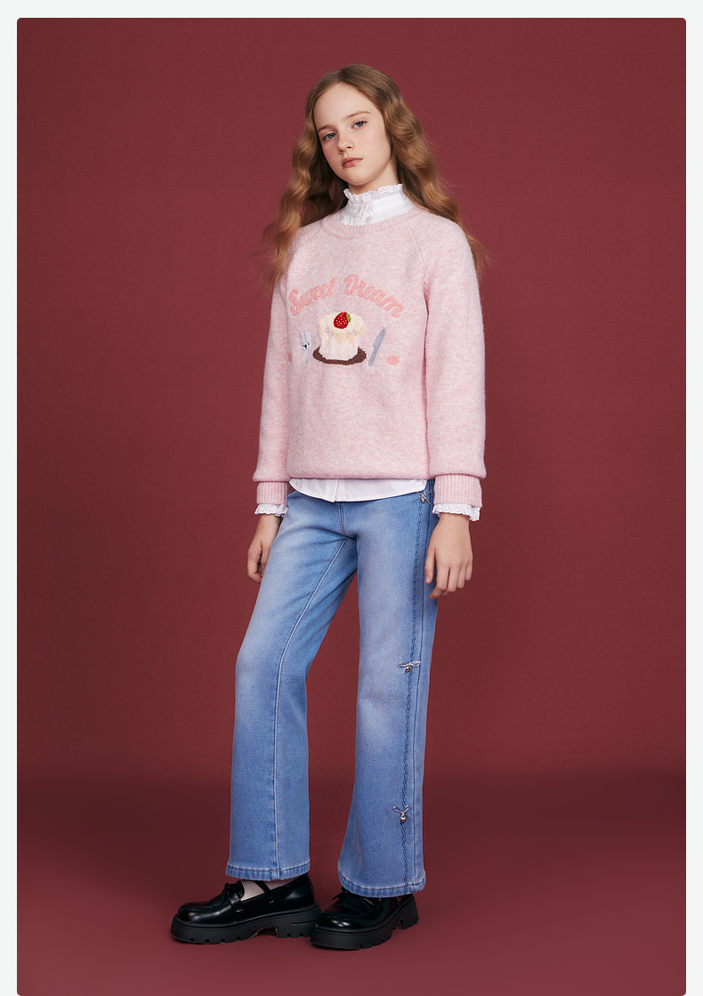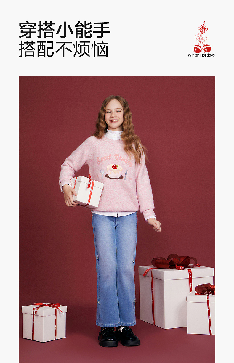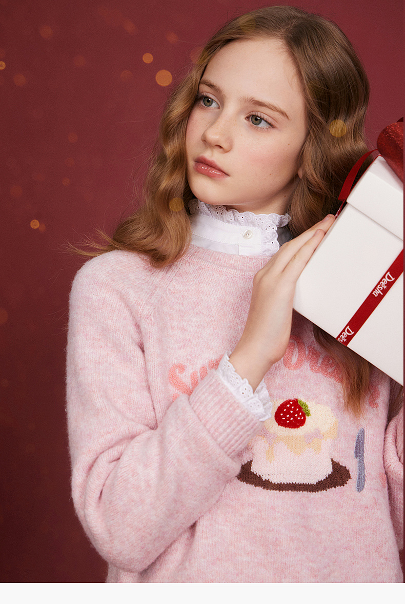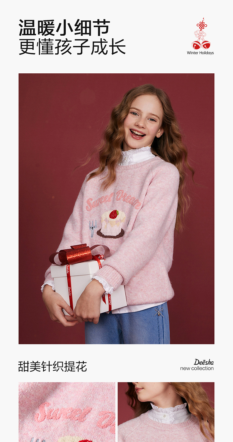 笛莎Deesha 童装女童加厚毛线衣2025年冬季新款女孩儿童保暖针织打底衫