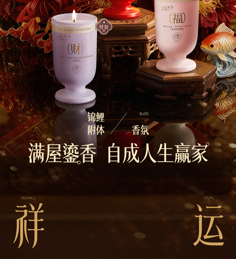 【把马年好运“香”回家】RUYI儒意锦鲤系列香薰蜡烛 燃1小时香12小时 纯净无害不挂壁 安心舒缓不刺鼻 四款香型可选 50㎡扩香 120g/支
