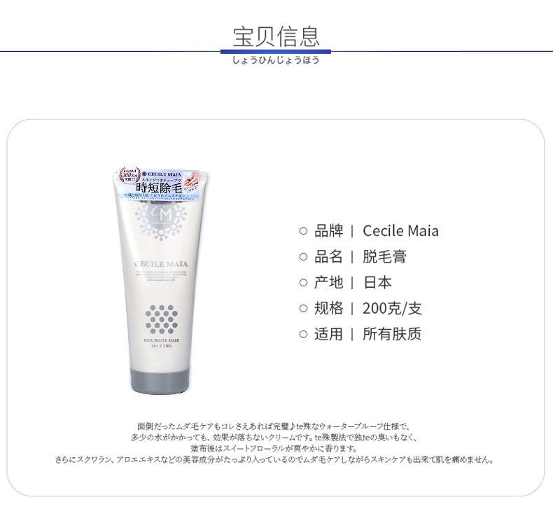 【爆款超低价预售 急单慎拍】日本cecile maia CM温和快速腋下除毛抑毛脱毛膏