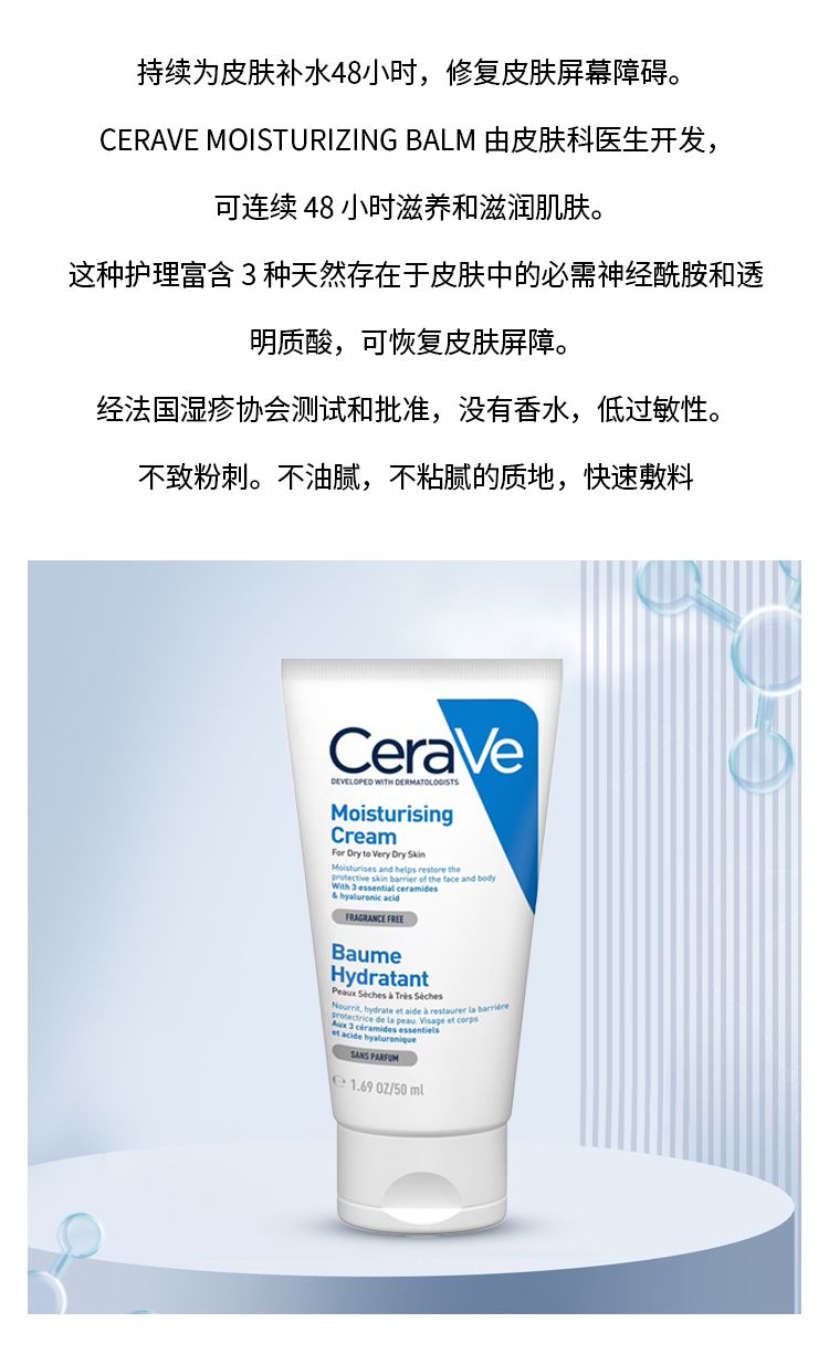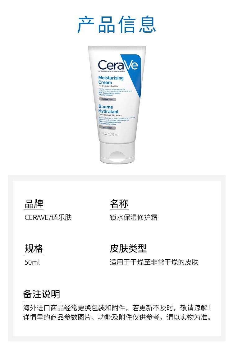 【预售 急单慎后】Cerave适乐肤 锁水保湿修护霜50ml 滋润补水