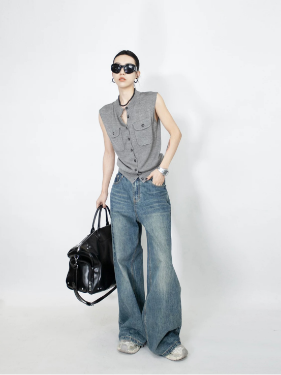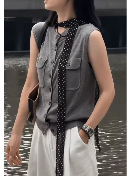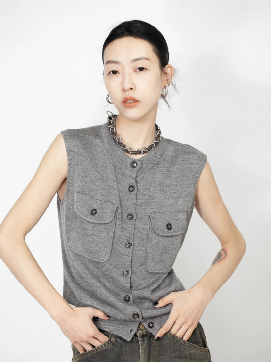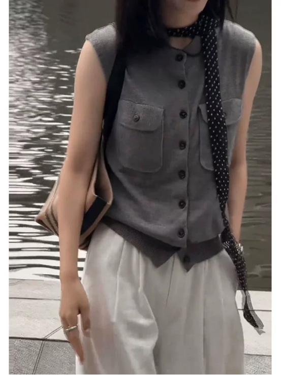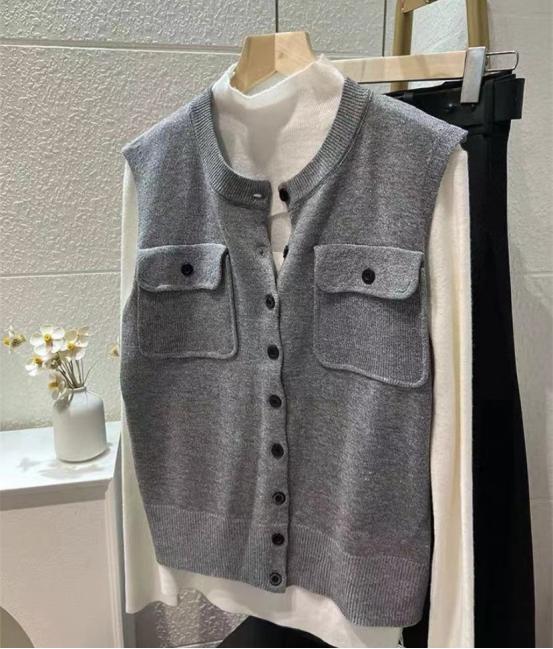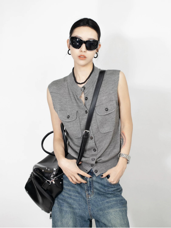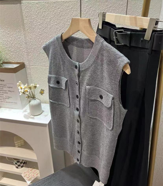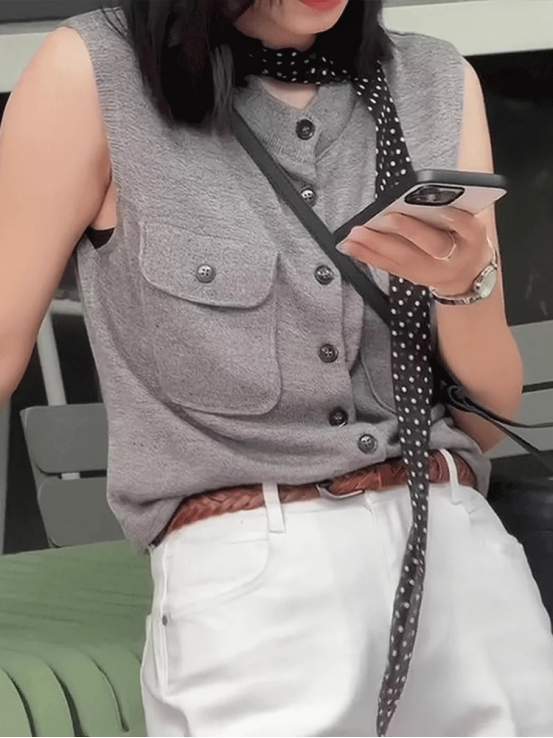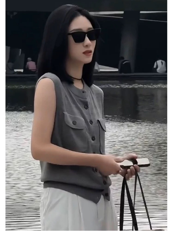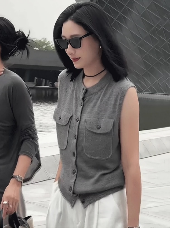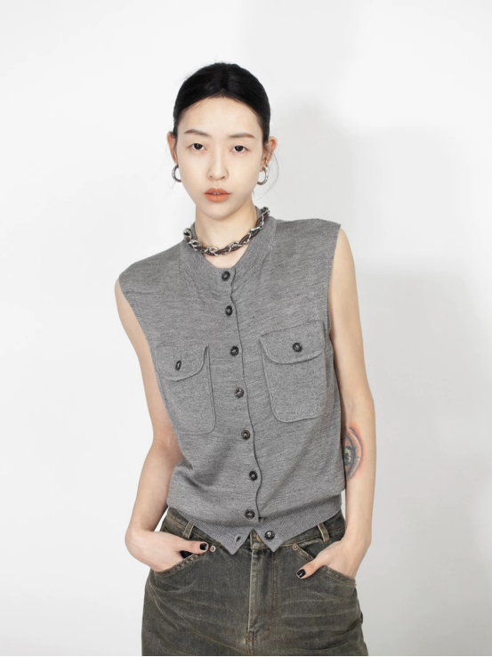 轻简中式双兜坎肩针织背心 牛货闭眼入~松弛感拉满~ 老钱风的灰色系,总是让人反复爱上 搭配牛仔裤极具松弛感