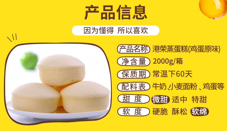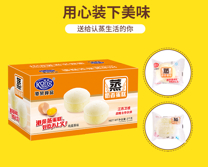港荣蒸蛋糕-鸡蛋原味蒸蛋糕 2000g 糕点整箱营养早餐零食品手撕软面包蒸的不上火