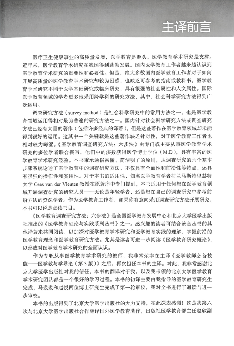 医学教育调查研究方法六步法 吴红斌主译 医学教育理论与实践系列丛书 调查研究实践步骤快速参考清单案例示例 北京大学医学出版社
