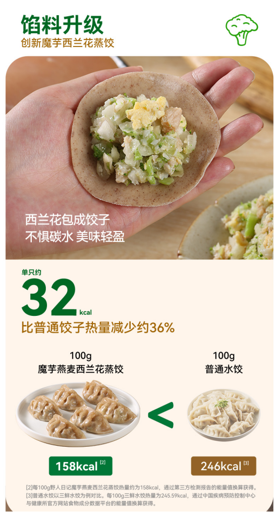 💥超级爆款!野人日记西兰花魔芋燕麦蒸饺🥟 💚健康又美味的西兰花魔芋燕麦蒸饺来啦!每一口都是满满的幸福与满足,营养丰富,清新不腻,你的健康早餐、午餐、晚餐,它都能hold住!🥦🌾 💫皮薄馅足,口感层次丰富。燕麦的香醇,魔芋的爽滑,西兰花的清甜,完美融合,让你一口接一口,停不下来!😋 🌱绿色天然,健康无负担。选用新鲜西兰花,搭配魔芋和燕麦,低卡又饱腹,是减肥人士的最佳选择!💪 🥦魔芋燕麦蒸饺,健康美味双重奏!🍲 🌟想要一款美味又低脂的蒸饺吗?那就来试试这款西兰花魔芋燕麦蒸饺吧! 🌈 在这个追求健康生活的时代,我们为您带来了一款独一无二的蒸饺——西兰花鸡蛋魔芋燕麦蒸饺! 这款蒸饺融合了西兰花的清新、鸡蛋的滑嫩、魔芋的低卡和燕麦的饱腹,一口下去,满满的幸福感涌上心头。