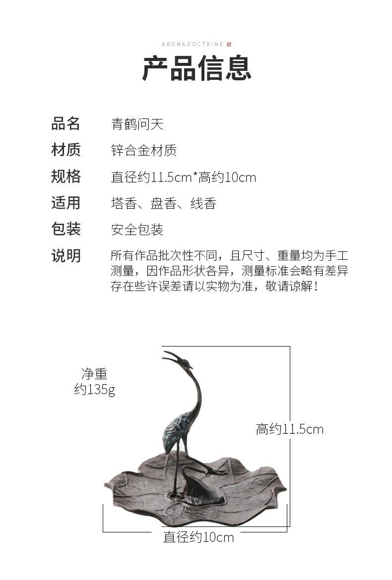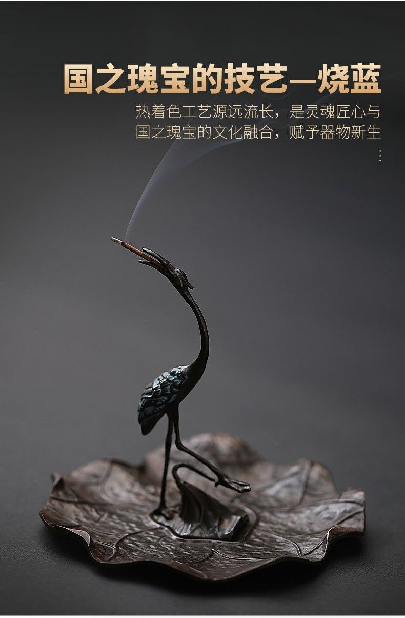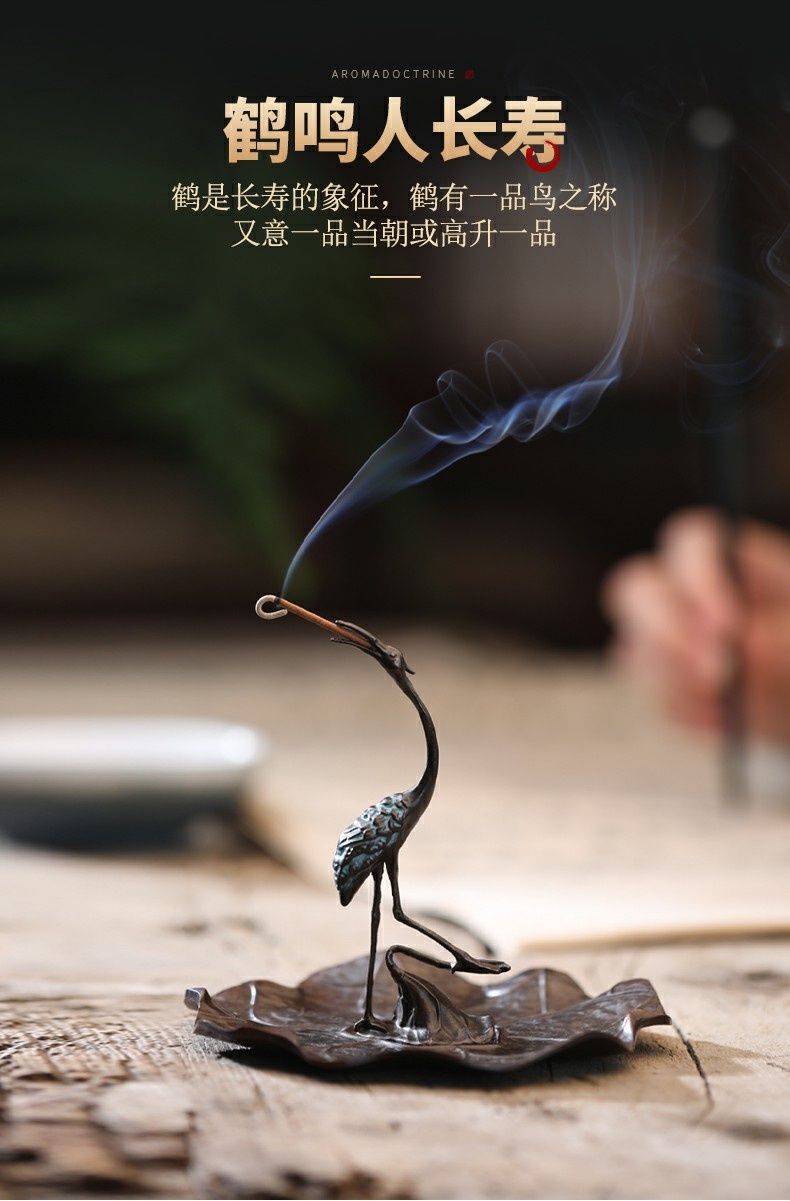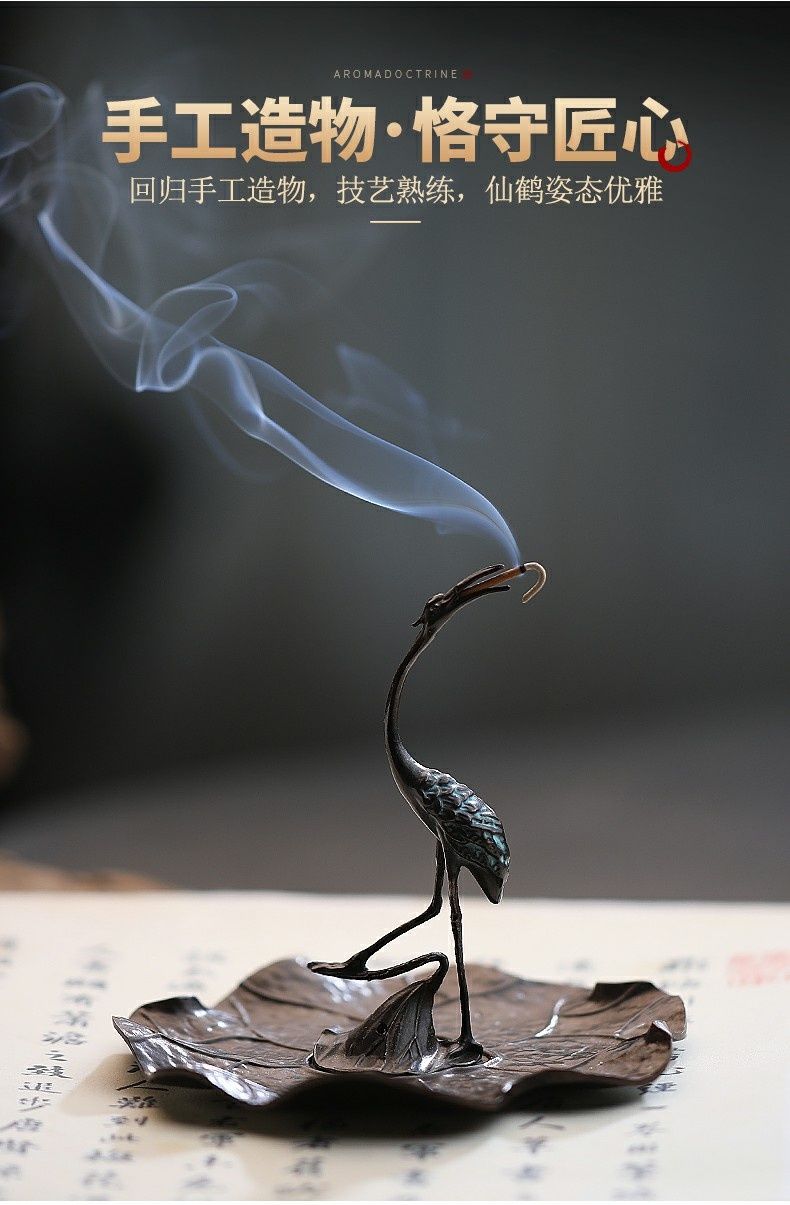 仿古仙鹤香插 沉香檀香炉家用室内盘香线香创意摆件禅香炉立香座