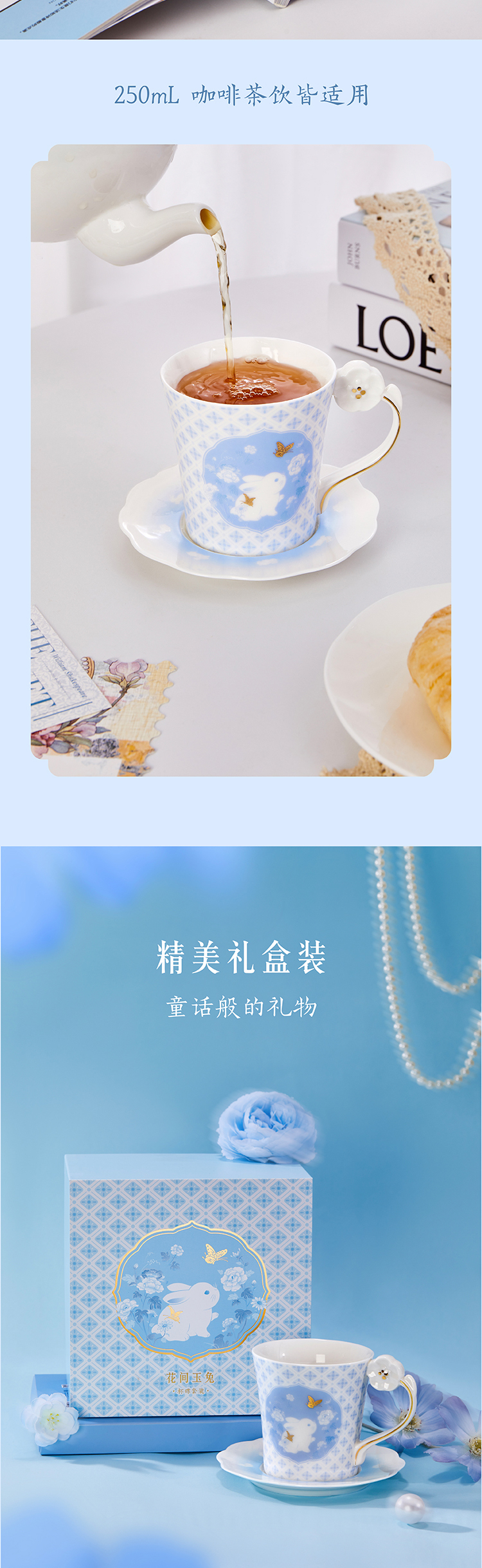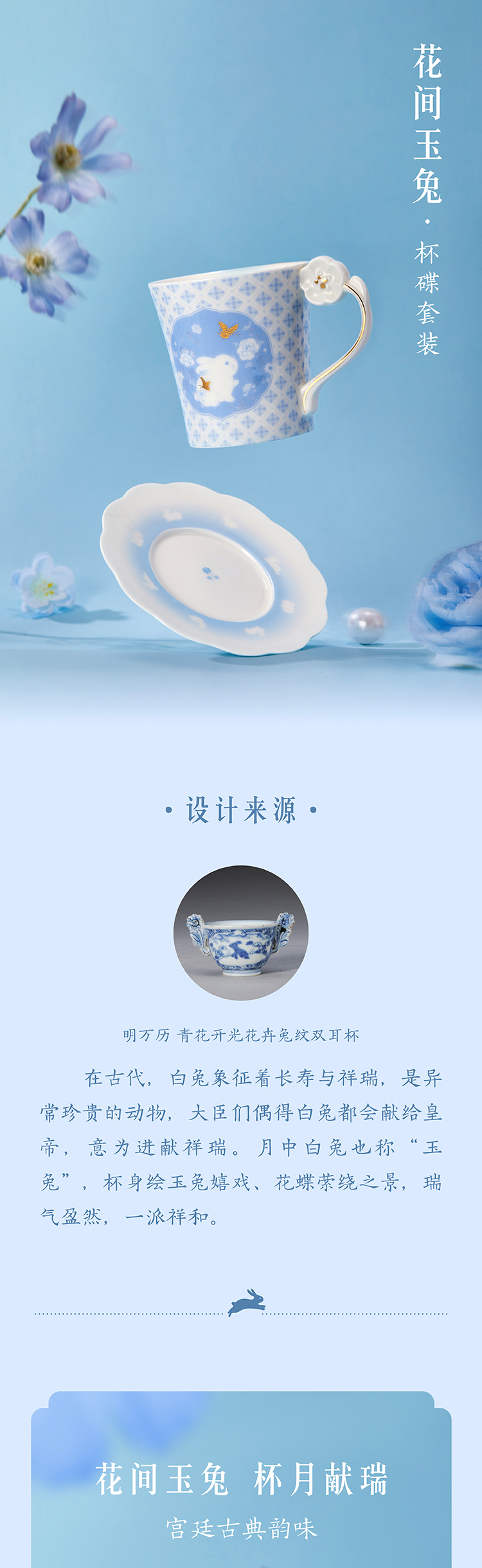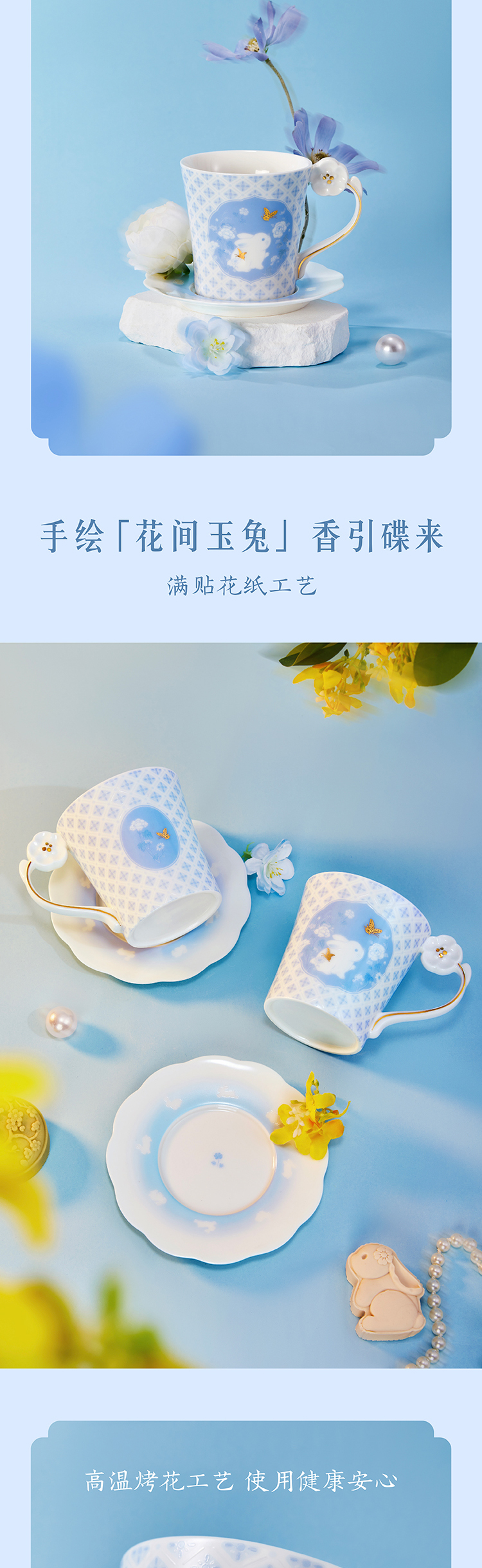 【故宫杯子】花间玉兔杯碟套装咖啡杯茶杯博物馆文创生日礼物