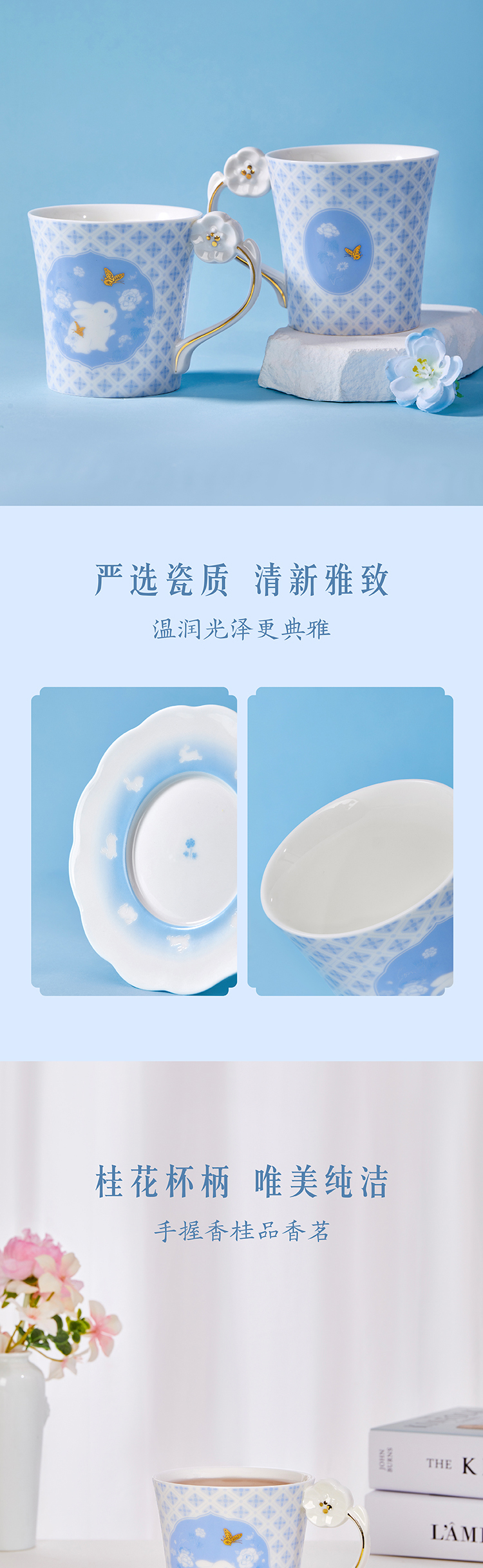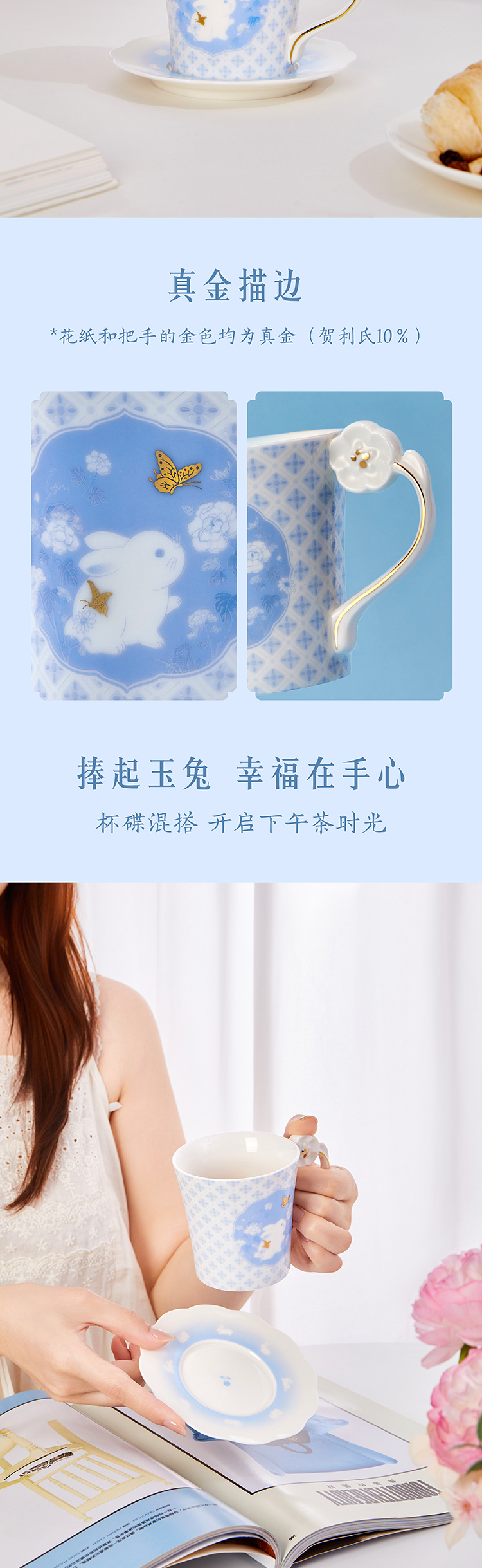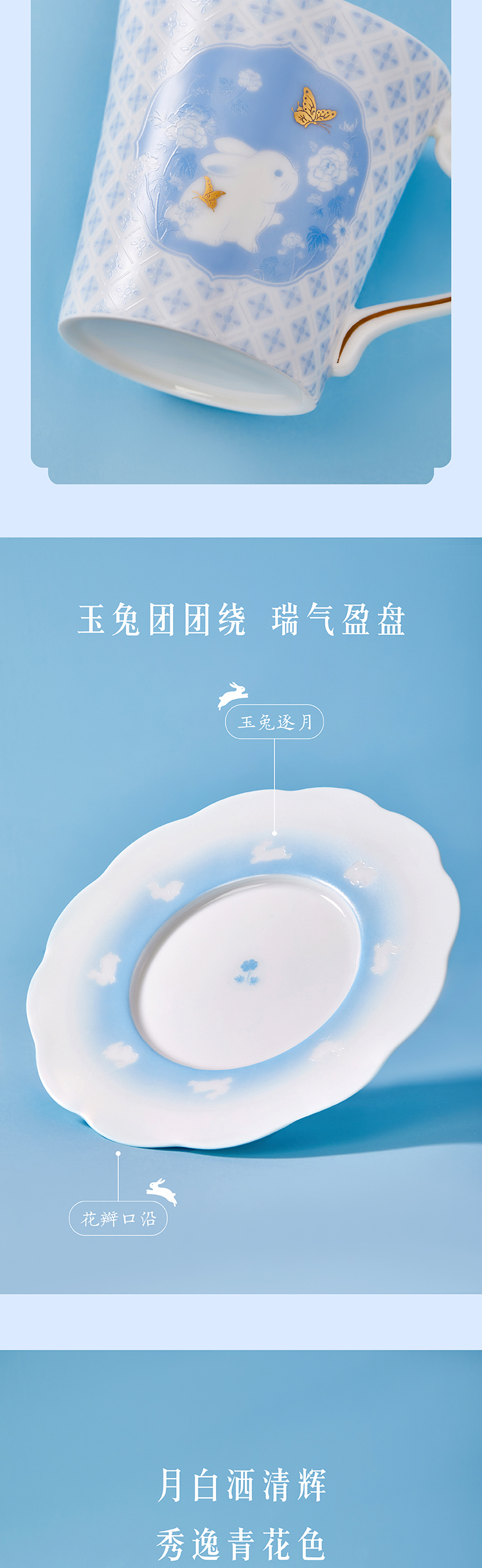 【故宫杯子】花间玉兔杯碟套装咖啡杯茶杯博物馆文创生日礼物