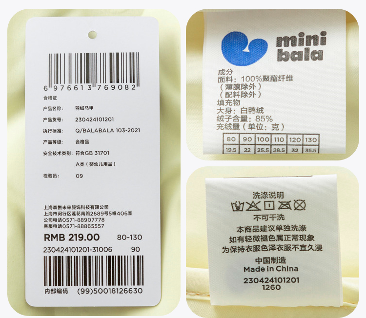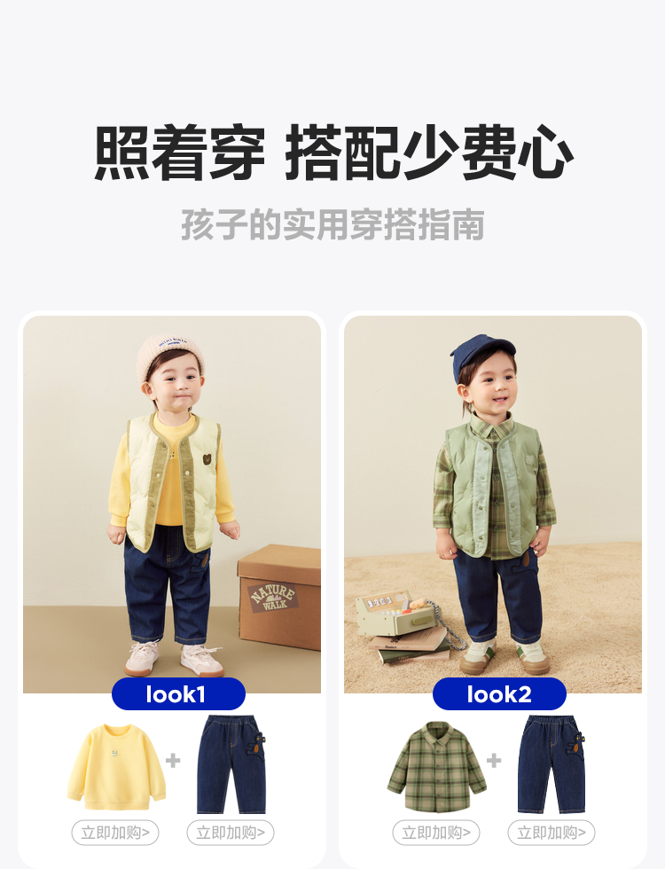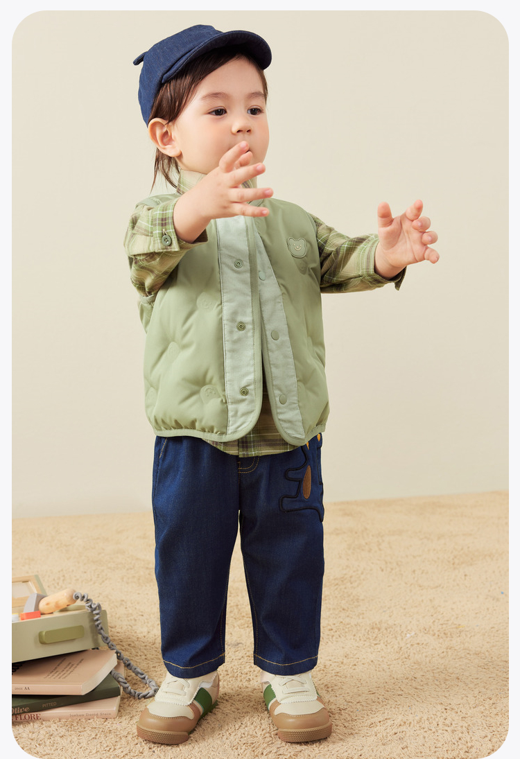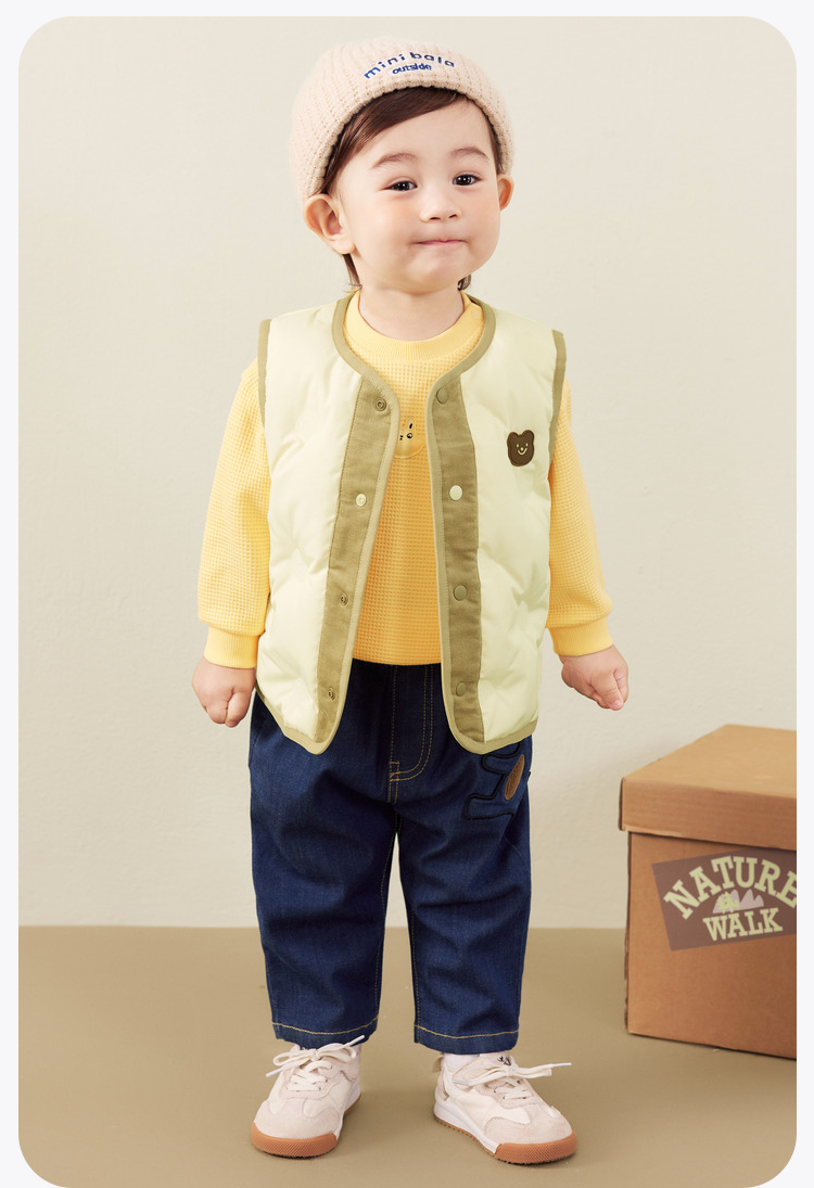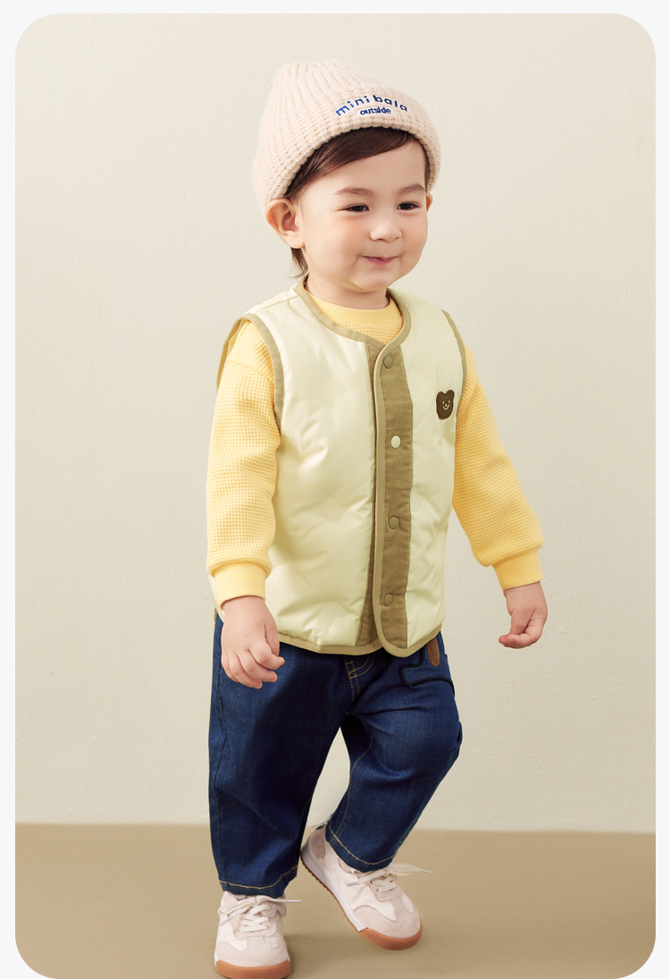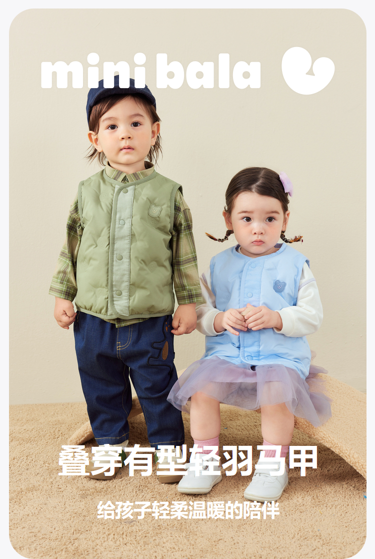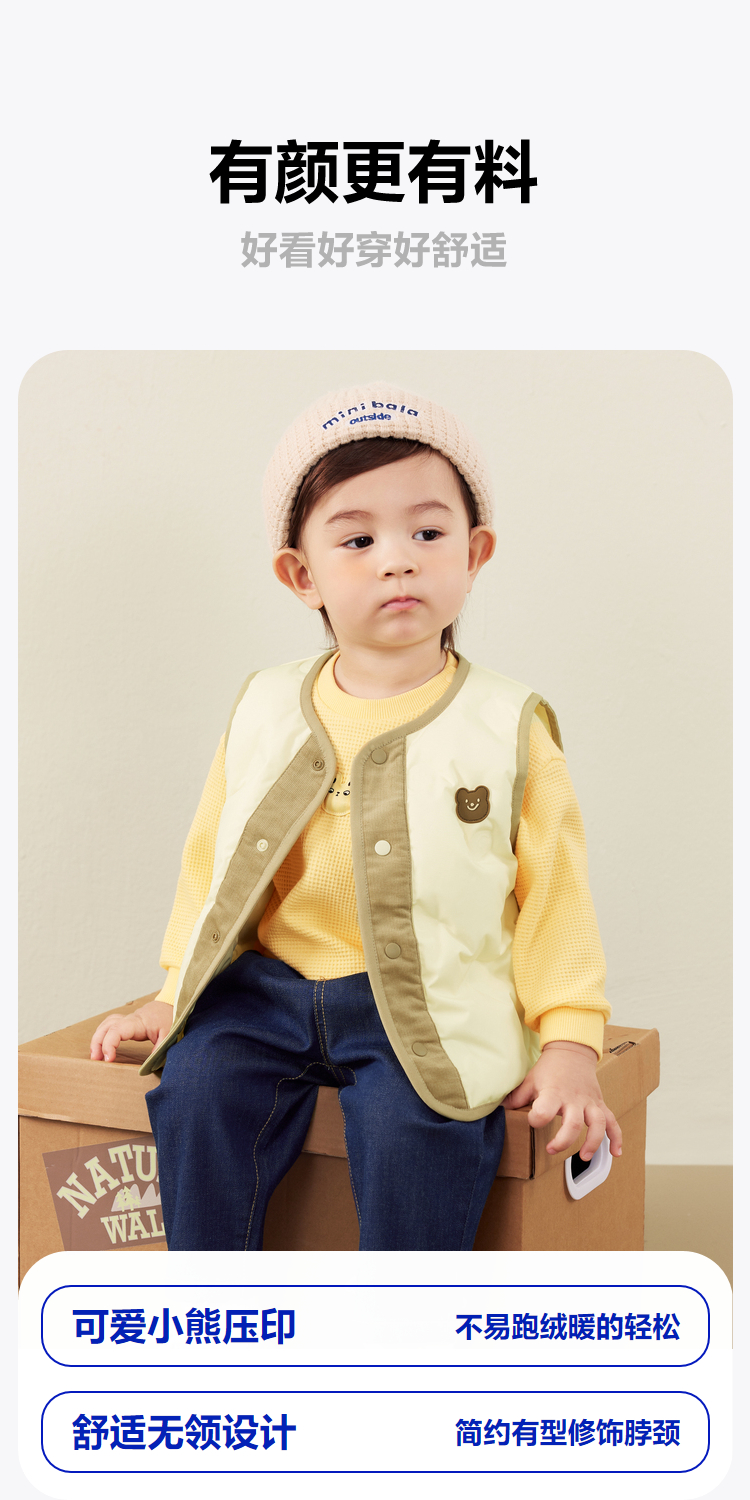 迷你巴拉冬季新款男女童可爱无领羽绒服宝宝保暖时尚羽绒马甲