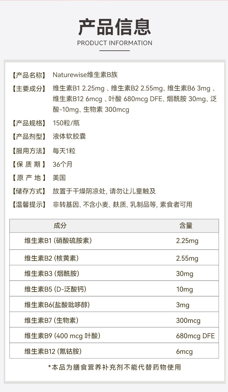 Naturewise牌维生素B族150粒 WH