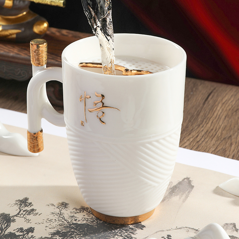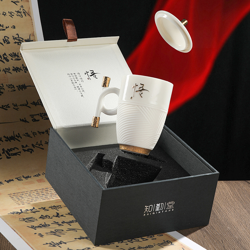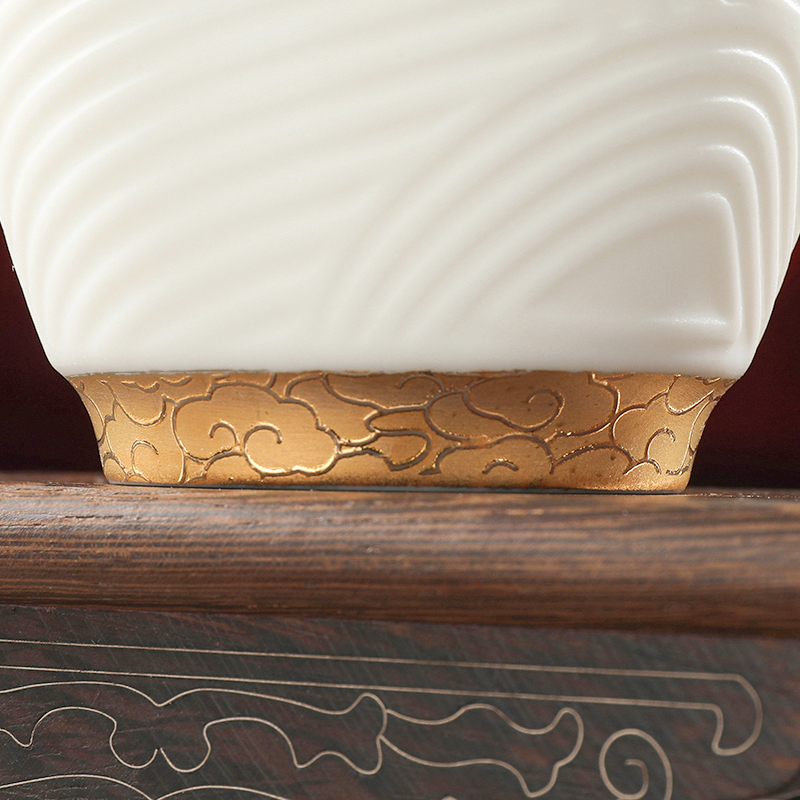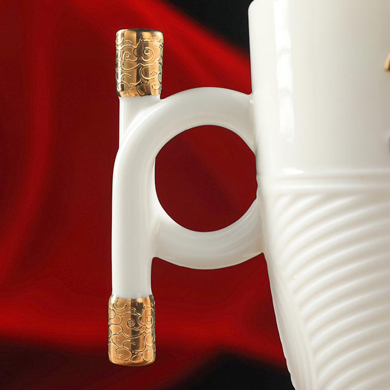 材质选用优质羊脂玉瓷,上下部分以素烧及釉烧工艺区分,送礼高端大气!