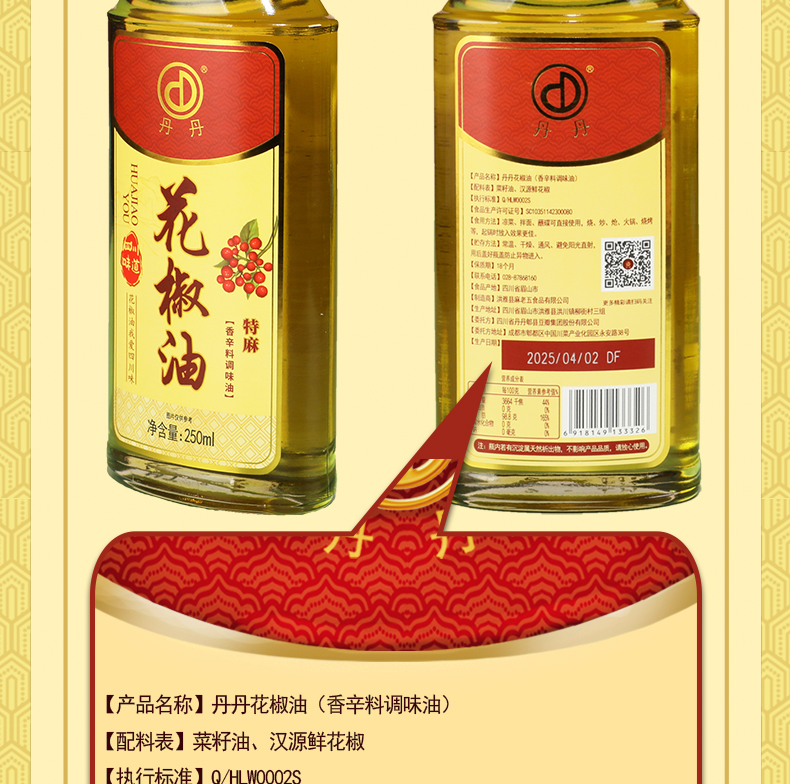 丹丹花椒油250ml麻香原汁汉源花椒油凉拌菜麻辣烫火锅好吃调味油