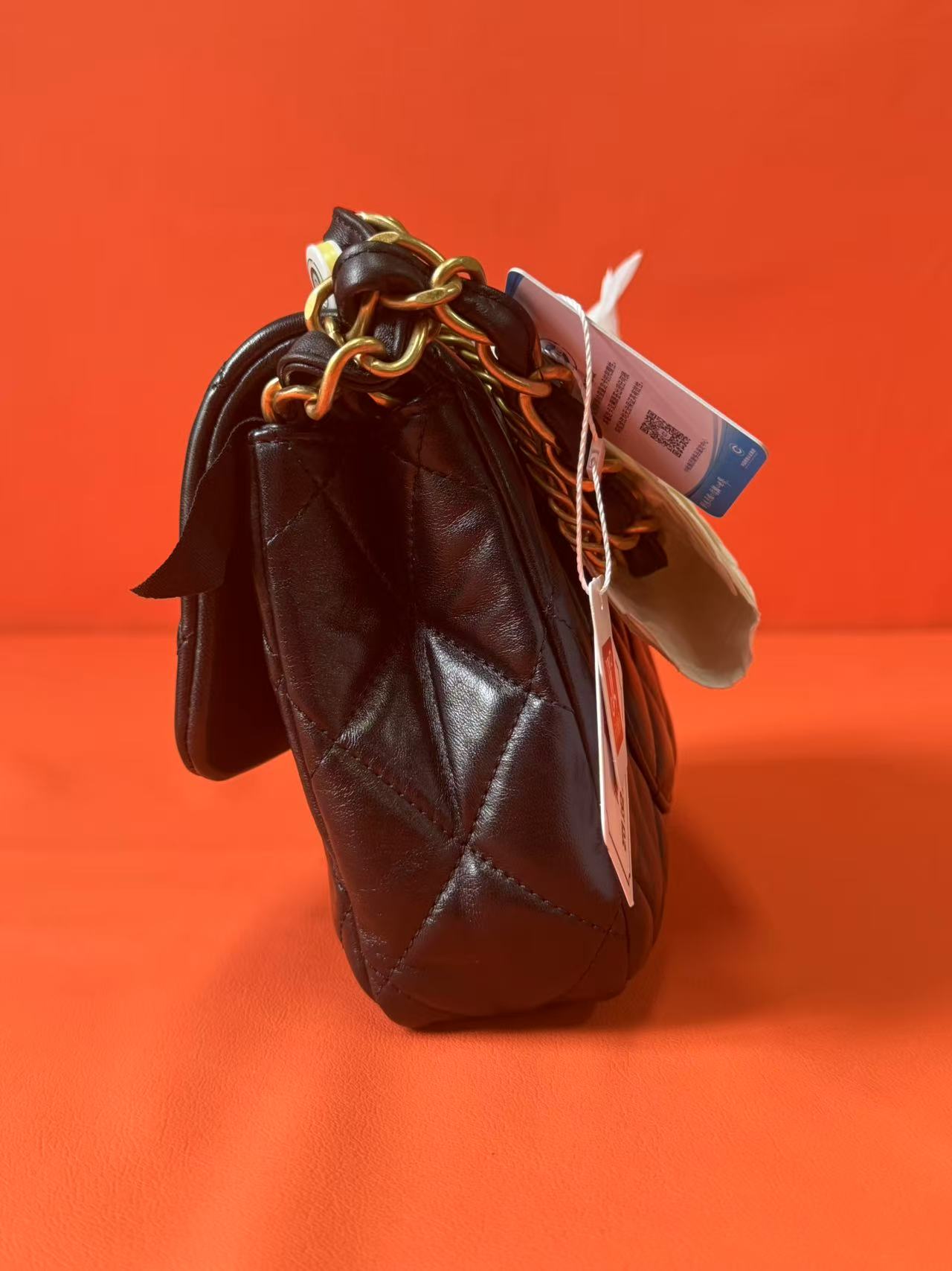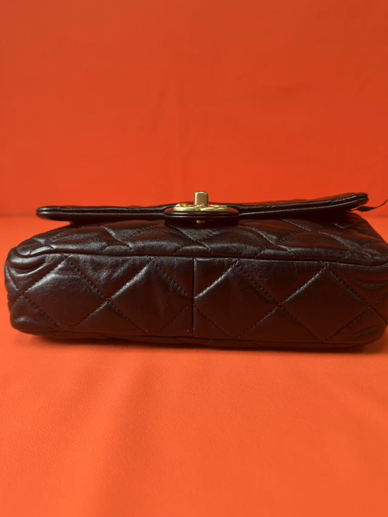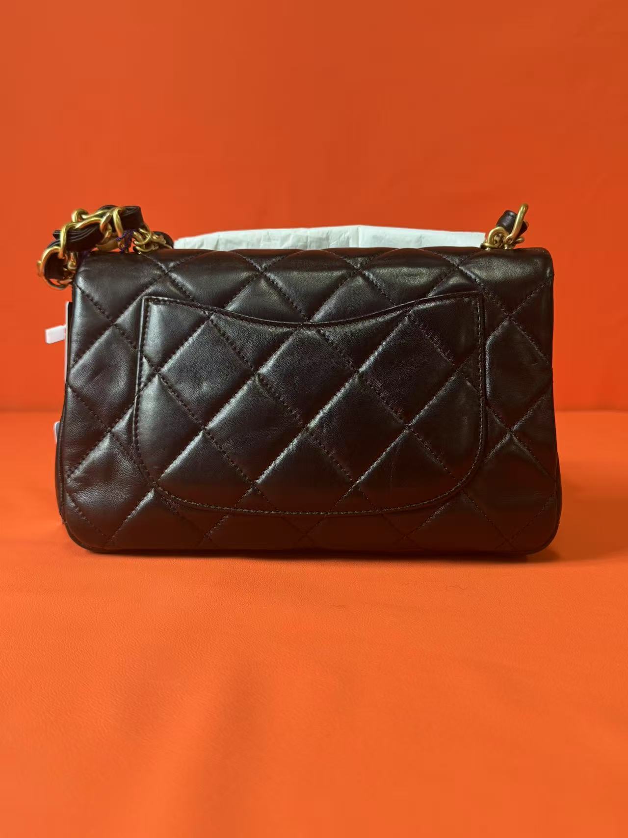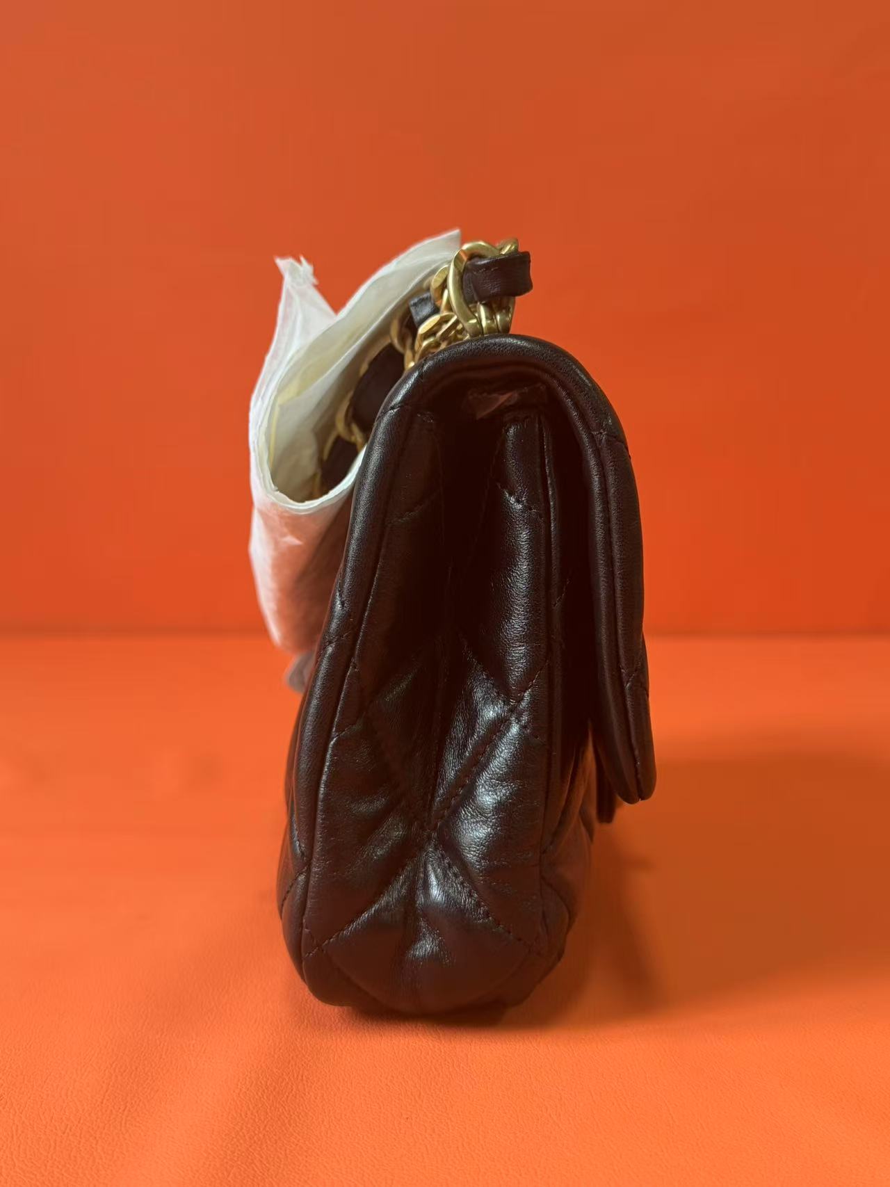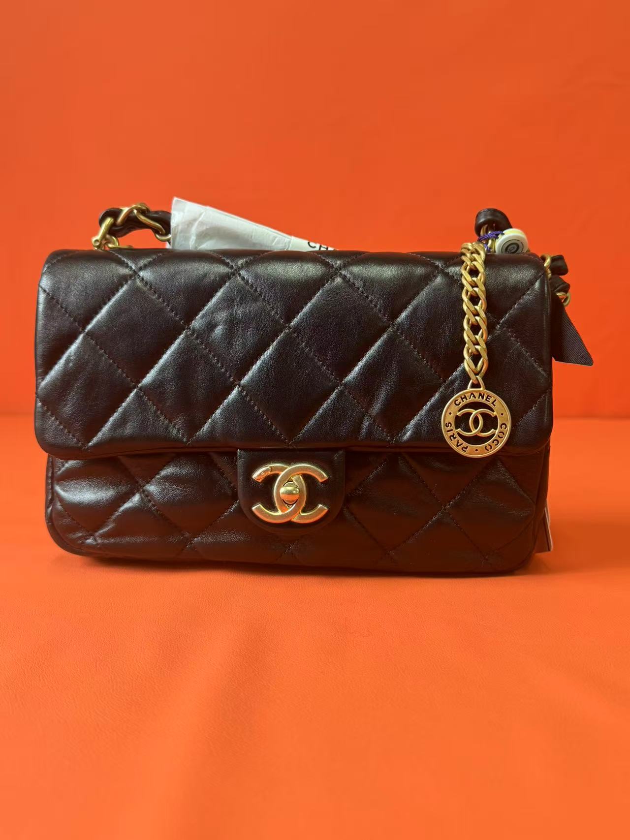 CHANEL香奈儿 CF 23S 金币款菱格纹链条 小羊皮 翻盖包手提单肩斜挎包 小号 女款 黑色