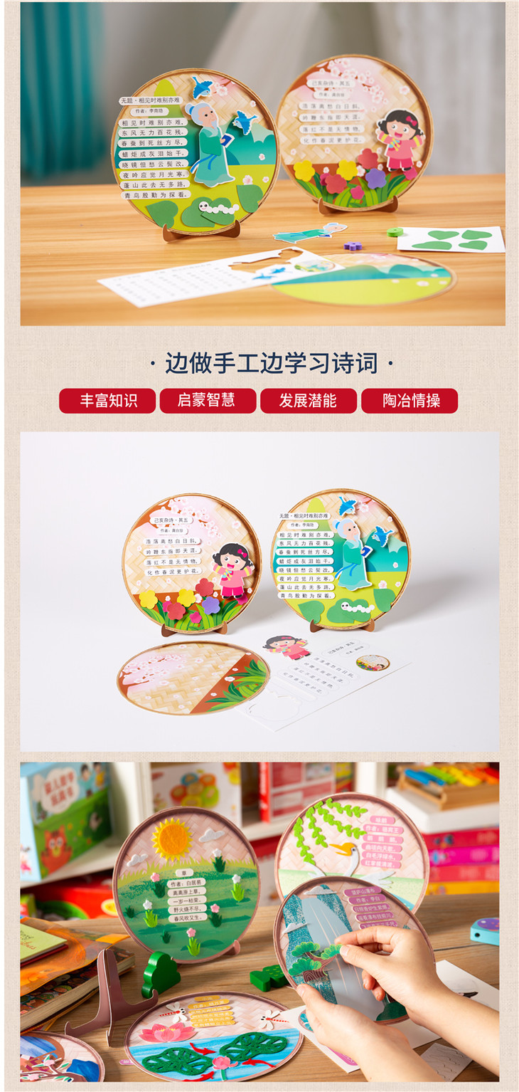 母亲节礼物手工diy幼儿园儿童中国风古诗词贴画制作材料包 商品图4