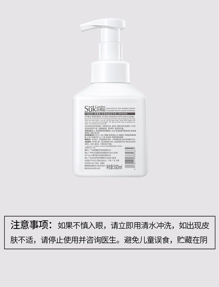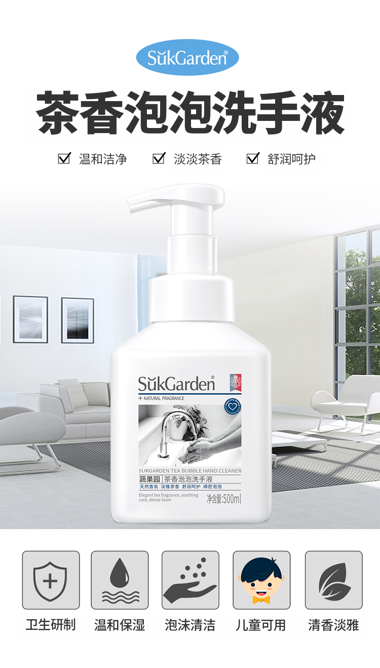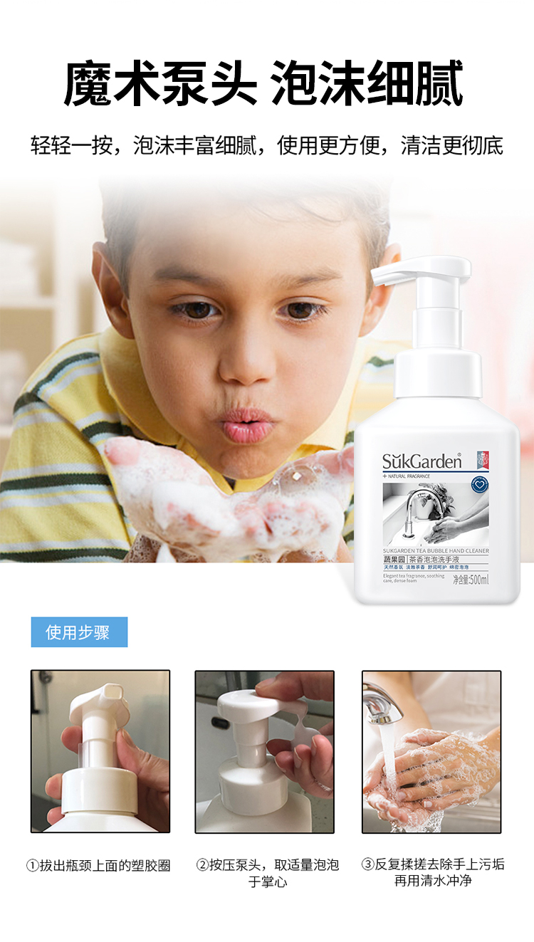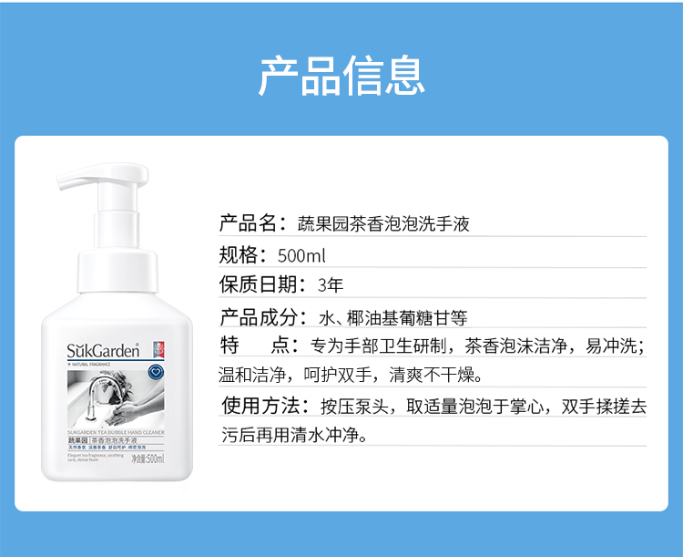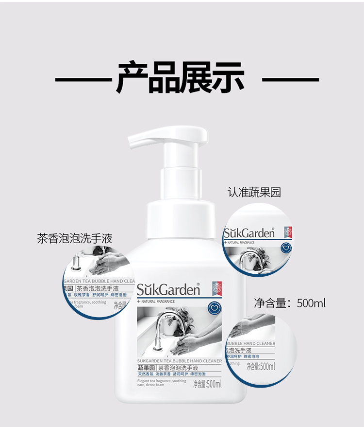 【品名】蔬果园茶香泡泡洗手液500g/瓶
