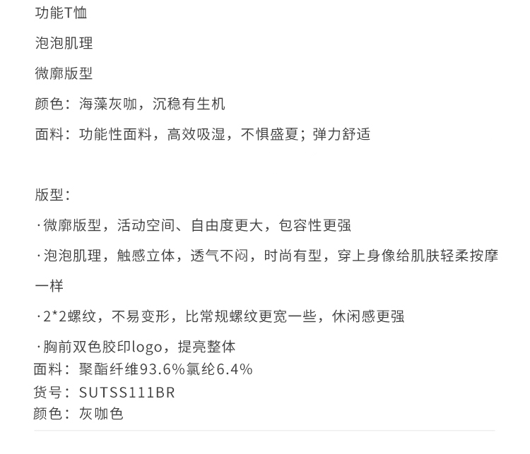 callisto海藻灰咖泡泡肌理T恤